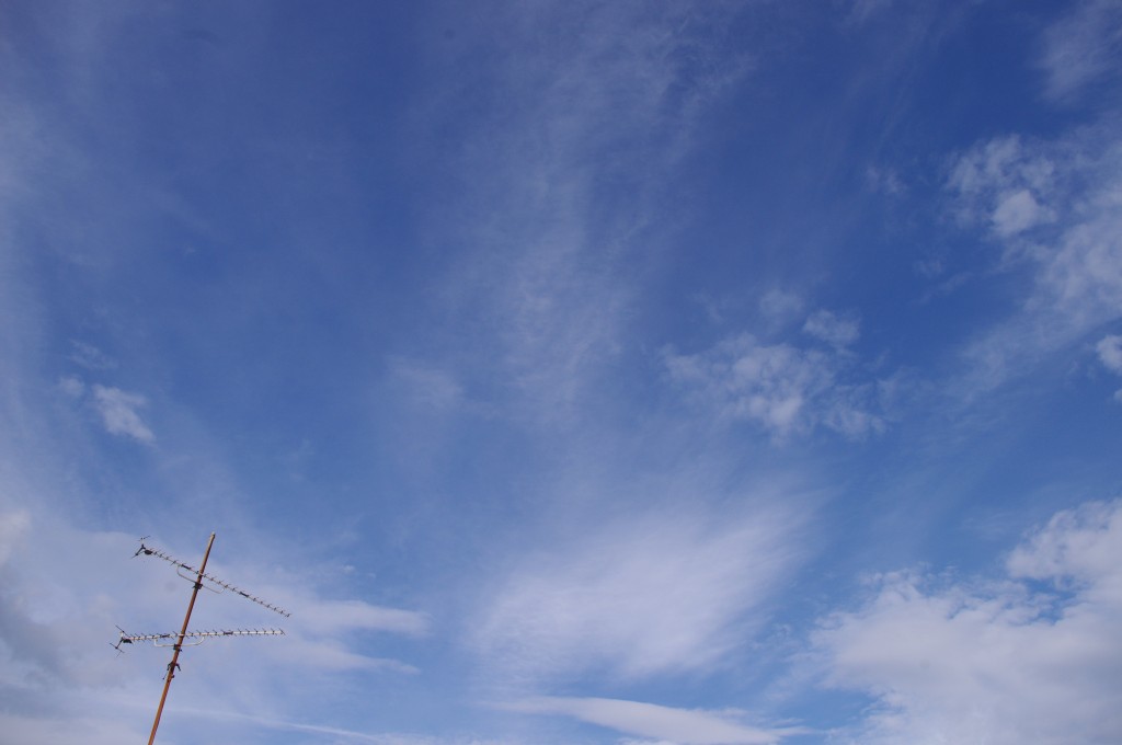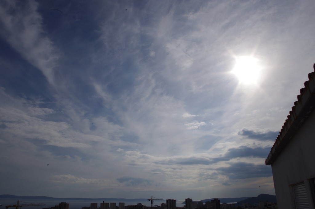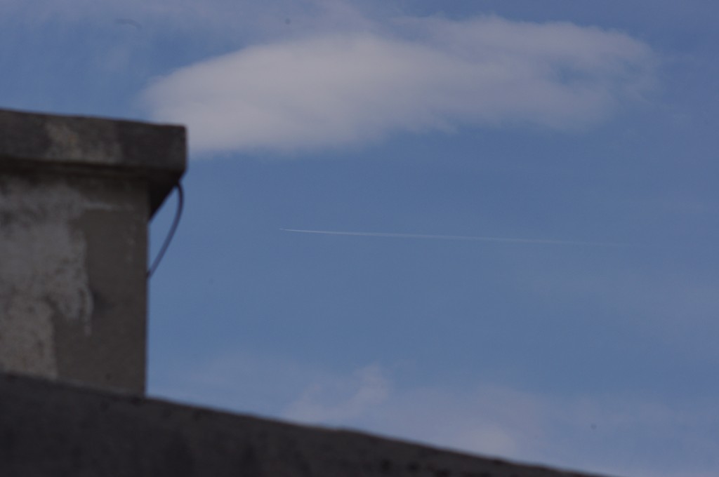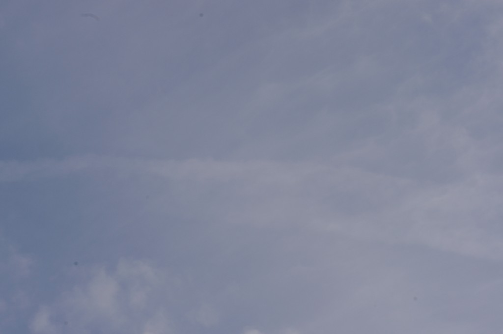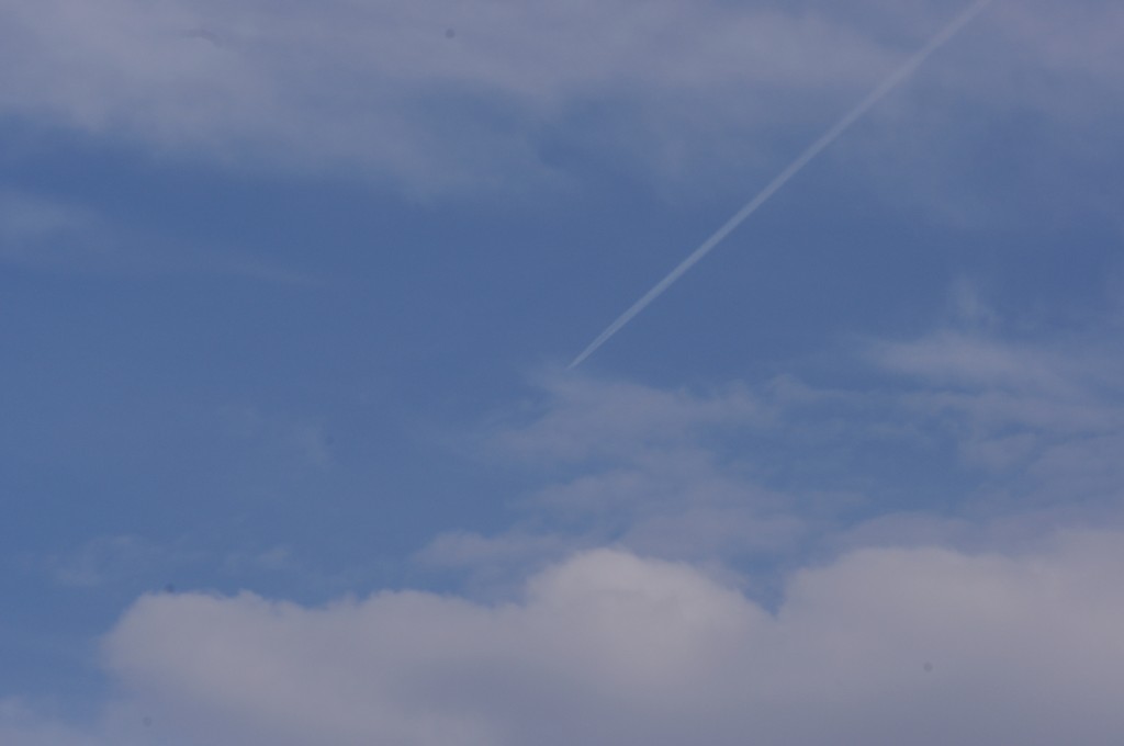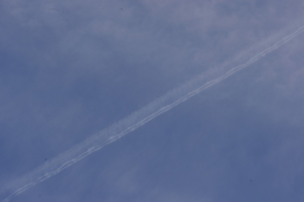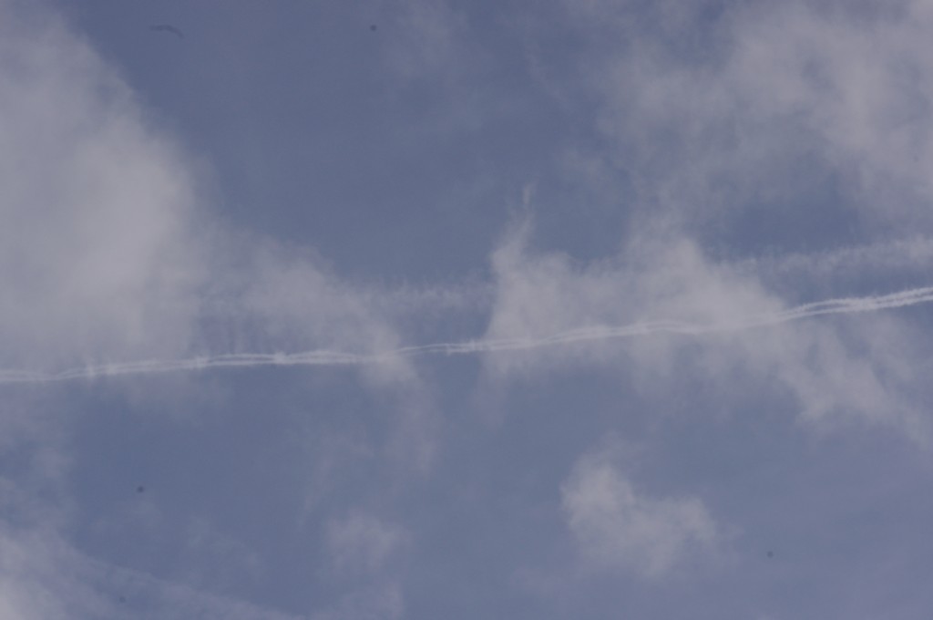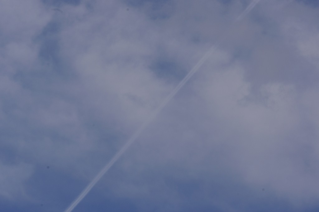 Nedjelja, nebo pokriveno oblacima. Kemijski umjetni oblaci su pomiješani s 'pravim' oblacima. Bilo je vrlo teško nešto dobro uslikati, ali ipak se nešto uhvatilo.