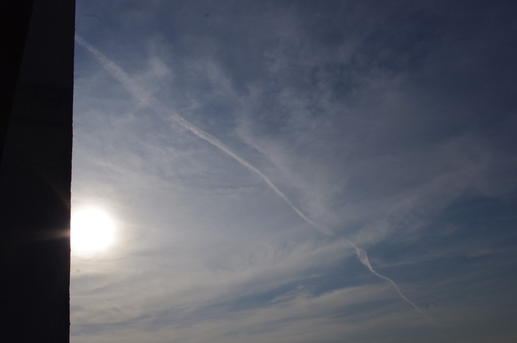Odmah oko 7.45 ujutro, vidim da je nebo već debelo prekriveno kemikalijama. Mamicu vam vašu prašinarsku. Nadalje, popodne dolazim na svoje mjesto i vidim puno nebo križeva, svježih chemtrailova i fino raspršenih kemikalija. Na kraju dana slikam par kadrova pri zalasku sunca, nevjerovatno je koliko su samo zaprašili. Zadnja slika je trag 4-motornog zaprašivaća kojeg nisam uspio uhvatiti, ali zato sam mu fino uhvatio narančasti kemijski trag ispod razasutog kemijskog oblaka. Apokaliptično. Jeli tko još ovo vidi što se događa?
