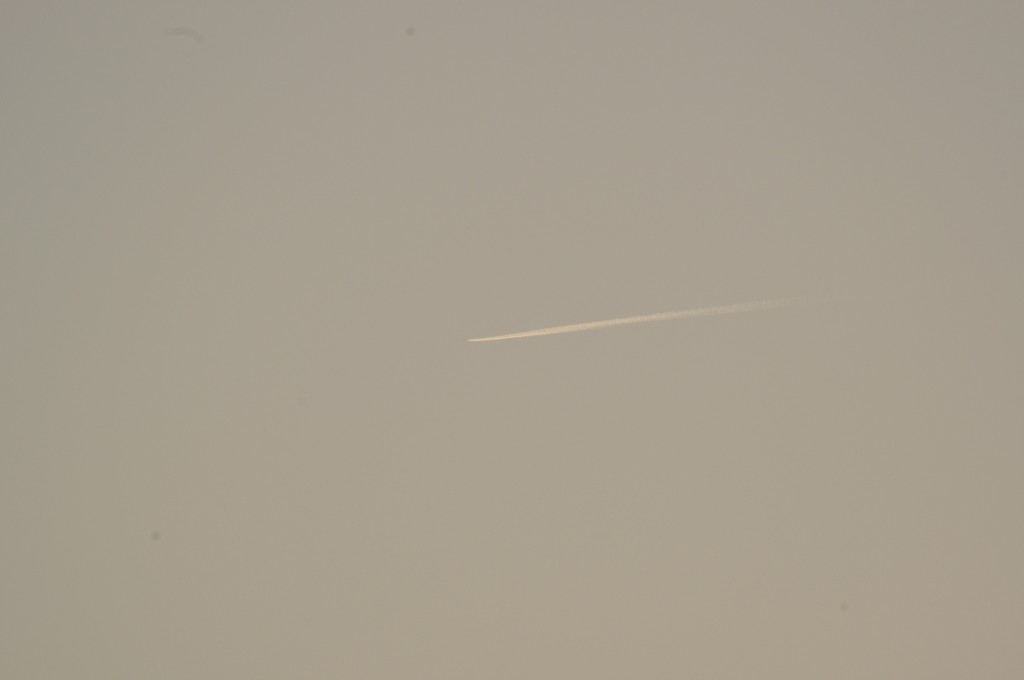 Smjer NW. Vrijeme 18.17h. Praši ga. Predaleko za kvalitetne snimke. Iako ove slike dokazuju da je mutež na nebu samo takav, puno neke izmaglice, kemija, nažalost većina ljudi je navikla na takvo što.