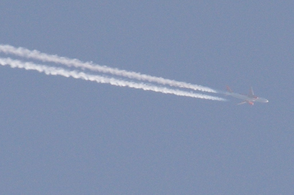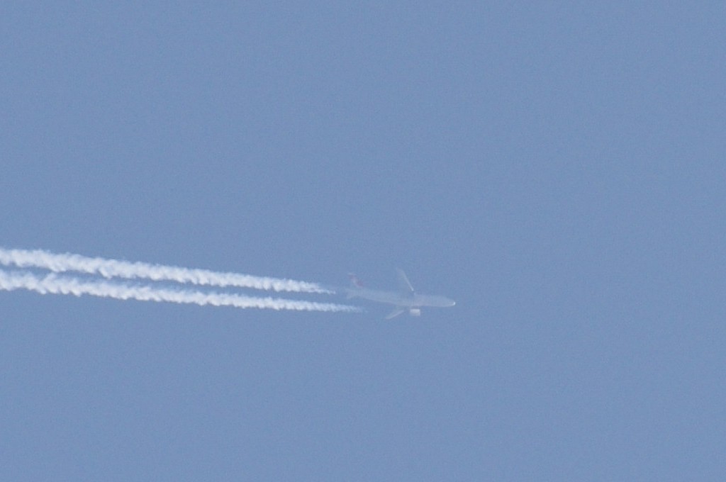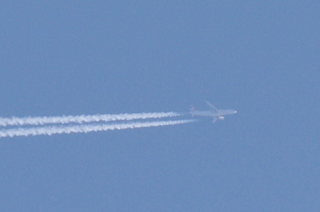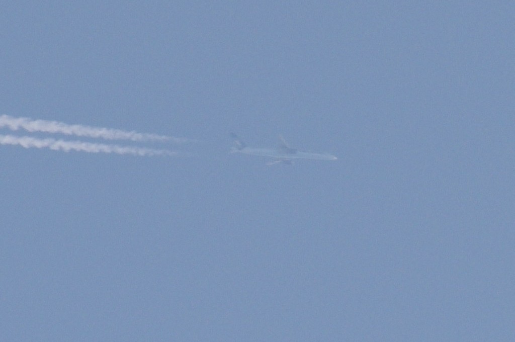 26.06.2010.g. update: ovo je Boeing 777-300ER, jedan od najvećih aviona u klasi, stoga je razumljivo da sam se prevario glede visine jer se učinio ogroman. Po odokativnoj procjeni, ovaj avion leti iznad 10km.