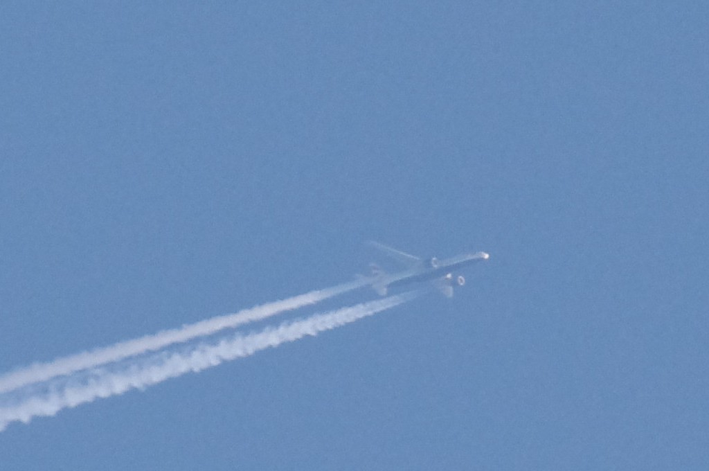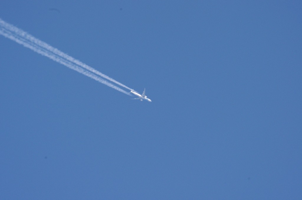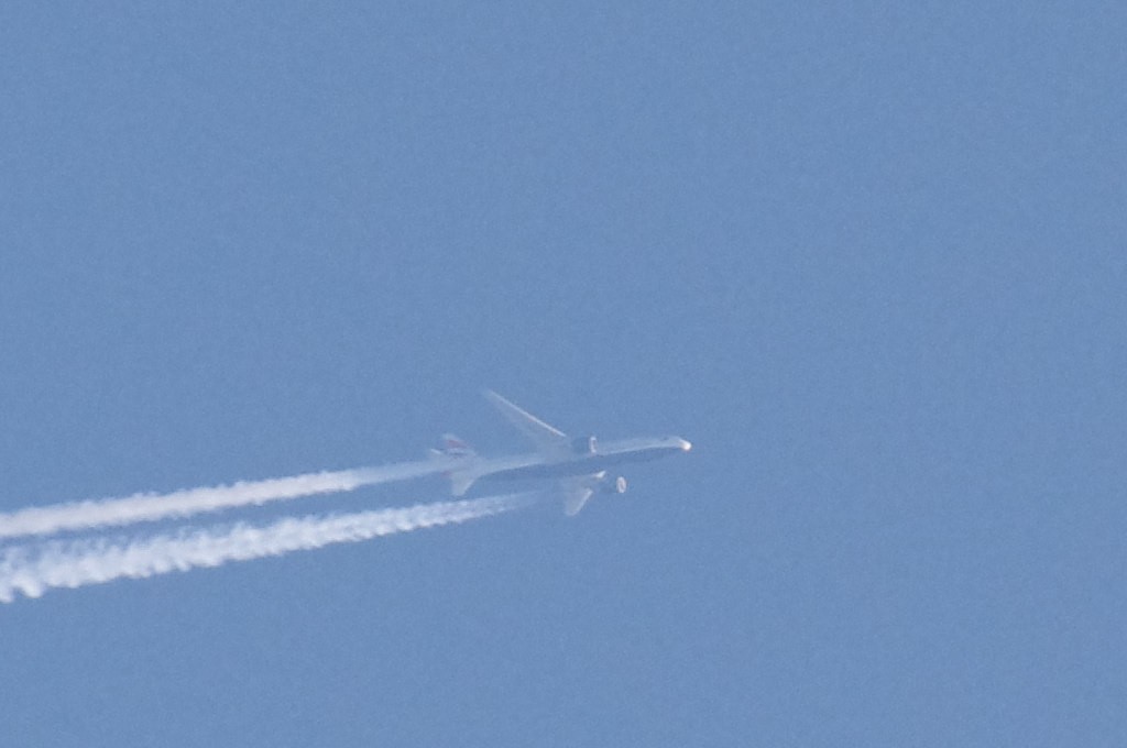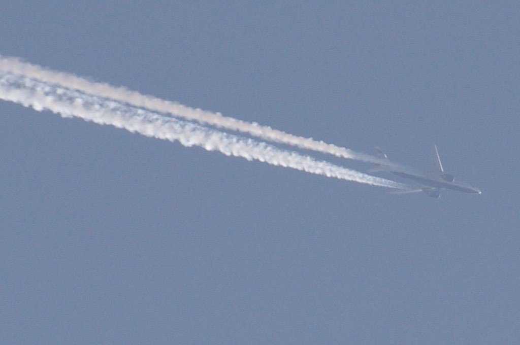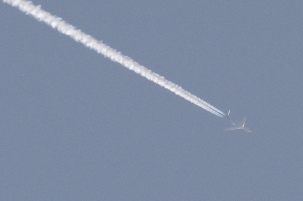 26.06.2010.g. update: ovo je Boeing 777-300ER, jedan od najvećih aviona u klasi, stoga je razumljivo da sam se prevario glede visine jer se učinio ogroman. Po odokativnoj procjeni, ovaj avion leti iznad 10km.