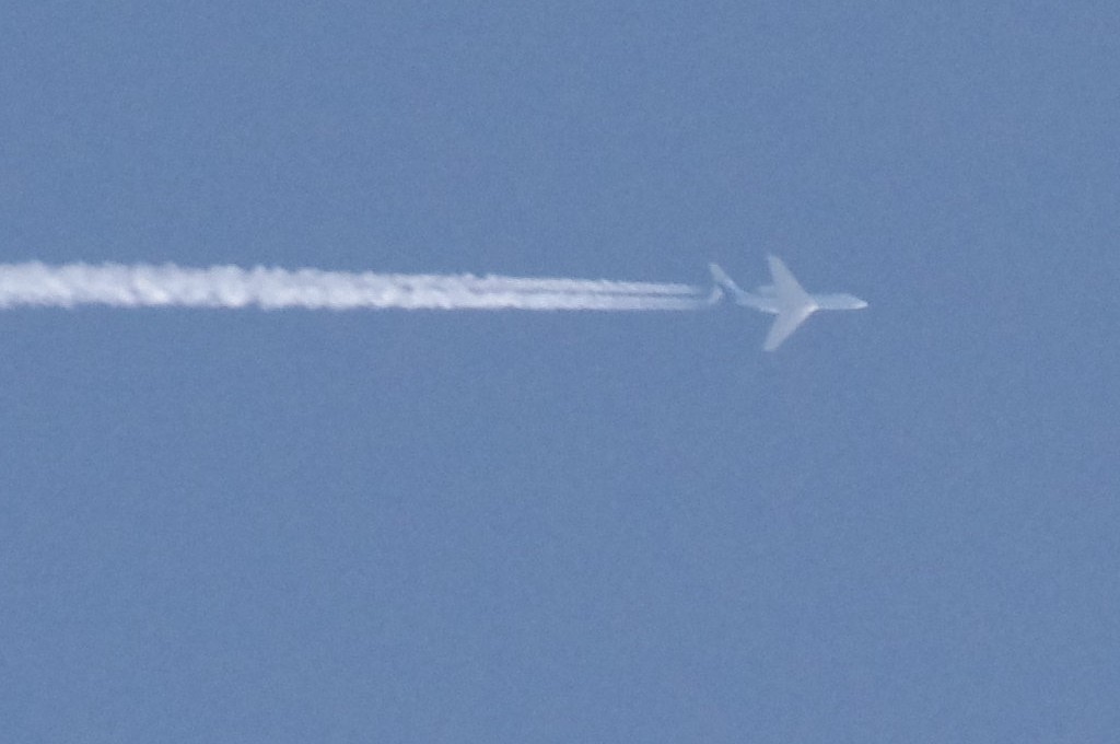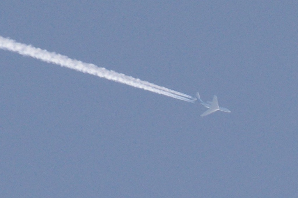 Smjer NW->SE. Vrijeme 18.50h. UNLEADED/BEZOLOVNI = avion ne pušta ama baš nikakav trag iza sebe. Od milja ih zovem bezolovni, iako je ovo u biti NORMALNI ispuh aviona. Jer je vrijeme relativno toplo (na površini Zemlje je oko 20C), a visina na kojoj leti ovaj avion ne može biti veća od 1000-1500m, a po definiciji stvaranja kondenzacijskih tragova, kondenzacija se stvara tek iznad 8km i to na -40C, stoga je i normalno da nema nikakva traga iz aviona. Ovo je tek TREĆI put da 'hvatam' ove tzv. bezolovne avione i moram priznati da ih je VRLO TEŠKO uhvatiti kamerom, iako su to 'normalni' avioni, tj. avioni koji ne ispuštaju kemikalije.