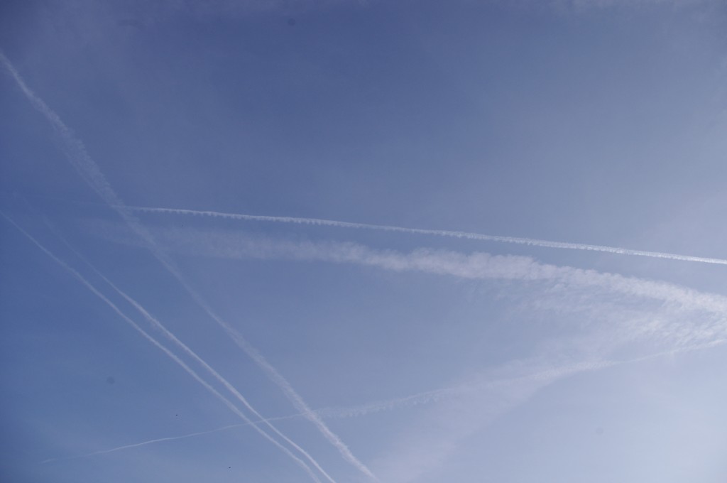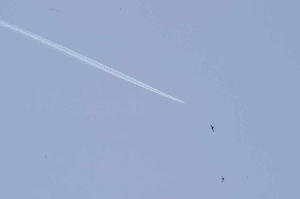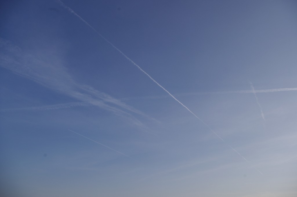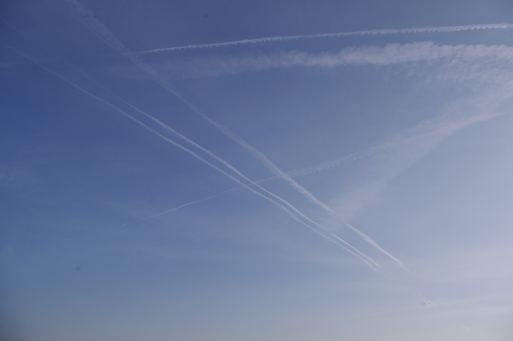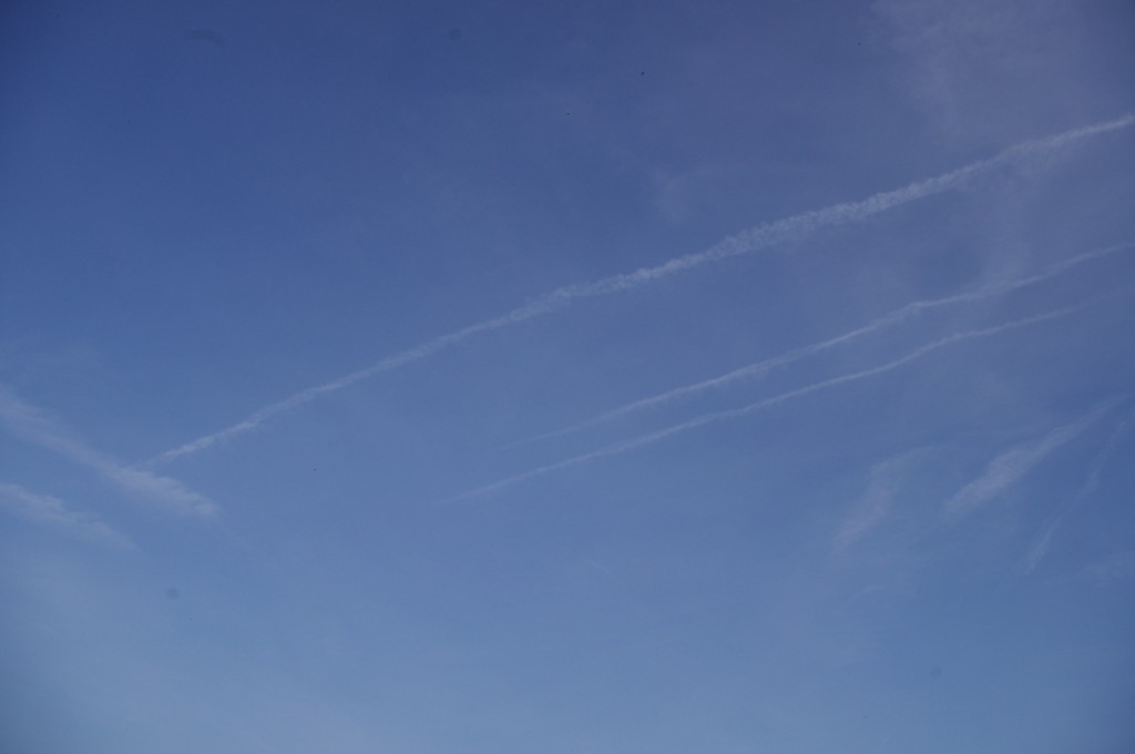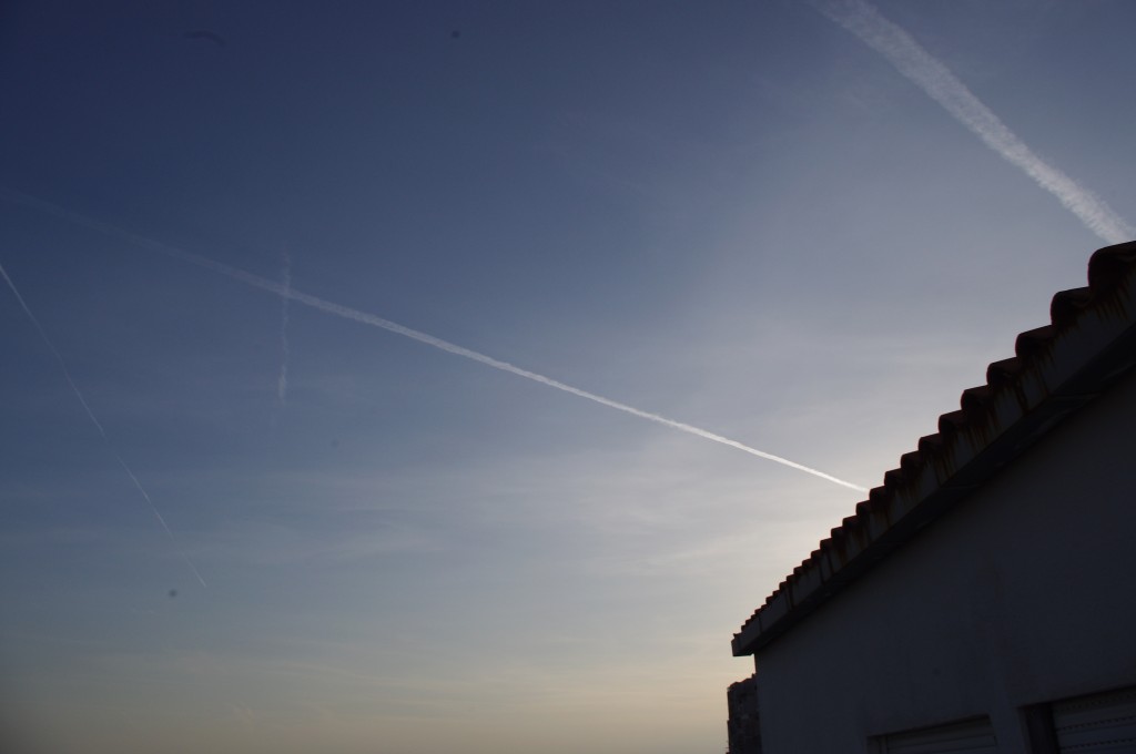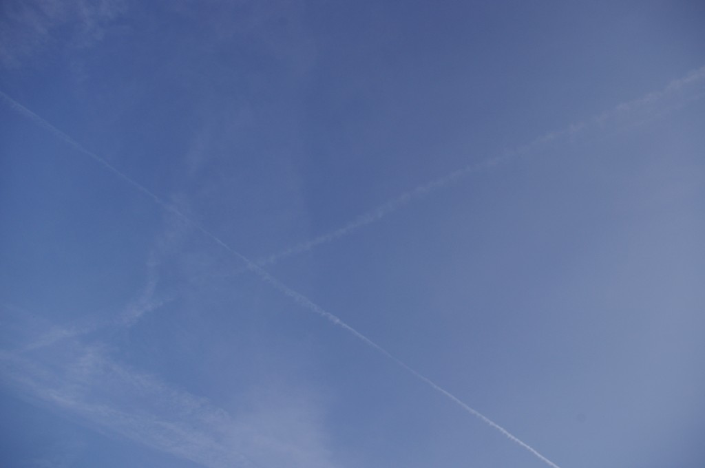 Ovo je moj dosada najbolje snimljeni križ uživo. Svaka im čast, ovi nisu pičkice, prošli su za dlaku jedan od drugoga unutar 1-2sekunde. Ova četiri traga: 3 paralelna od istoka k zapadu i ovaj križni od sjevera prema jugu će ostati do kraja dana i lagano se rasipati i potiho padati po nama, ubijajući nas jednog po jednog. Mamicu vam prašinarsku, sada sam vas uhvatio u nedjelu.