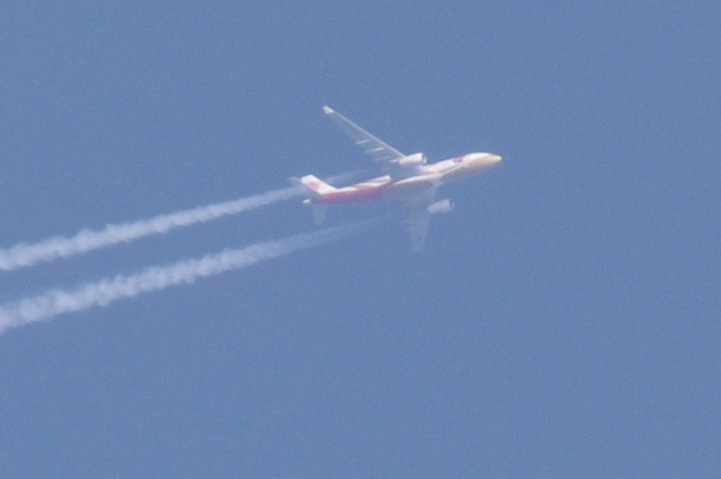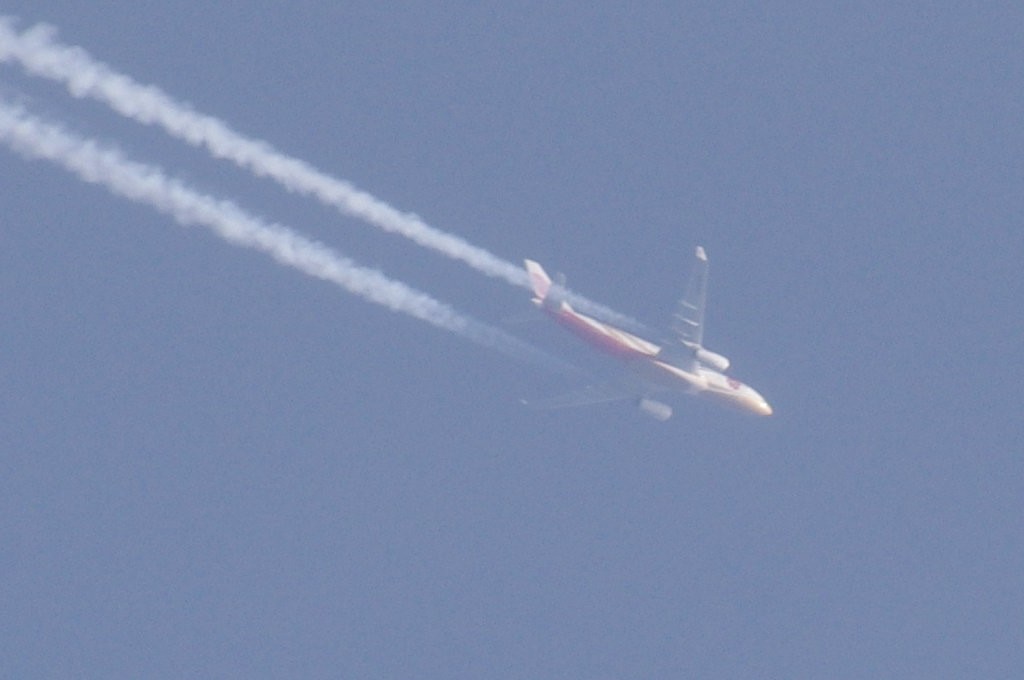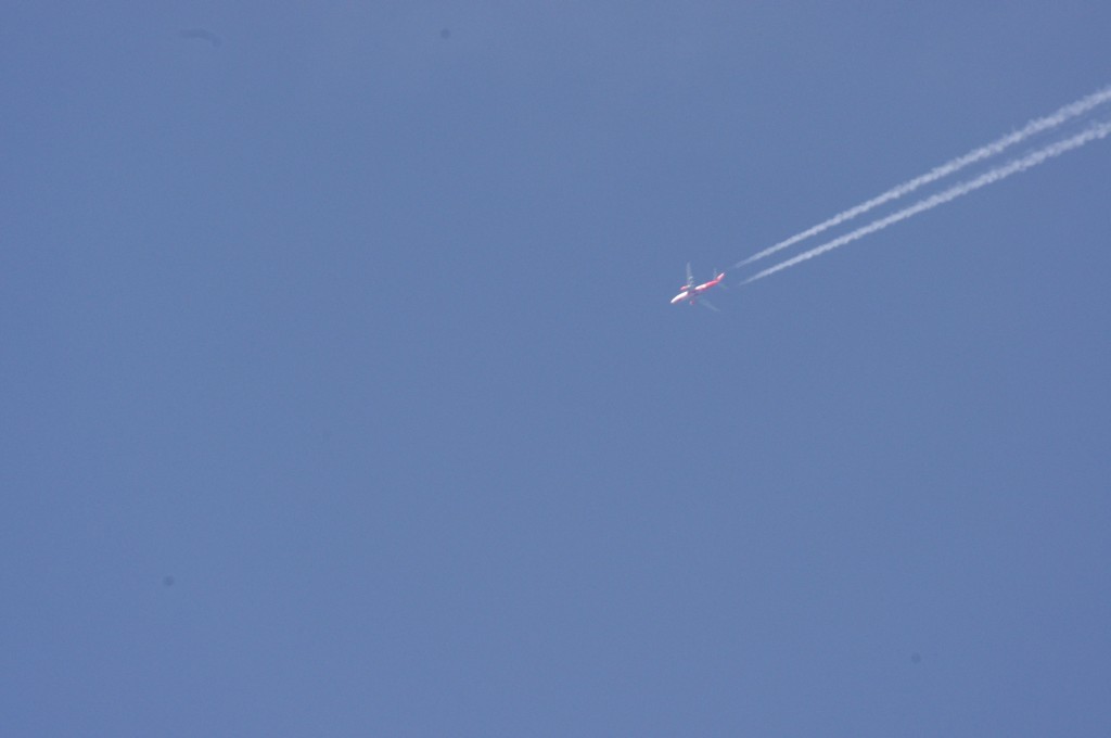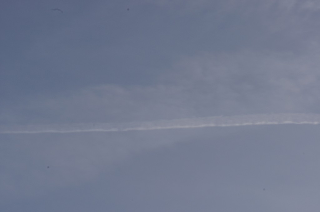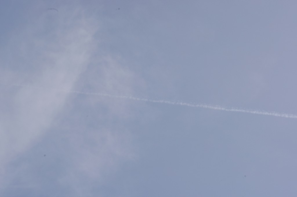 Smjer SE->NW. Vrijeme 18.53h. Odmah iza rusa ide i ovaj govnar. Pretpostavljam da je isto iz AEROFLOTA, ali teško je razlučiti. Snimke su loše jer je nebo jednostavno ZASIĆENO kemikalijama. Na slikama se jasno vidi kako namjerno siječe tragove od prošlih prašinara.