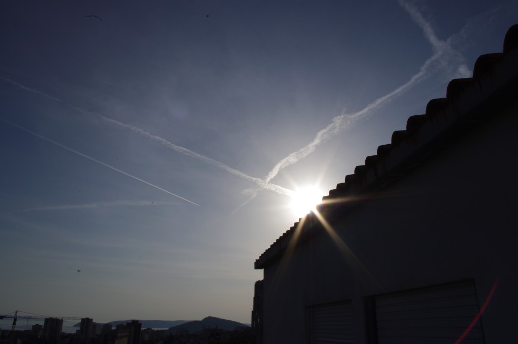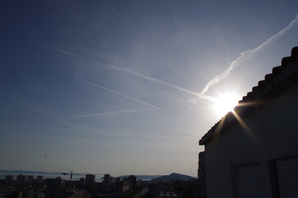Sile Zla i Mraka su htjele posebno proslaviti obljetnicu praznika rada, te su inače super sunčan, skoro ljetni dan pretvorile u totalno sranje i deponij kemikalija. Danas su mi se čak i 'skeptici' javili da su primjetili dosta neobično prašenje. Ja tvrdim da je ovakvo prašenje uobičajena i svakidašnja pojava, ali rijetki su dani kad je nebo fino i čisto pa se lijepo vide kako nas ubijaju sijajući otrove po nama.