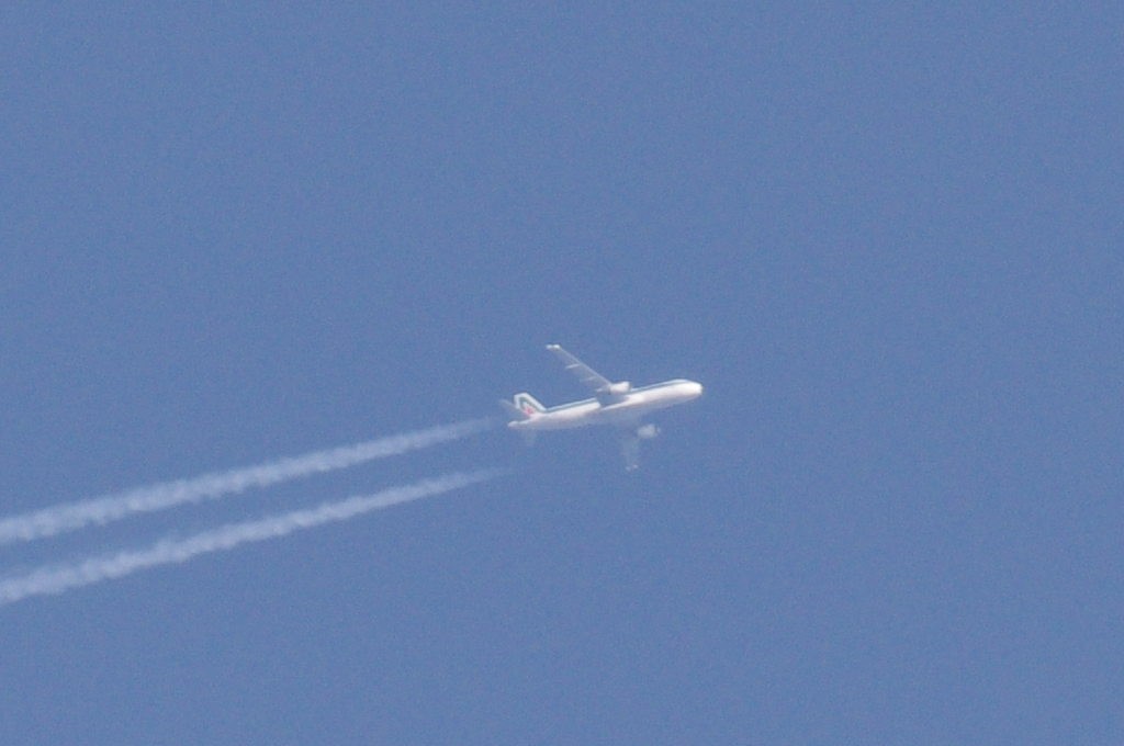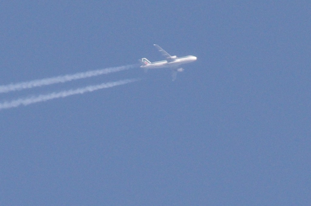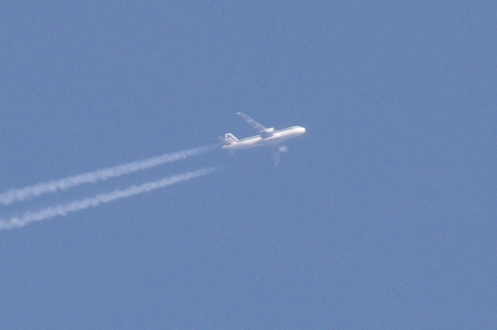 Smjer E->W. Vrijeme 18.31h. Stari poznanik, pripadnik ALITALIA talijanske CIVILNE kompanije (ili s vrlo sličnim bojama). 100% potvrđeni prašinar. Ide po paralelnoj putanji kao i ovaj prethodni, ali malo razmaknut, možda par stotina metara.