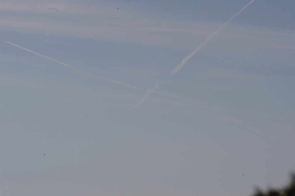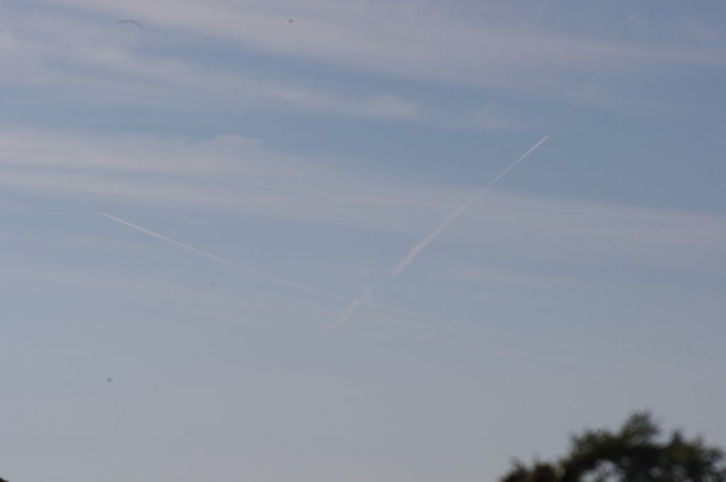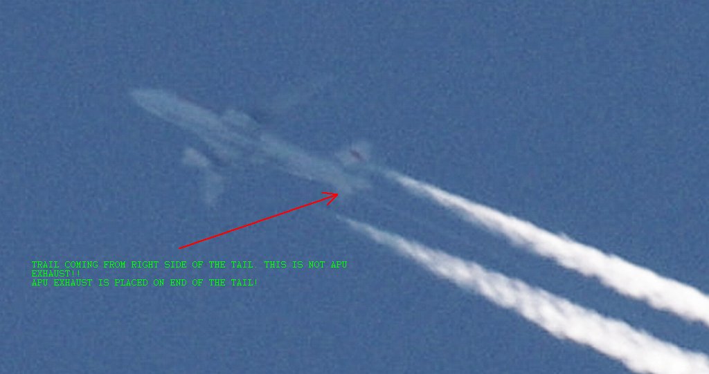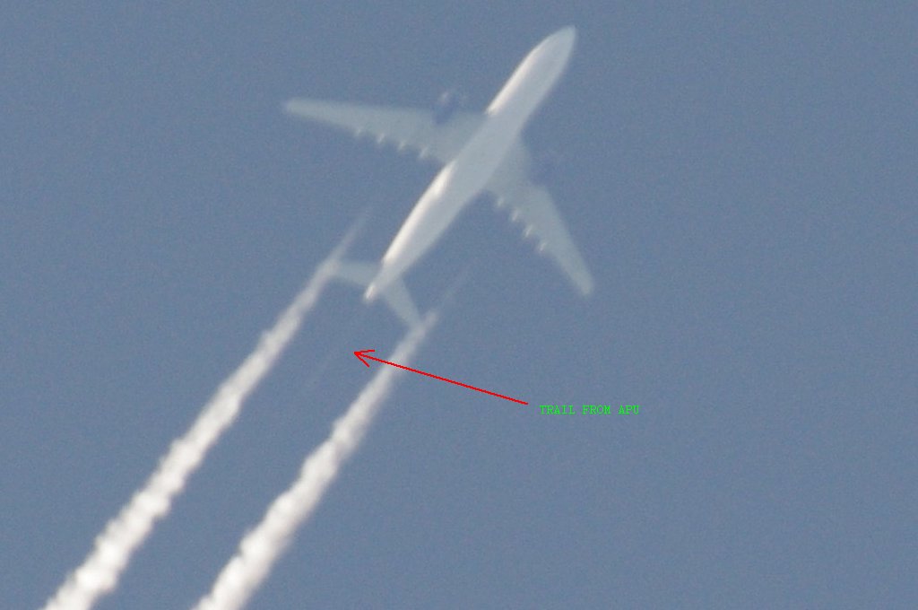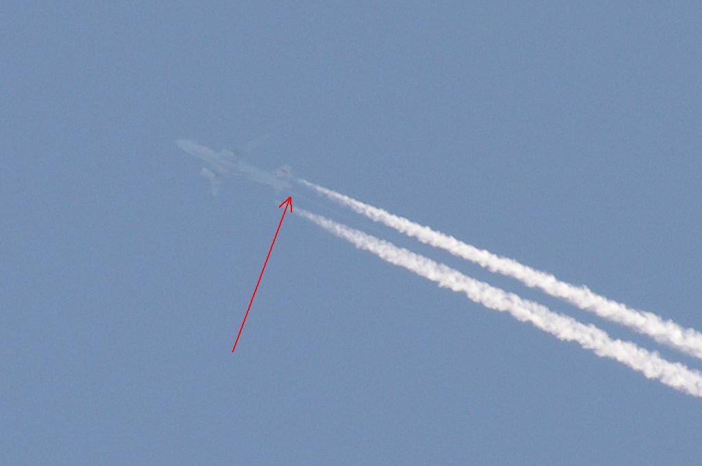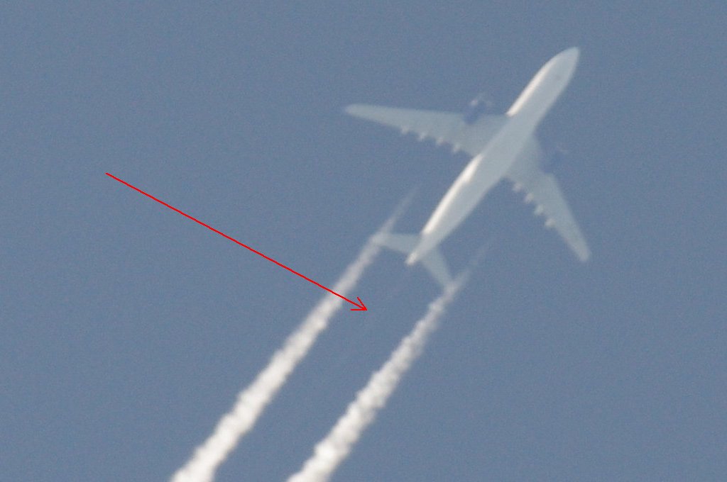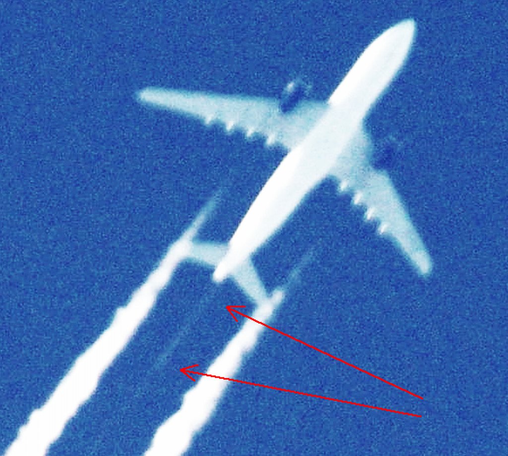 Ovo je na prvi pogled bio rutinski dan, ali kasnijom analizom slika uočio sam kako DVA aviona iza sebe ostavljaju tanki trag iz repa. Dok se za trag iz motora još može diskutirati jeli contrail (kondenzacijski trag) ili chemtrail (kemijski trag), za trag iz repa aviona NEMA sumnje da se radi o chemtrail-u. Dapače ja zastupam tezu da je trag iz repa aviona odnosno iz tzv. APU jedinice uglavnom biološkog podrijetla usmjeren protiv ljudi i bio-svijeta (paraziti, bakterije i ostala gamad) jer je ispuh APU jedinice relativno daleko od motora pa ispušteni materijal ne mora biti toliko otporan na temperature.