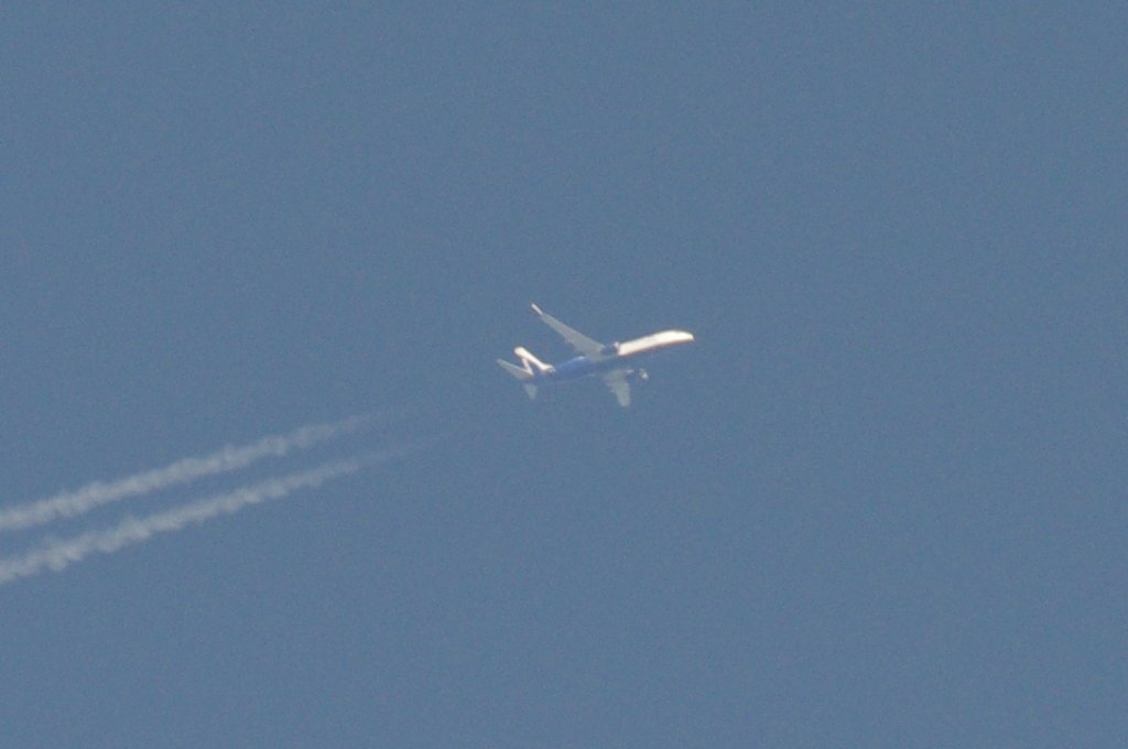 Smjer: N->S. Vrijeme: 17.43h. Daleko i mutno, ali po bojama, očigledno je pripadnik Thomson Airways grupacije.