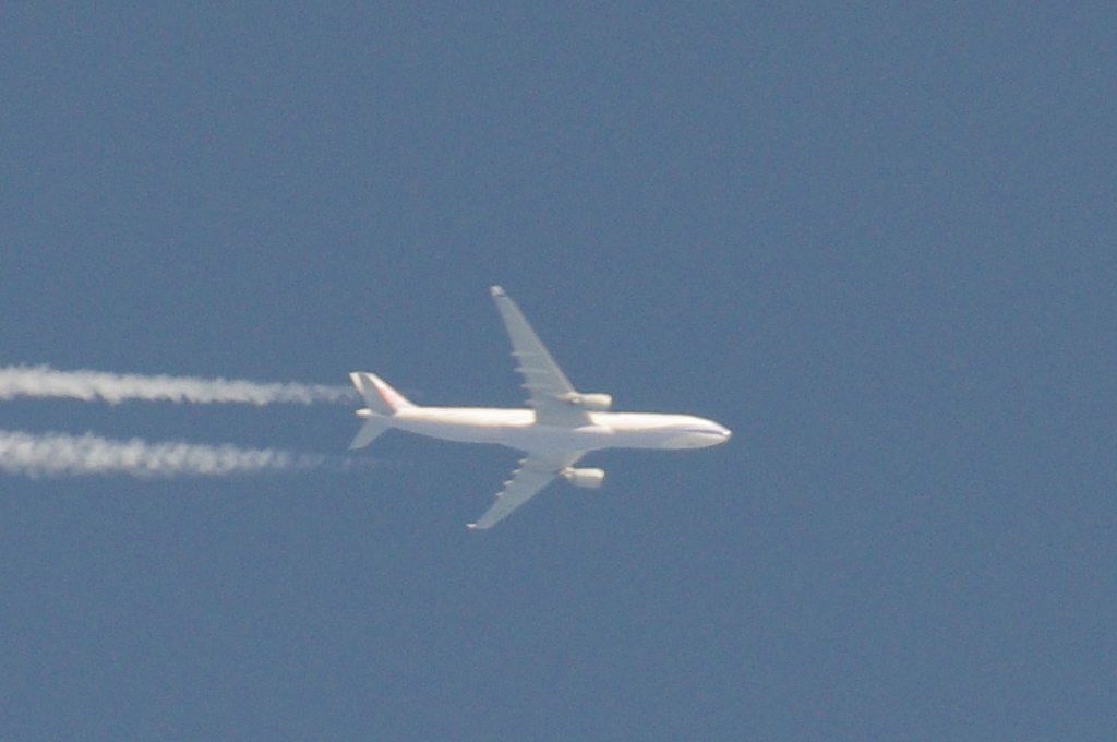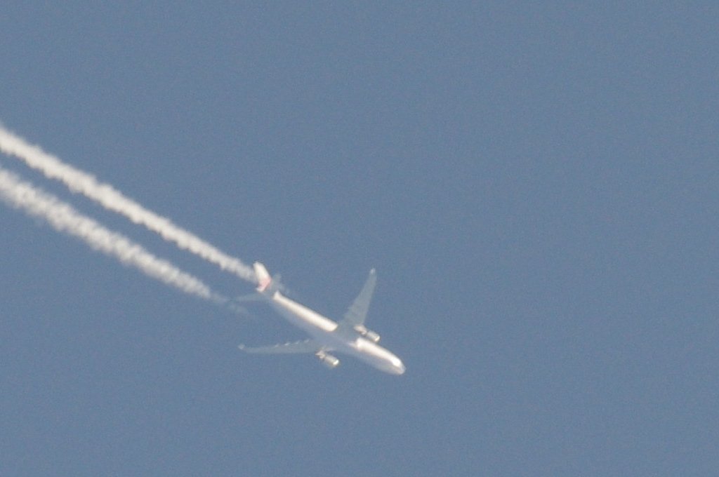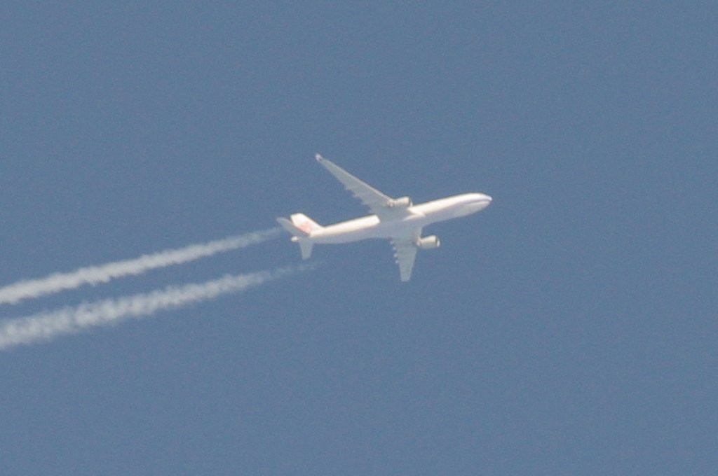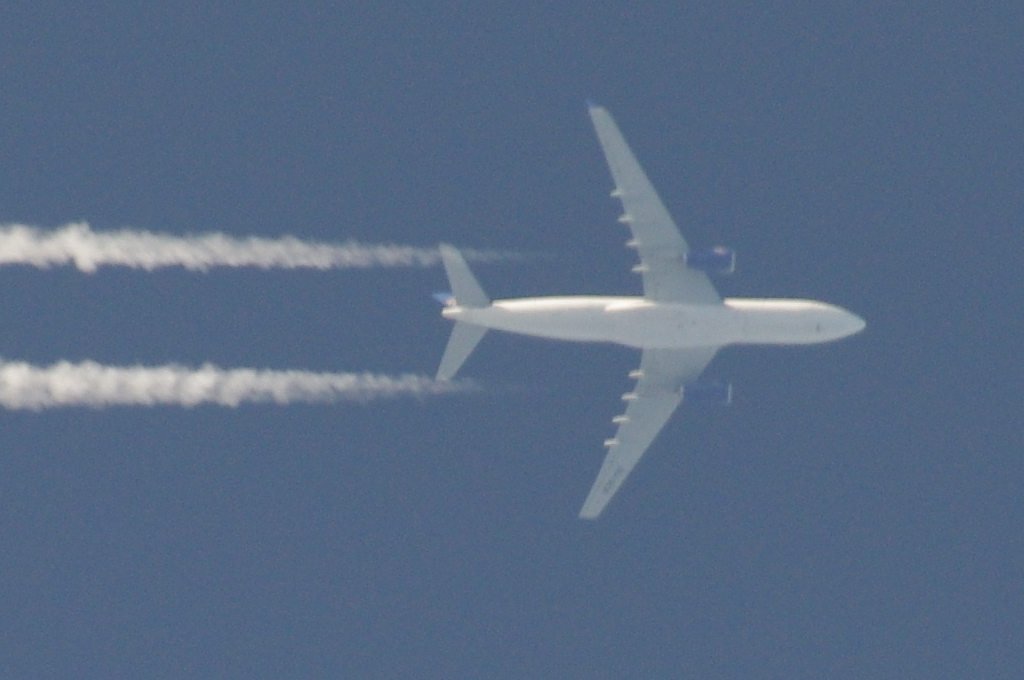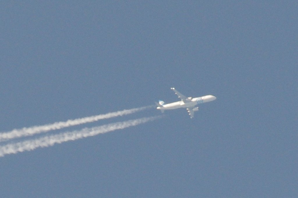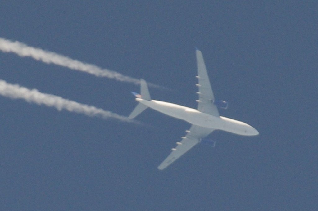 Smjer: N->S. Vrijeme: 17.50h. Airbus A330 Egypat Air kompanije. Najvjerovatnije se radi o avionu s call-signom: SU-GCE. Prvo je napravio križ s još jednim avionom negdje iznad Kozjaka. Kad se približio Splitu počeo je ispuštati trag iz repa odnosno iz APU jedinice. Kad mi je bio točno iznad glave ovaj trag se nije vidio. Moguće je da je trag uočljiv samo pod određenim kutom, ili je palio/gasio bio-chem mlaznice. Interesantno kako je uočavanje traga iz repa vrlo rijetko, a ja sam evo u jedan dan, jedno popodne, tj. unutar jednog sata uočio DVA takva aviona. Očigledno da su danas htjeli isprobati neke nove biološke otrove nad svekolikim pučanstvom.
