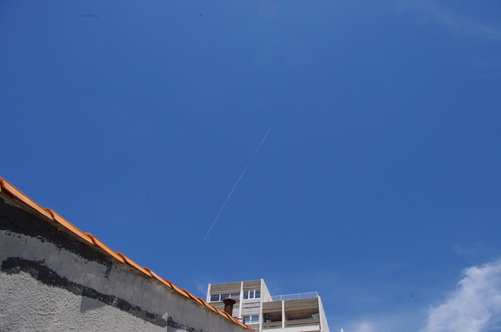 Smjer: N->S. Vrijeme: 10.34h. Opet neidentificiran, šteta jer mi je prošao iznad glave. Opet dugi i perzistentan trag kojega sam uslikao izbliza. Interesantan je model raspršivanja traga, vrlo neobičan, po mom skromnom i nestručnom mišljenju, teško da odgovara kondenzacijskom tragu.