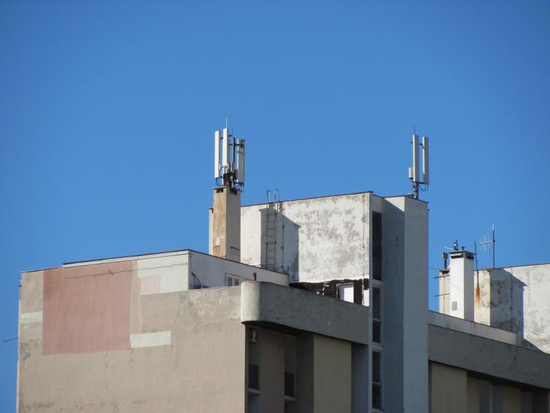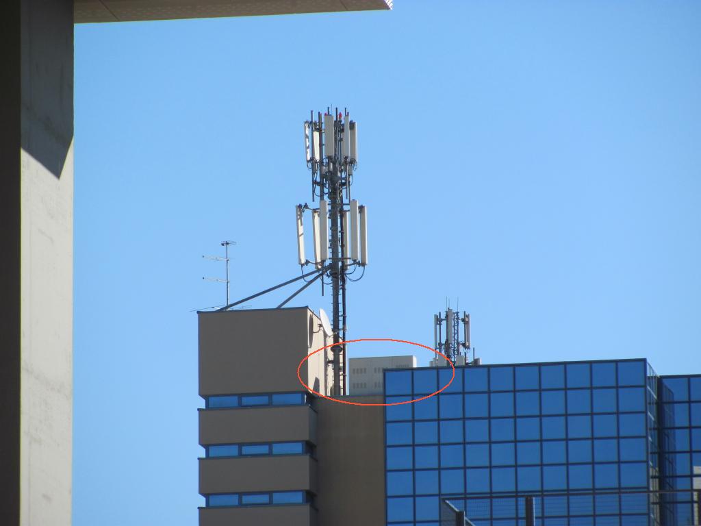 Slika 7: I onda se okrenem i paf, s leđa me masira još jedan maser-mast tower ili da bolje dočaram s donjeg parkinga ispod sveučilišne knjižnice i FESB-a mogu se 'triangulirati' ukupno 5 jakih nakupina mobitelskih antena (1 na knjižnici, 2 na ekonomiji i 2 ovdje dole preko puta knjižnice). Očigledno da su tzv. Silama Tame, mladi umovi posebno opasni, kad ih 'masiraju' s ovom teškom artiljerijom iz neposredne blizine (point-blank).
