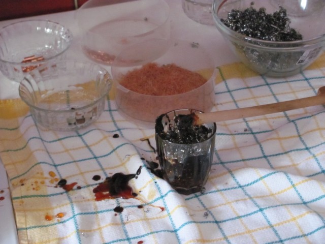 I tako jednog lijepog dana sastavih svoja prva dva orgonita, jedan u kristalnoj zdjeli, a jedan u omanjoj čaši. Oba dva još uvijek čuvam i pazim. Pa evo napokon i slika rađanja mojih prvih orgonita: