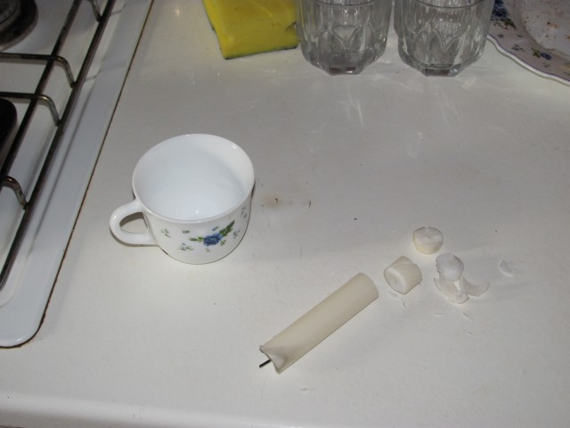 Postupak s voskom: obična voštana svijeća se izreže na manje dijelove, fitilj se ukloni, sve se stavi u šolju, napuni se lončić s vodom, a šolja s voštanim dijelovima se stavi u vodu, pazi se da voda ne uđe u šolju. Zagrijava se voda, može i do ključanja, ali nakon toga na polaganu vatru, a istovremeno se miješa smjesa u šolji, nakon par minuta vosak bi se pretvoriti u prozirnu tekučinu. Oprezno se krpom uhvati šolja i izliti u čaše, zavrti se čaša da se vosak ravnomjerno prelije preko cijele površine. Paziti na prste da vosak ne padne na njih iako ne postoji opasnost od opeklina, nije baš ugodno. Vosak se stvrdnjava u roku od par desetaka sekundi stoga treba biti oprezan. Nezgodan je kad kapne na radnu površinu ili pod jer se teško miče, stoga je opet dobro imati karton ili neku jaču kartu ispod svega. Na par zadnjih slika se vidi kako su fino ispali šečeraši, izgledaju kao kolači, međutim, okrenuti naopako šečer počinje polagano curiti niz stijenke bez obzira da li je temperatura konstantna odnosno sobna, jednostavno vosak nije zadovoljavajuće rješenje za začepljivanje šečernih orgonita.