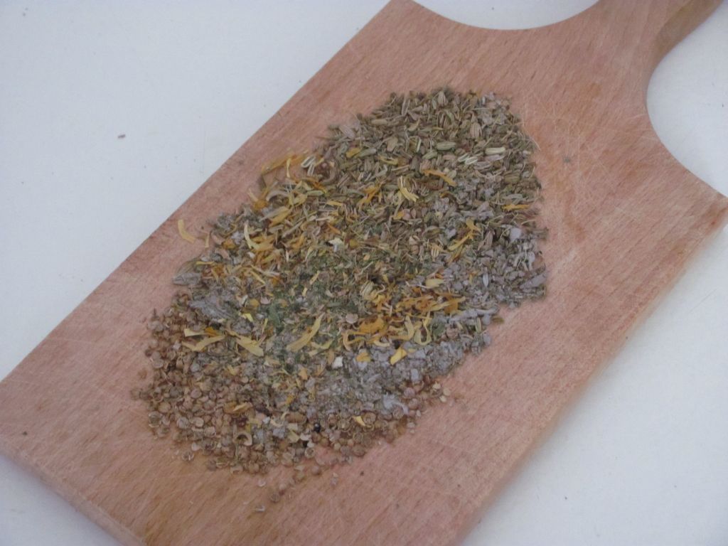 Egzotični sastojci - ljekovite trave: svaki orgonitaš dodaje neke svoje male 'tajne' u orgonite počeši od eteričnih ulja, koloidnog srebra, zelene gline, talka, ljekovitih trava i slično. Ideja je da energija koja se emitira iz orgonita ima i informaciju ovih ljekovitih ili 'svetih' sastojaka. Pošto obožavam čajeve od nevena, kadulje, metvice i sličnih ljekovitih biljaka i ja sam krenuo ovim stopama pa sam izmiksao spoj ovih trava i od prvog dana ih stavljam u svaki svoj orgonit (zadnja slika). Miris ovih trava je jednostavno čaroban kad se umiješa u karamel.