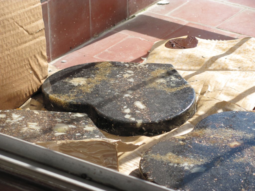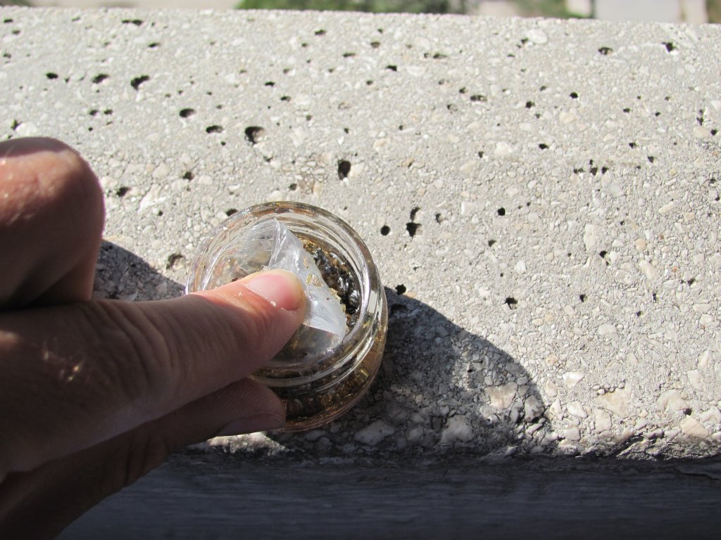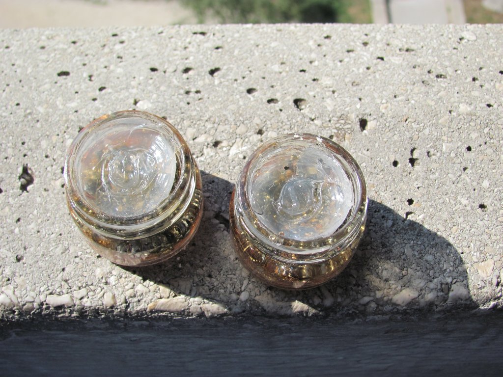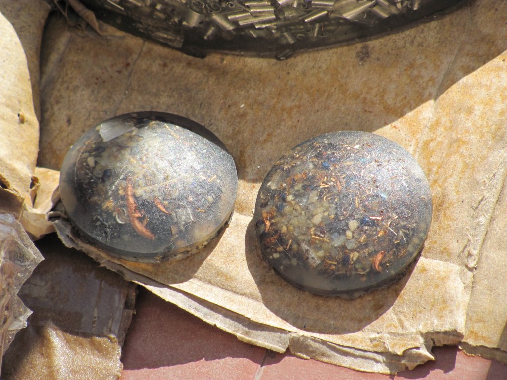 Prve tri slike pokazujju šečeraše koje sam postavio na krov prije nešto više od mjesec dana u svom prvom 'gift runu'. Veliki bijeli je pukao, ali se još drži, kasnije sam ga zaliljepio poliesterom. Dva mala šečeraša premazana silikonom nažalost nisu izdržala sunce i kišu, naime silikon se jednostavno odvojio od stijenke. Njih sam kasnije ubacio u veću šečerašku teglu. Ovo je dokaz da i silikon nije otporan na sunce i vlagu, stoga treba obavezno koristiti čep za staklene tegle s šečernim orgonitima ili ih premazati epoksidom i još eventualno s silikonom naviše toga.