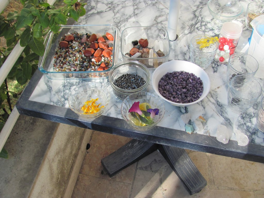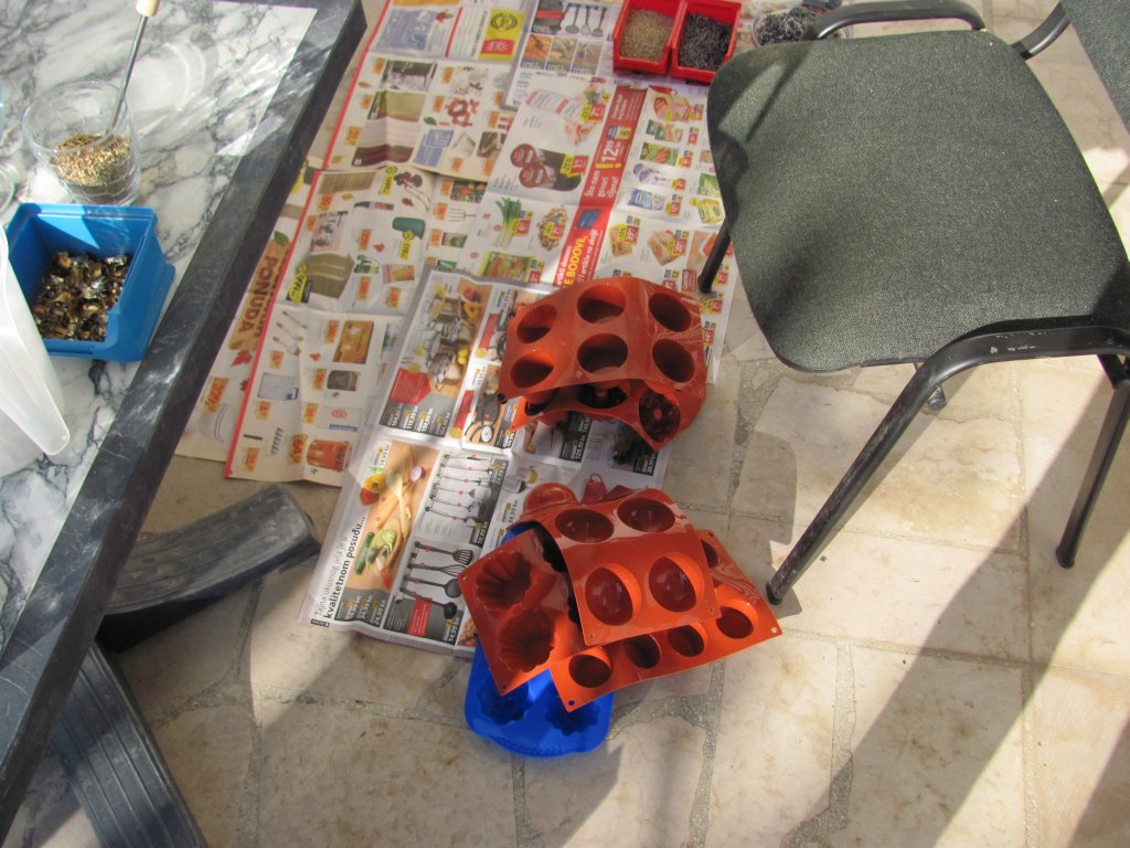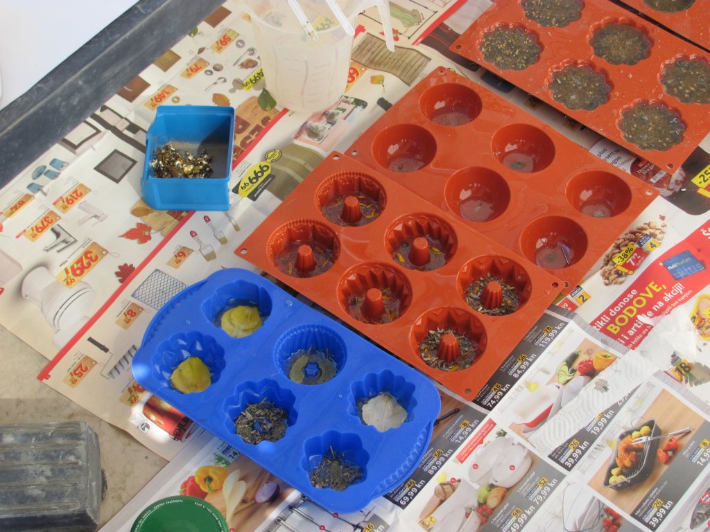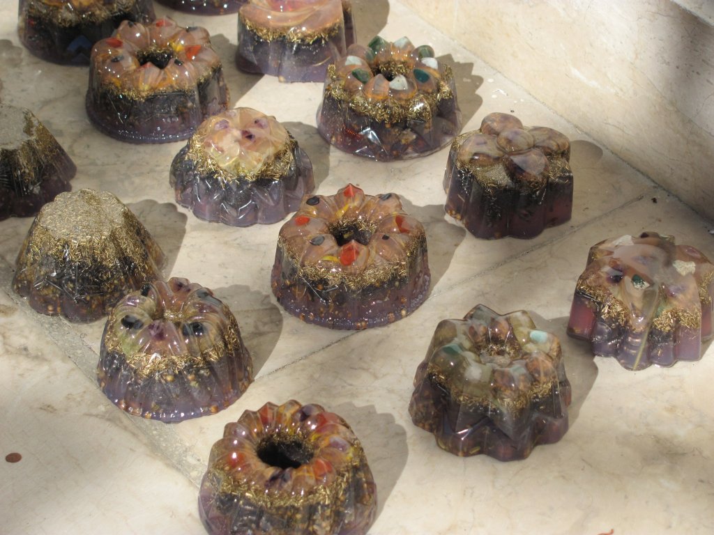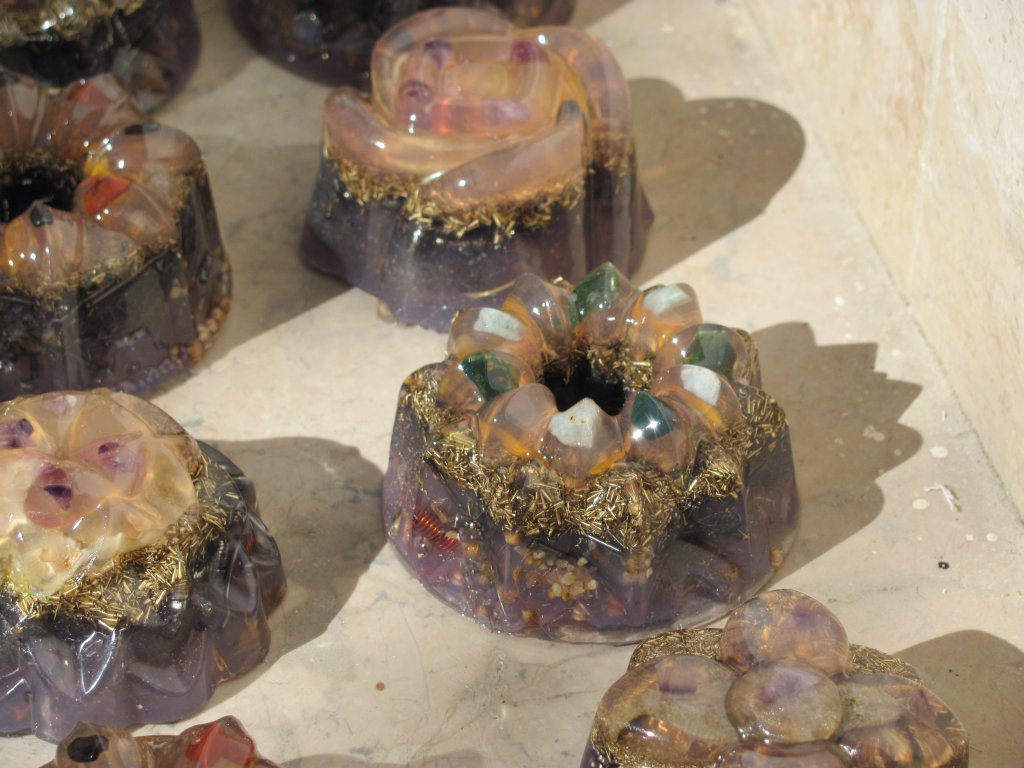 Neveni su zasjali na suncu, a meni je sinula ideja da stavim latice u TowerBustere i da ih tako malo uljepšam. U 12 TB-ova sam stavio sam latice nevena, kadulje i ostalih cvjetova s kristalićima na vrhu. Međutim, usljed topline koja se stvara kad smola stvrdnjava, izgubila se boja latica, a poliesterska smola se inače dosta zamuti i nije tako prozirna kao epoksidna, tako da nije ispalo baš naj naj, ali svakako bolje nego 'obični' TB. Ovih 12 sam namijenio za po kući, međutim, danas kad gledam, ostalo mi je 6 komada što hoće reći da sam ih pola dao. Inače skoro 80%, ako ne i više orgonita dajem rodbini, prijateljima, susjedima, tako da i na taj način 'giftam' okolinu.