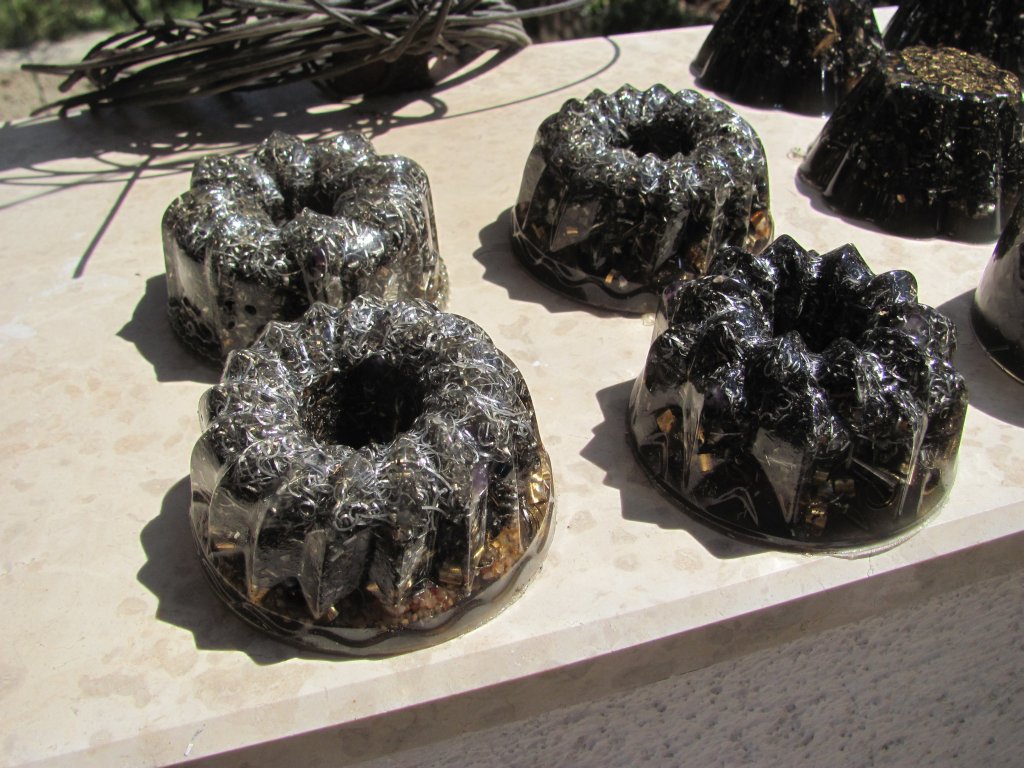 U susret idućoj akciji giftanja, ovaj put sam se dobro pripremio, upotrijebio sam sve svoje silikonske kalupe, u skoro sve TB-ove sam dodao malo crne gize, tako da su dobili crnu kamo-boju kako bi se lakše uklopili u okoliš. Čista sirova snaga. Mislim da ih se taj dan rodilo oko 34 komada. Nisam mogao odoliti pa sam grupno snimio sve orgonite koje sam zatekao u svom orgonskom laboratoriju, a koji će idućih dana ići tko zna gdje i tko zna kome. Stoga eto jedne milenijske fotografije svog mog trenutnog arsenala koji najvjerovatnije ide u okoliš ili kao poklon ljudima dobre volje.