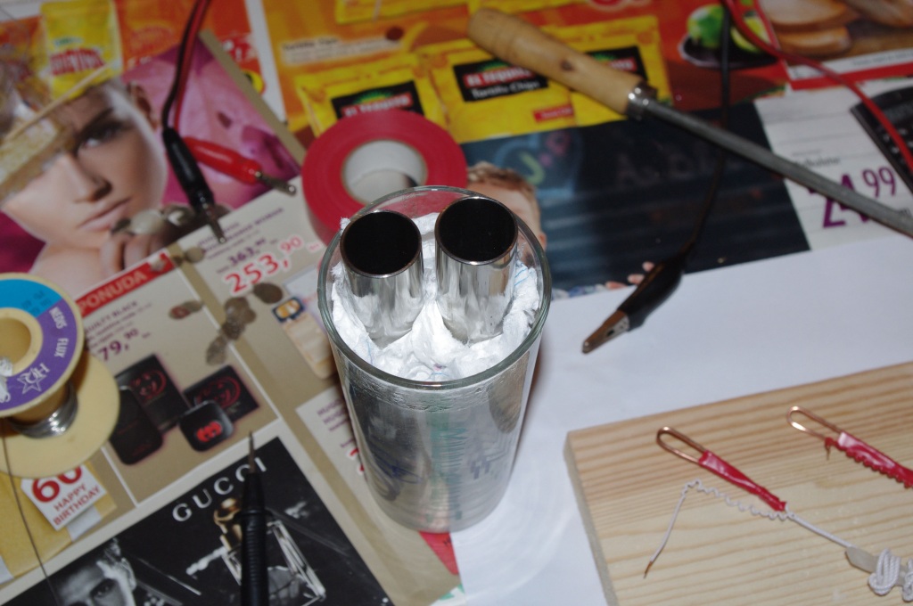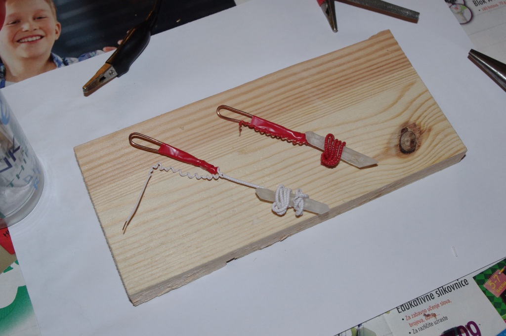 Kako je bilo vrlo teško zalemiti žicu na stijenku palice, dizajn sam kasnije usavršio tzv. hladnim spojem, odnosno žicu nisam lemio već sam je vidom pričvrstio za stijenku palice. Još jedan trik dostojan Grunfa iz legendardnog Alan Forda.