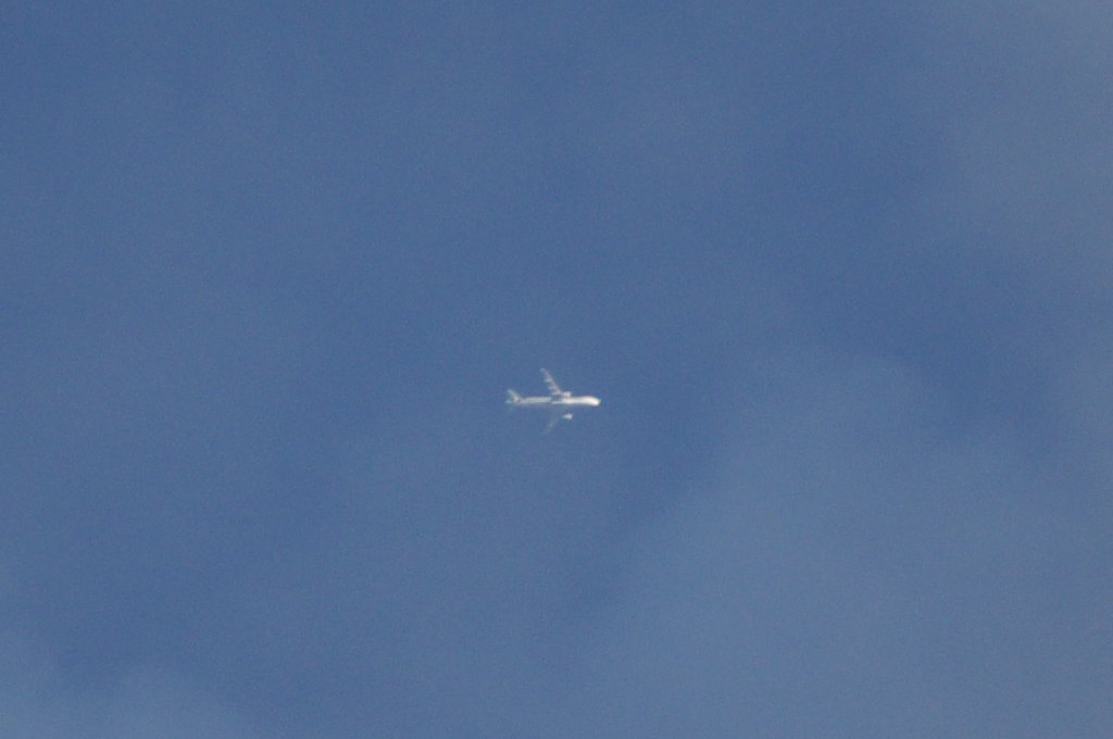 Nakon možda 2 minute, po istoj putanju dolazi i treći avion. Ovaj nikako ne pušta trag iako ide po istom pravcu kroz oblake, valjda je sve izbacio iz sebe. Inače dokaz da iznenadna pojava tragova nema veze s promjenom tlaka, jer ovaj ide bez traga non stop.