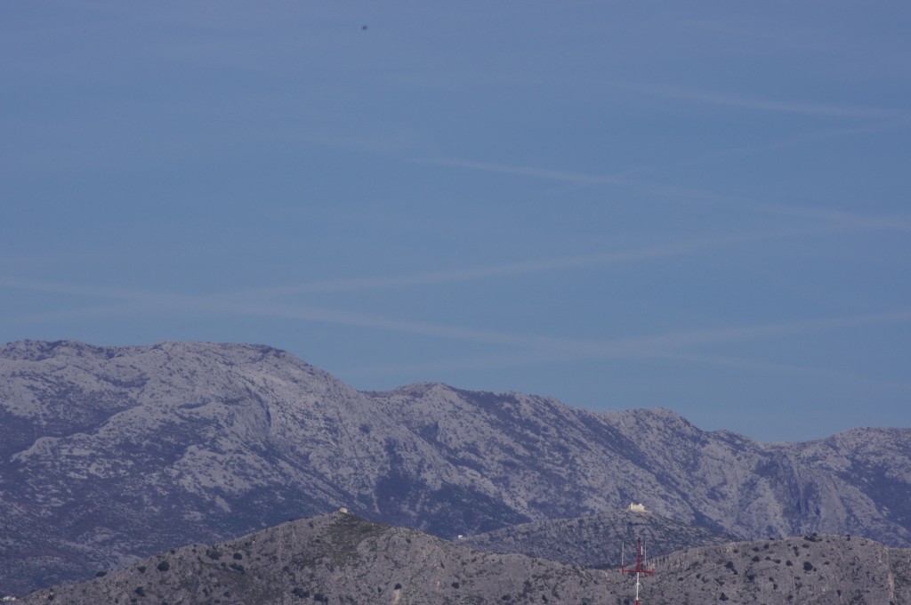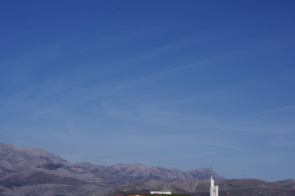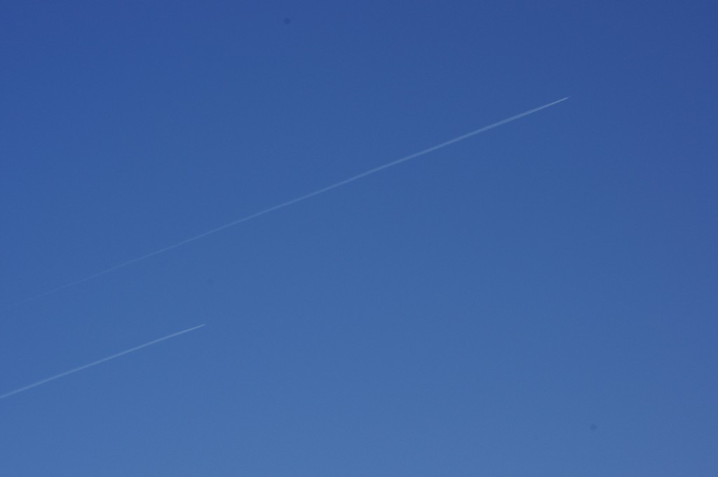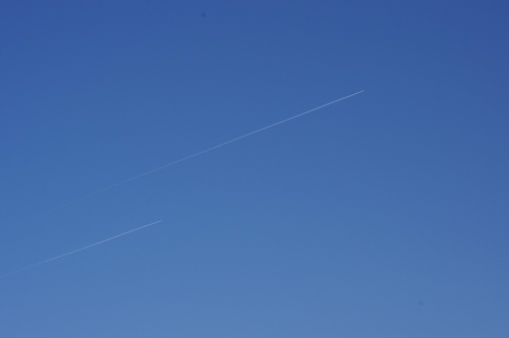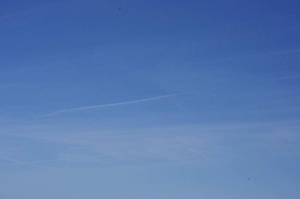 Sunčan dan je nešto što NATO zaprašivači najviše mrze. Cijeli dan sam ih uočavao kako praše, nažalost tek sam kasnije popodne uhvatio vremena da ih uslikam s kamerom. Normalno, kad sam ja došao, već su se fino iskrižali na nebu, tvoreči rešetkasti pattern i bijelu kemijsku izmaglicu.