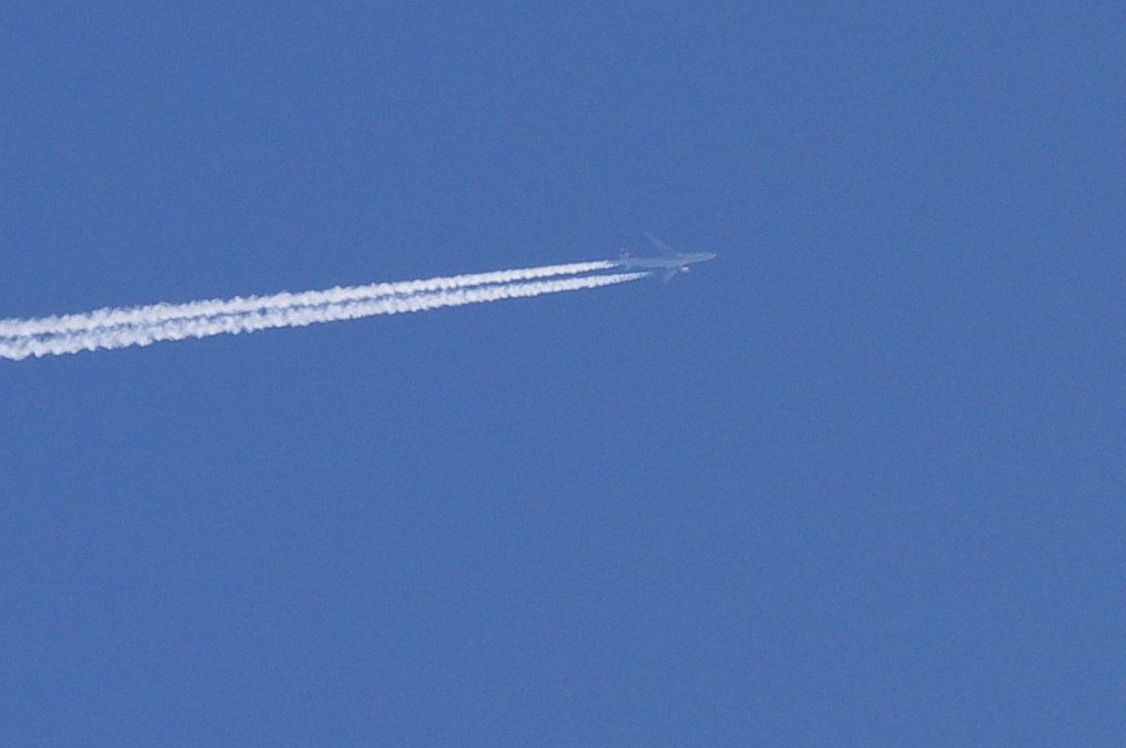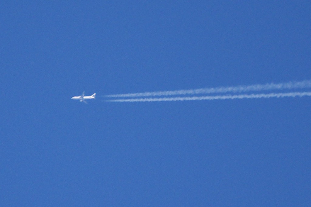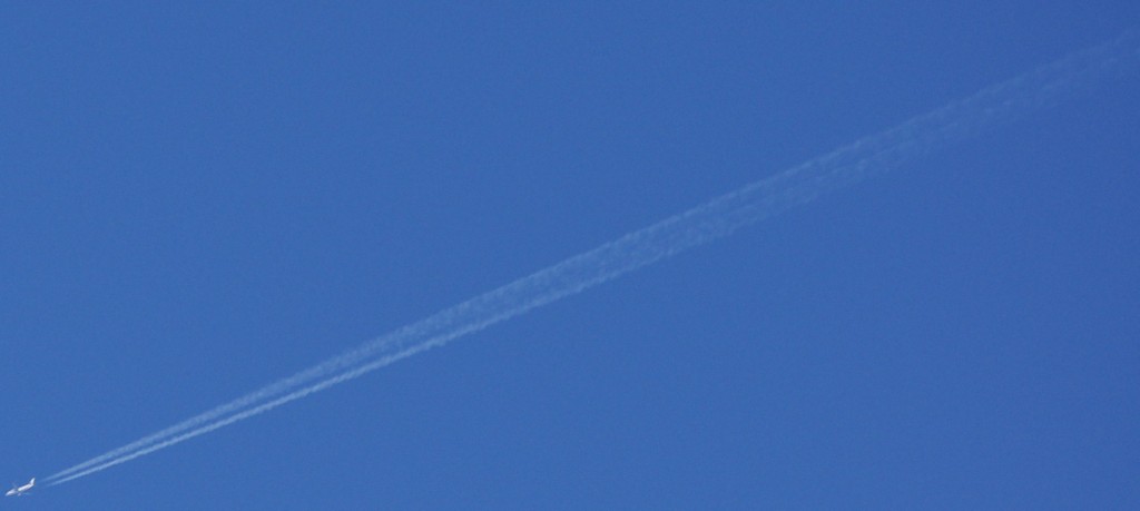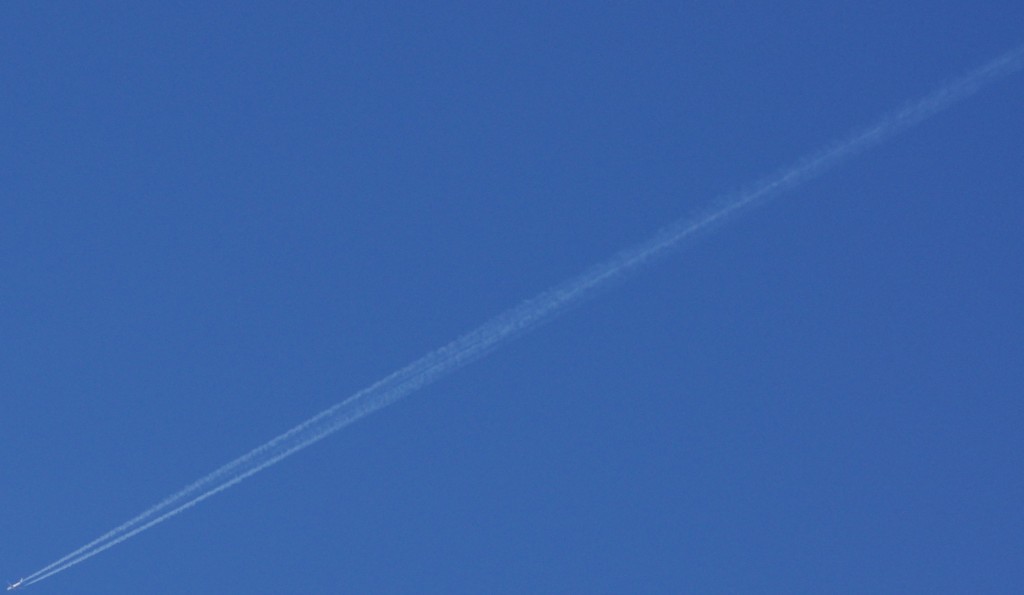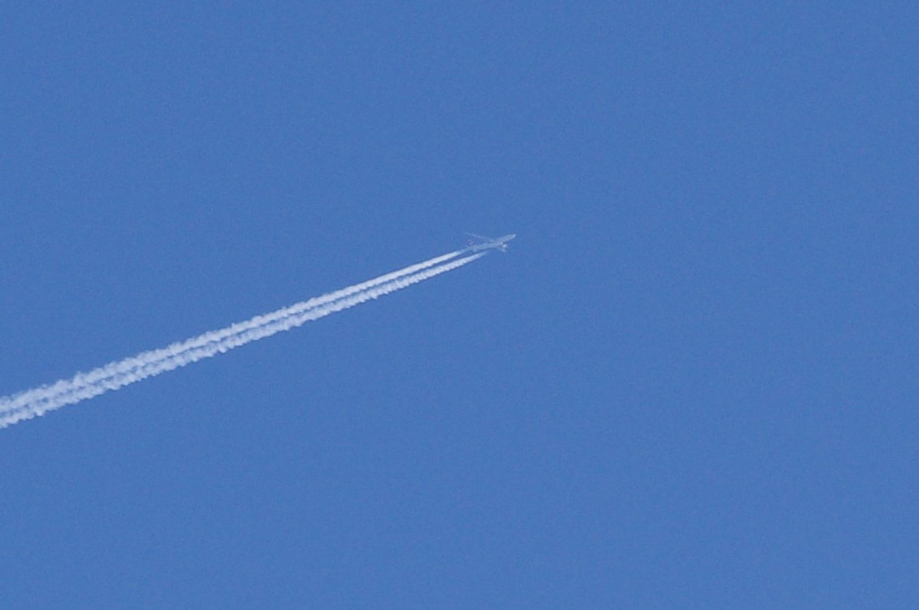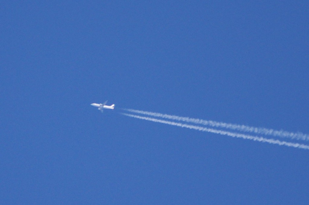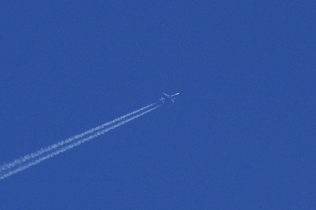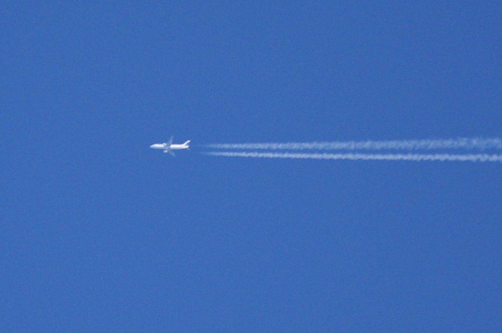 Prošla mi je točno iznad glave. Četveromotorna Ajkula. Smjer: SE. Količina kemikalija koju ispušta je upravo nevjerovatna. Trag se relativno brzo raspršio i stvorio finu bjelkastu kemijsku izmagljicu.