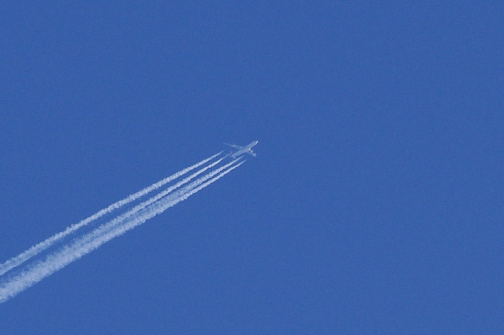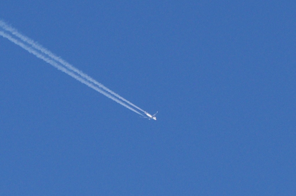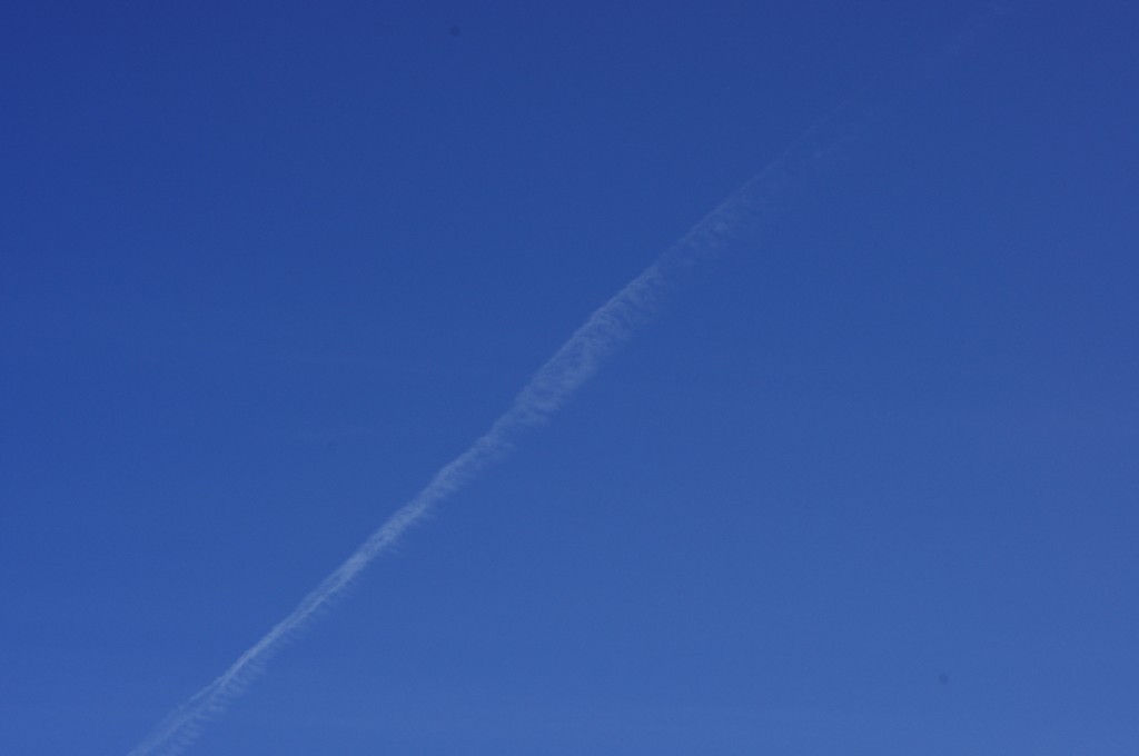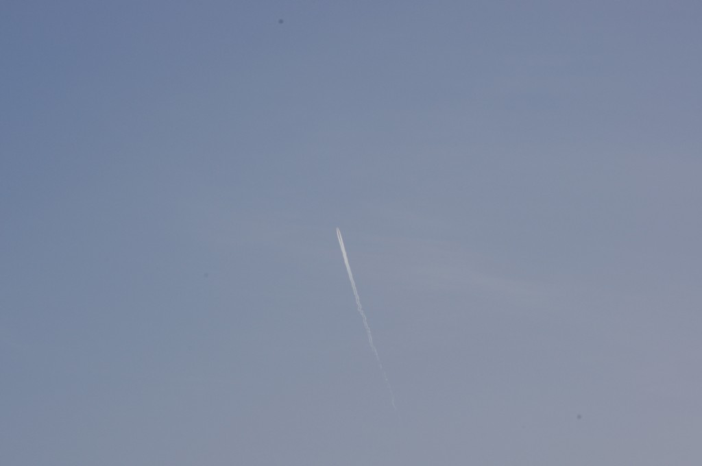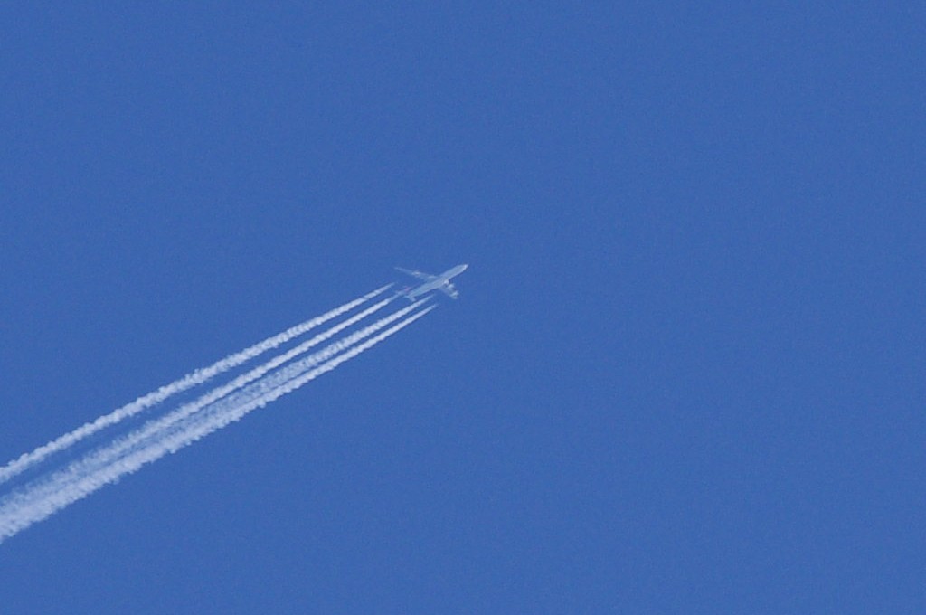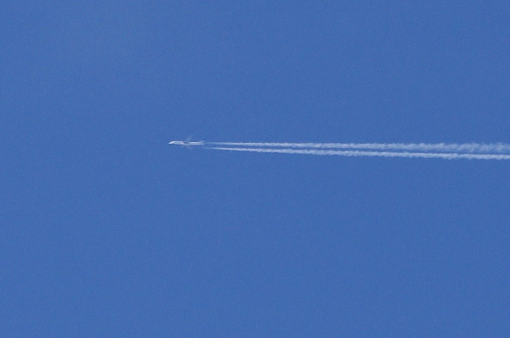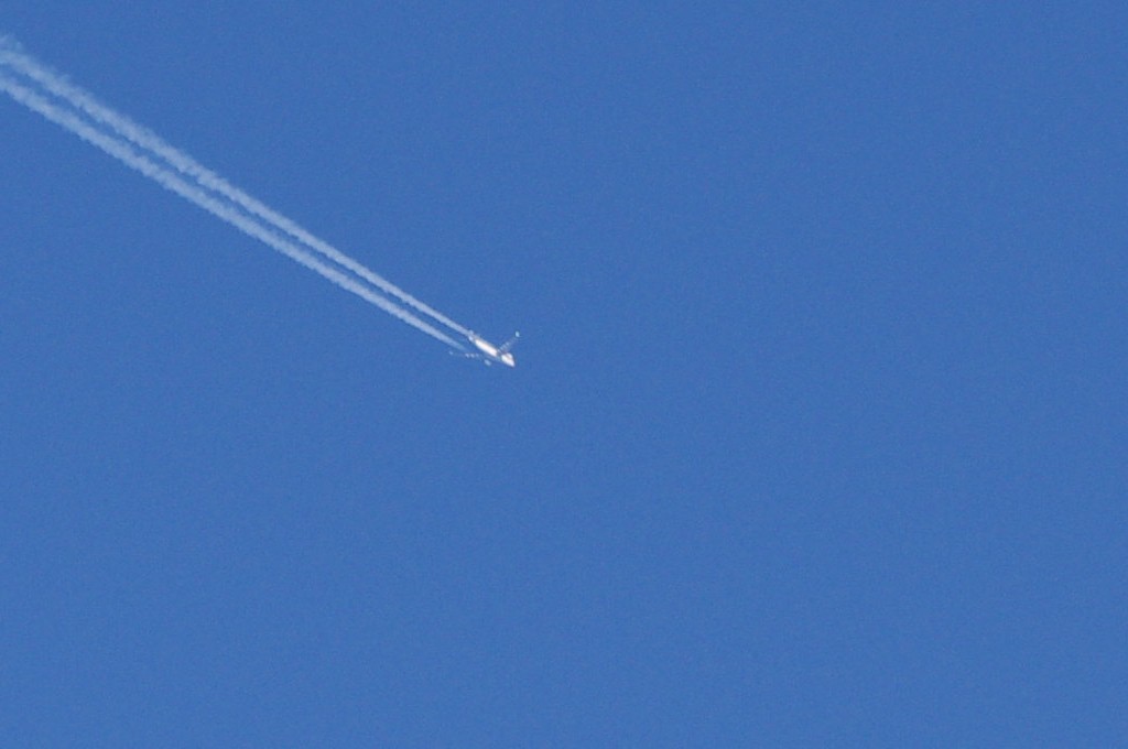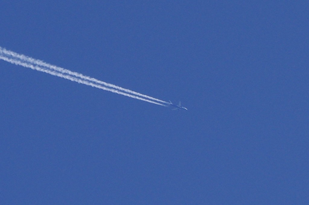 Prošla mi je točno iznad glave. Četveromotorna Ajkula. Smjer: SE. Količina kemikalija koju ispušta je upravo nevjerovatna. Trag se relativno brzo raspršio i stvorio finu bjelkastu kemijsku izmagljicu.