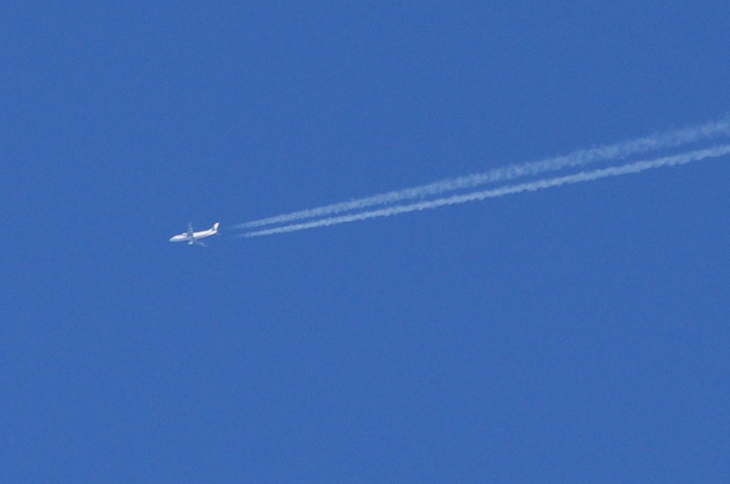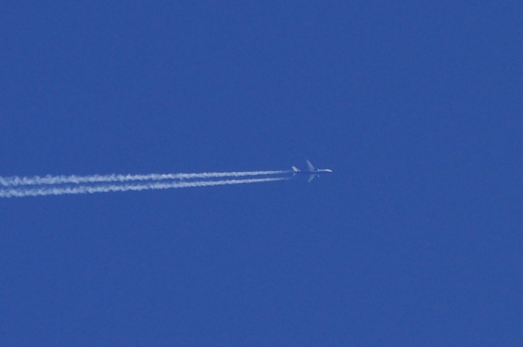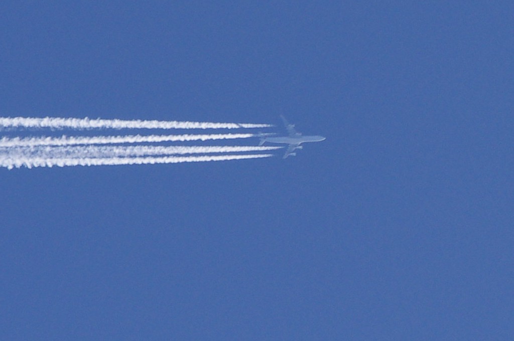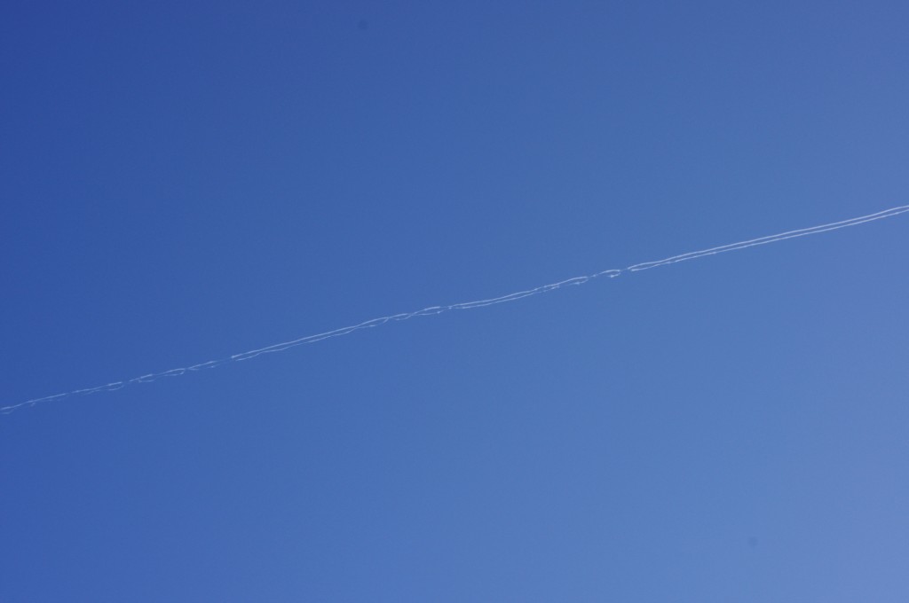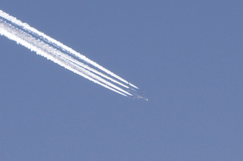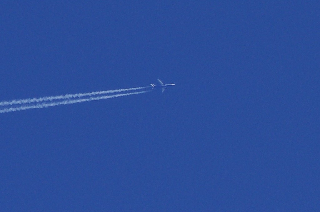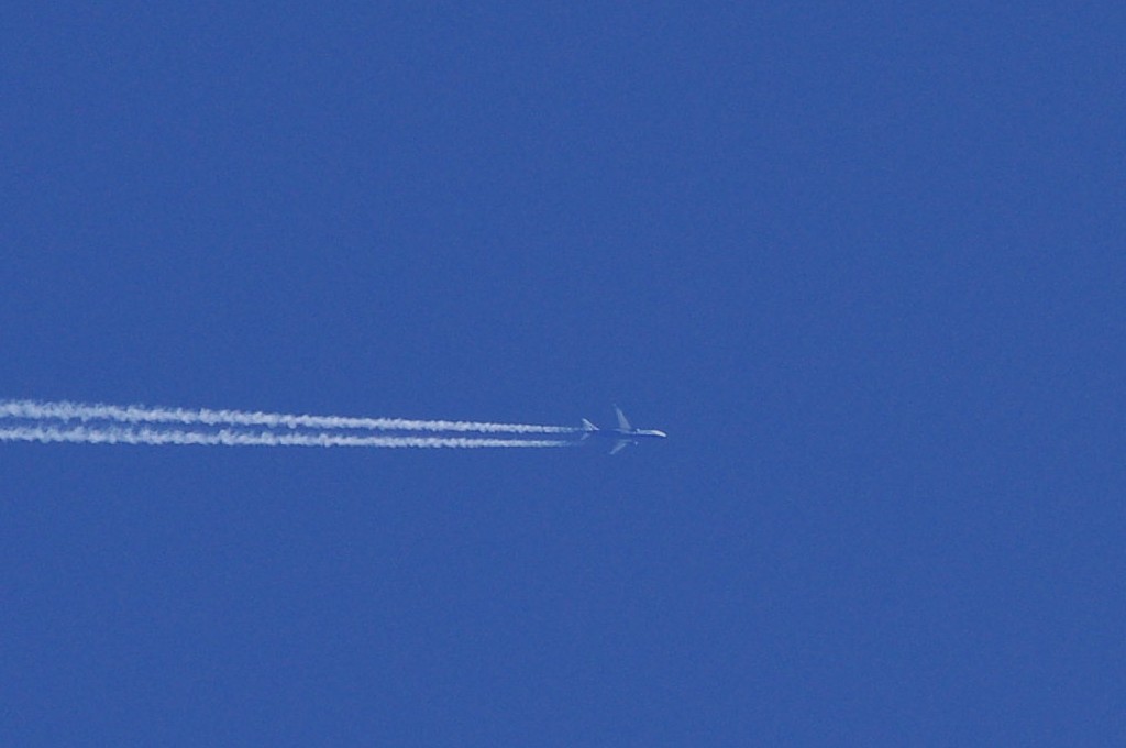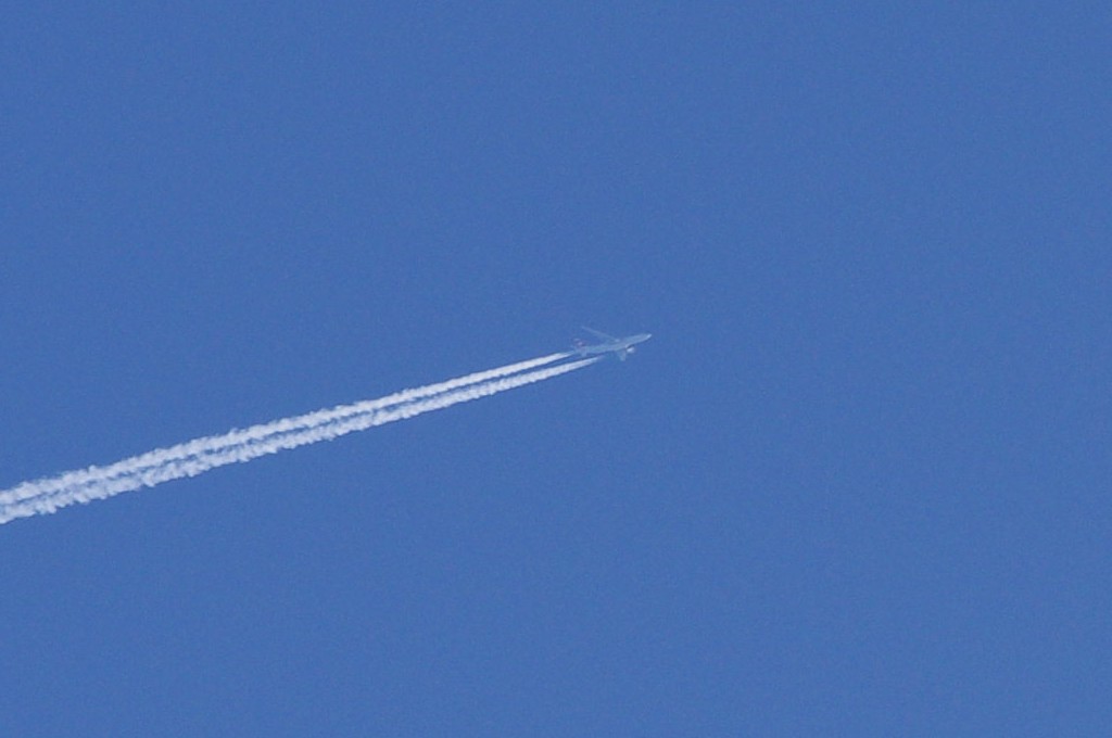 Prošla mi je točno iznad glave. Četveromotorna Ajkula. Smjer: SE. Količina kemikalija koju ispušta je upravo nevjerovatna. Trag se relativno brzo raspršio i stvorio finu bjelkastu kemijsku izmagljicu.