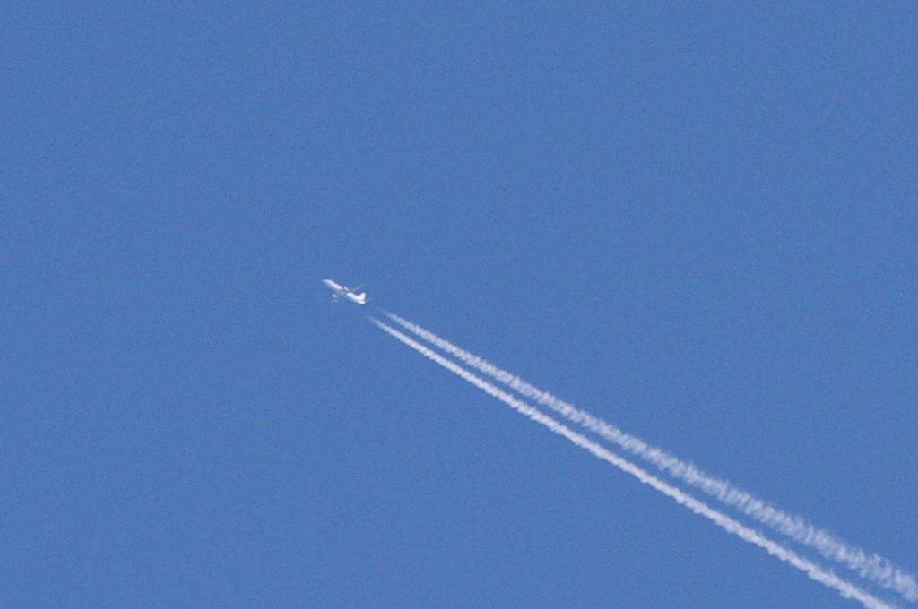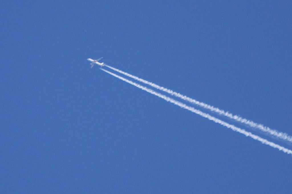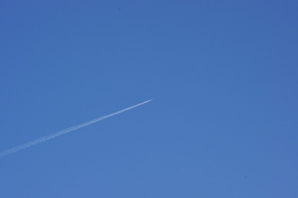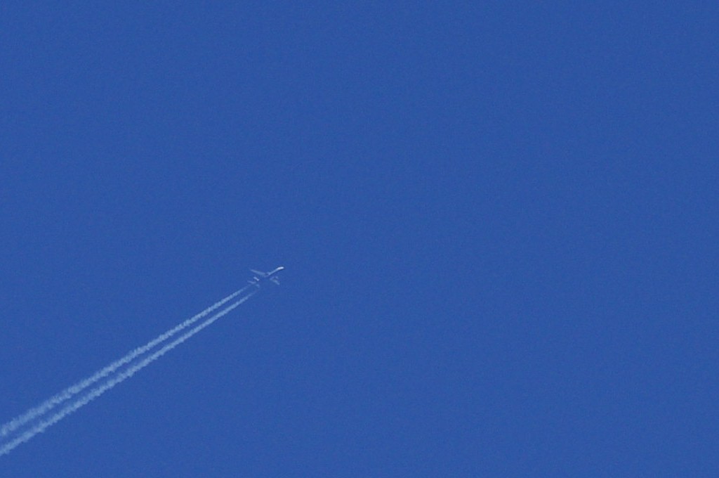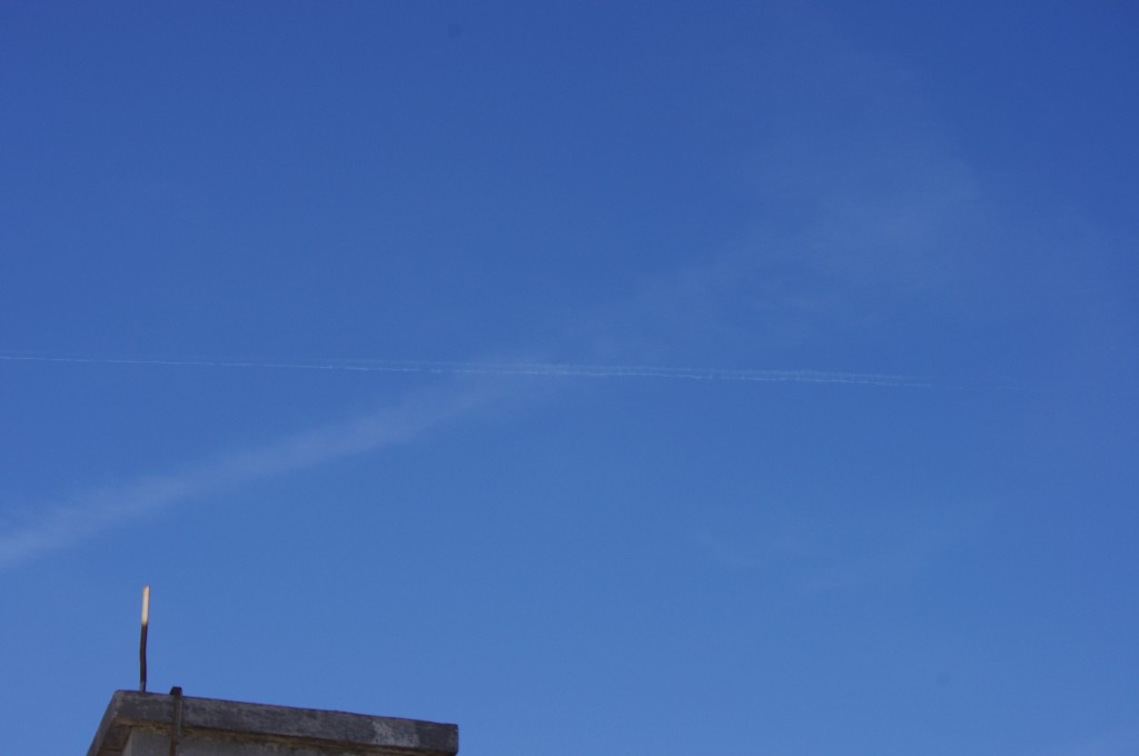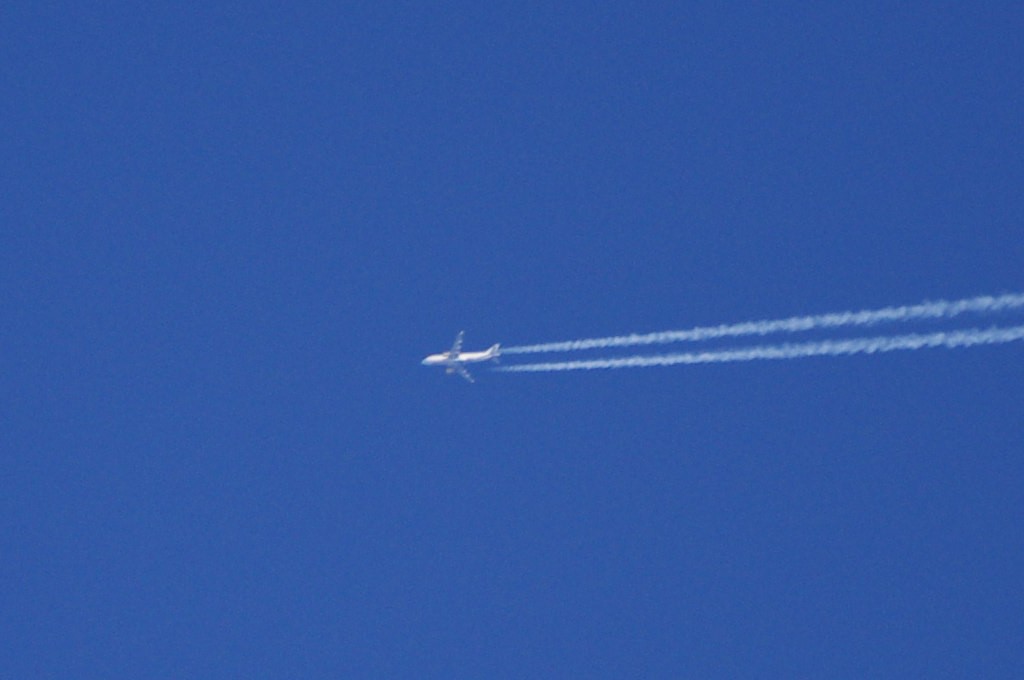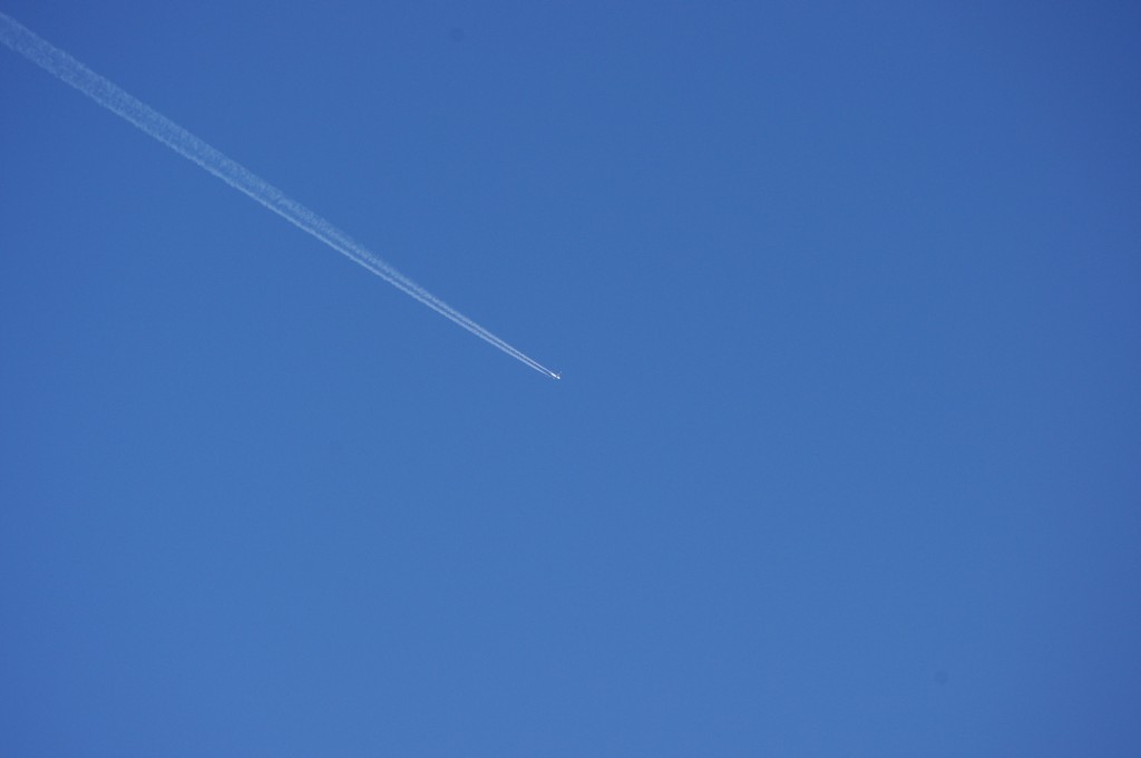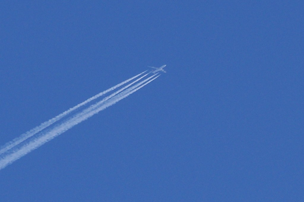 Prošla mi je točno iznad glave. Četveromotorna Ajkula. Smjer: SE. Količina kemikalija koju ispušta je upravo nevjerovatna. Trag se relativno brzo raspršio i stvorio finu bjelkastu kemijsku izmagljicu.