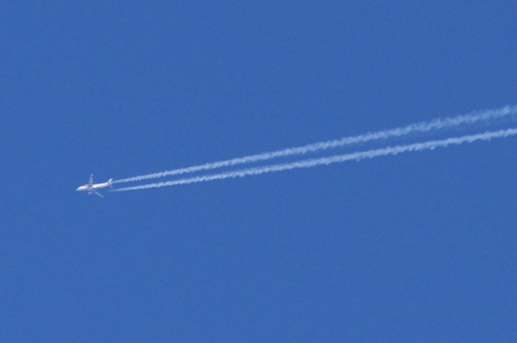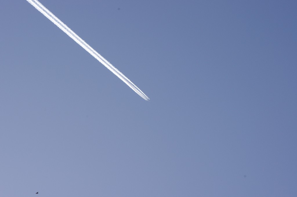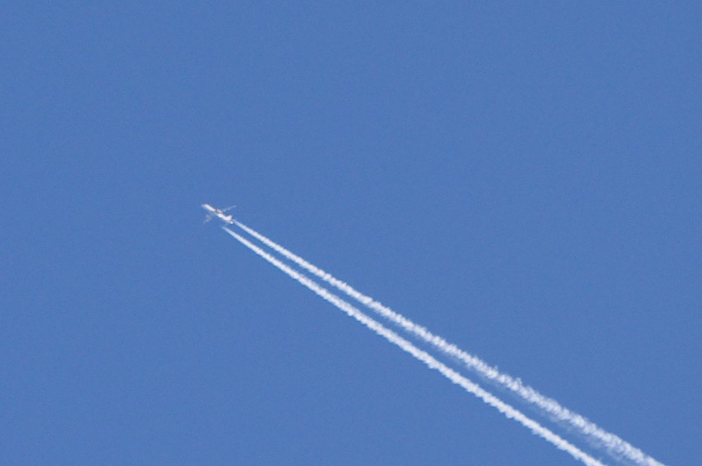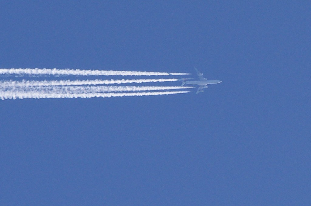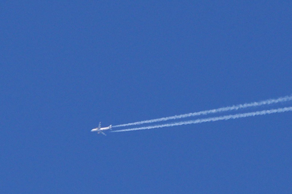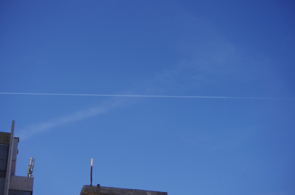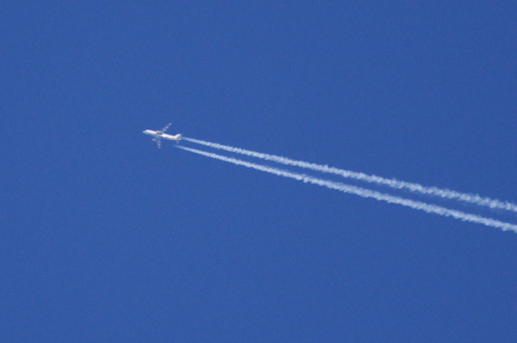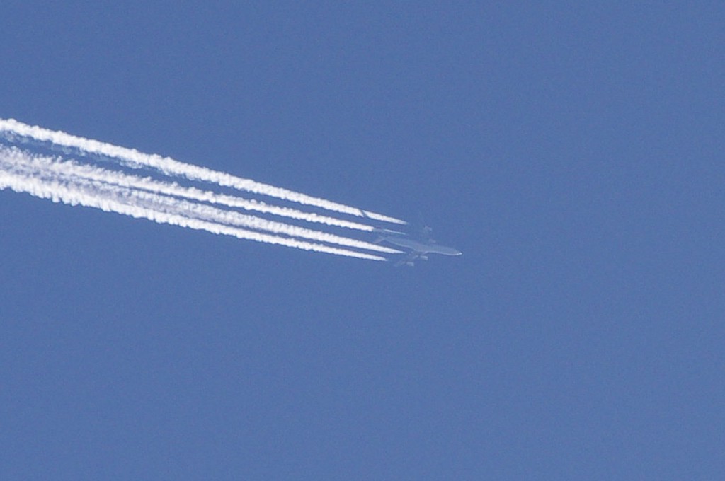Prošla mi je točno iznad glave. Četveromotorna Ajkula. Smjer: SE. Količina kemikalija koju ispušta je upravo nevjerovatna. Trag se relativno brzo raspršio i stvorio finu bjelkastu kemijsku izmagljicu.