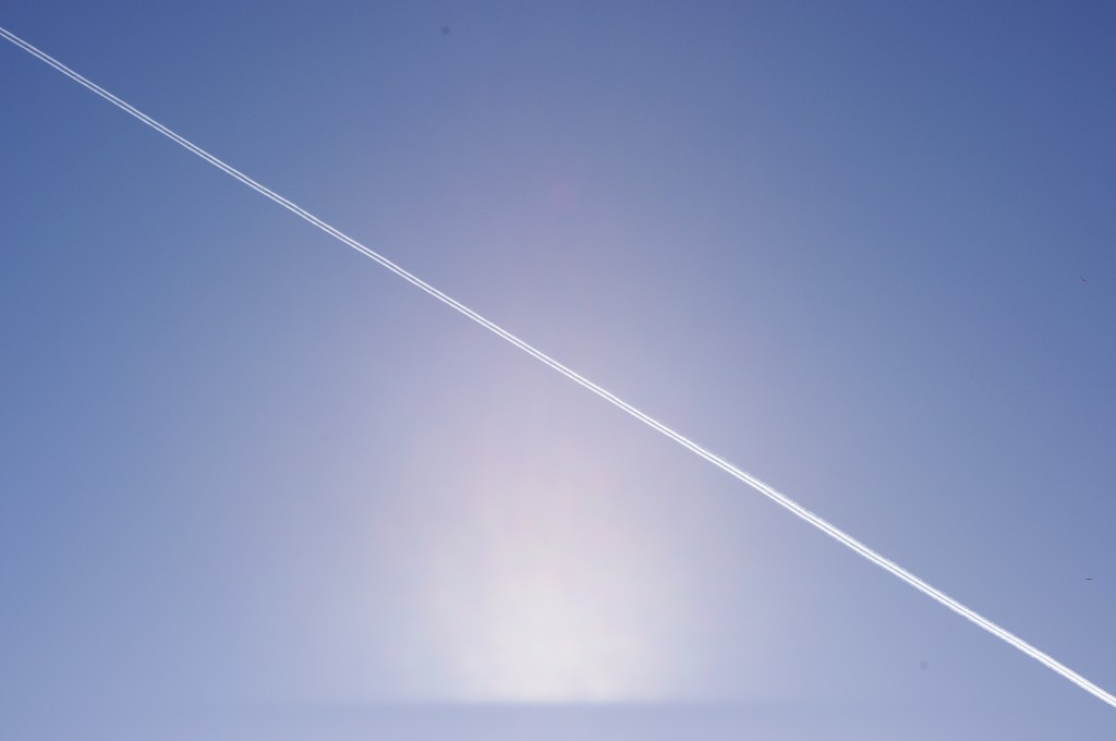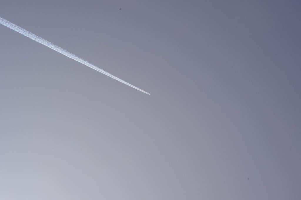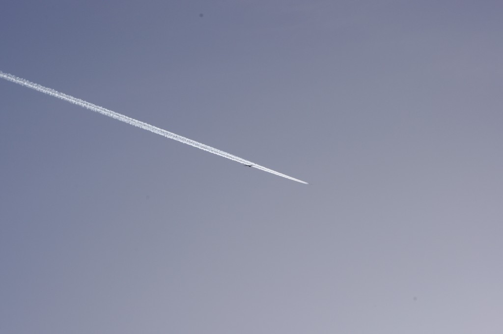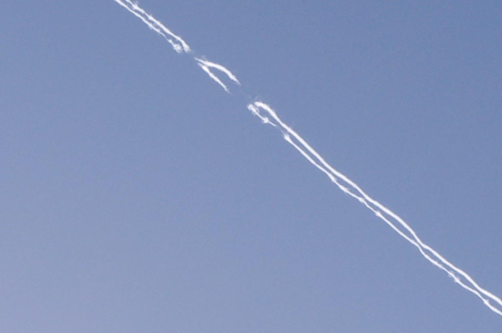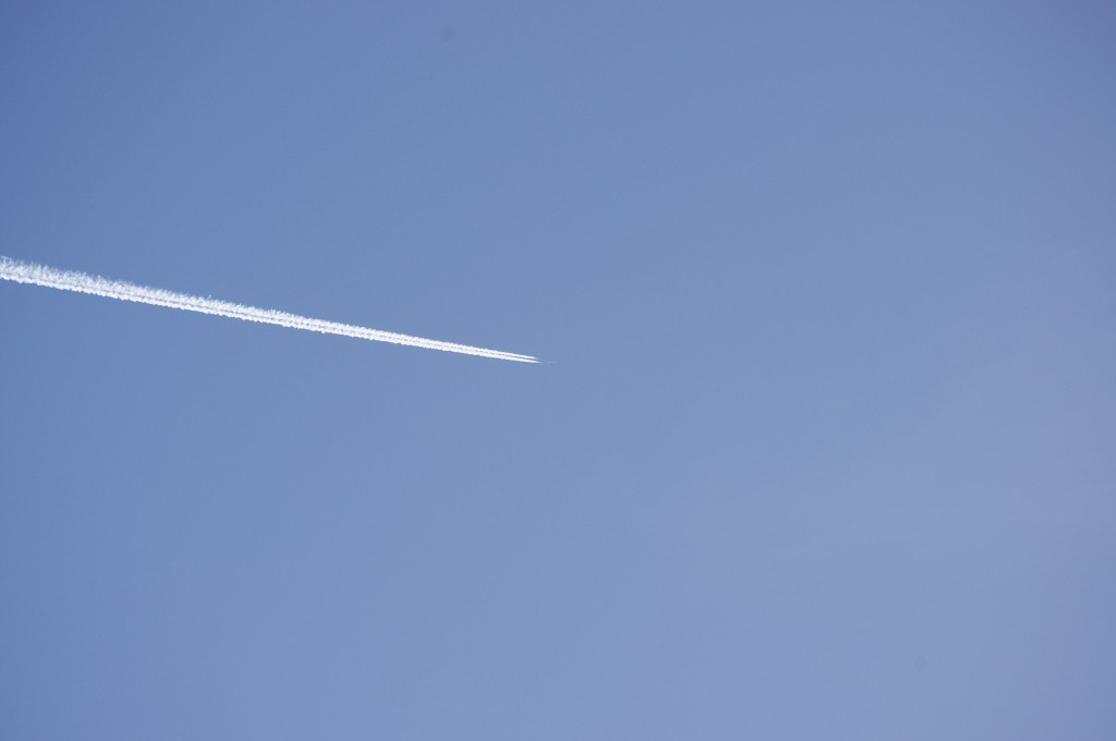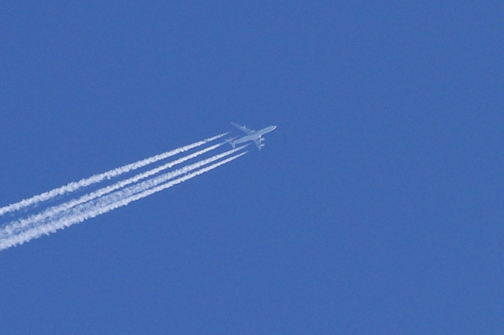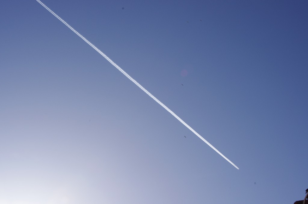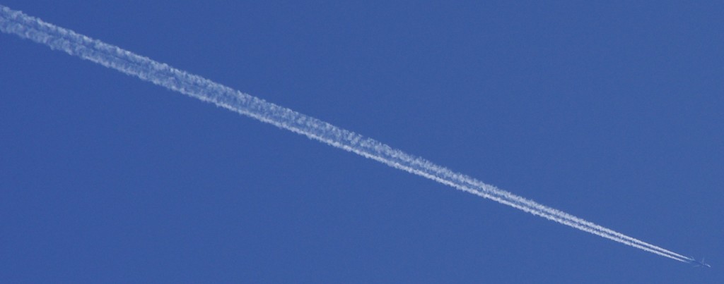 Prošla mi je točno iznad glave. Četveromotorna Ajkula. Smjer: SE. Količina kemikalija koju ispušta je upravo nevjerovatna. Trag se relativno brzo raspršio i stvorio finu bjelkastu kemijsku izmagljicu.