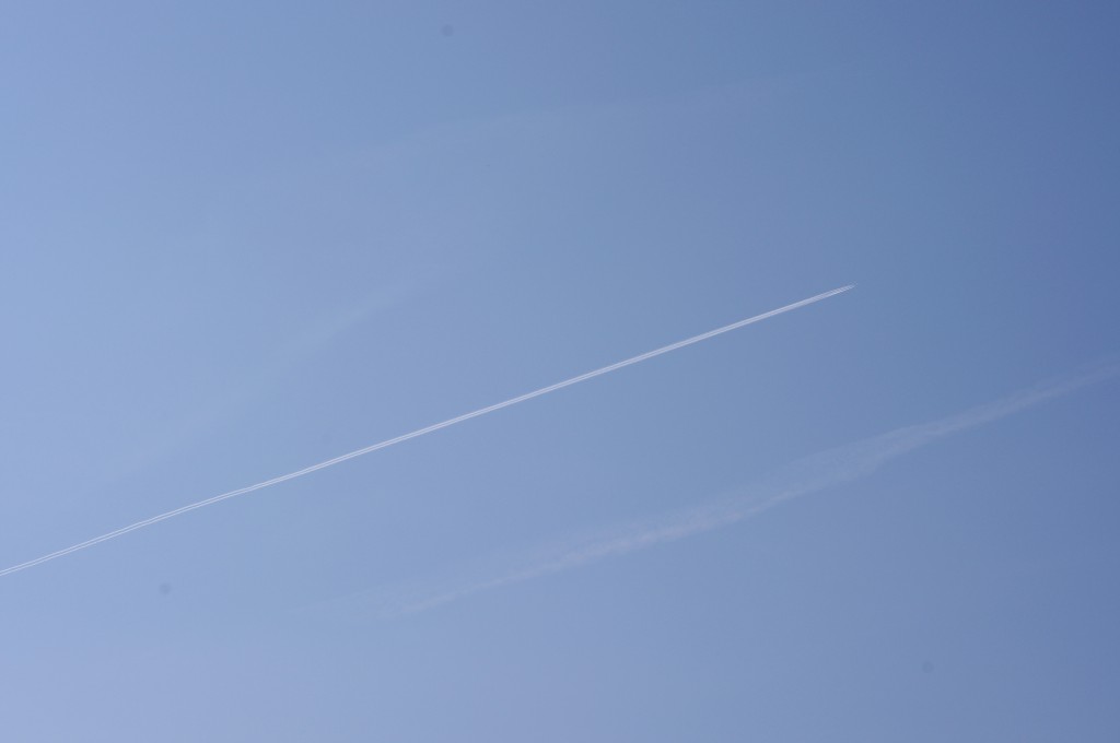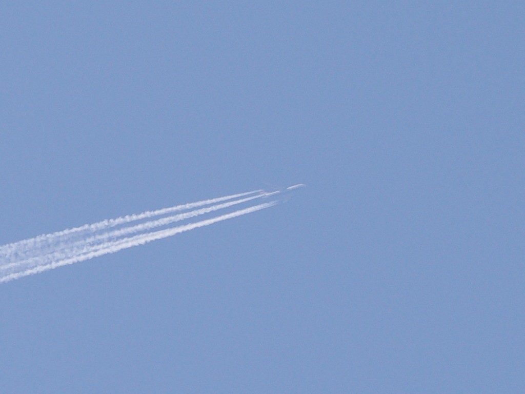 Svježi križ iznad glave. Očigledno da odmah 'nišane' kako zamagliti sunce. Na ostalim slikama se vidi još jedan svježi trag u smjeru NW, a i taman jedan 4-motorni prašinar ostavlja svoja govna za sobom. Na zadnjoj slici je razvidno da je sve što sliči na oblak u biti chemtrail i da je danas trebao biti vedar i 100% sunčan i bistar proljetni dan.
