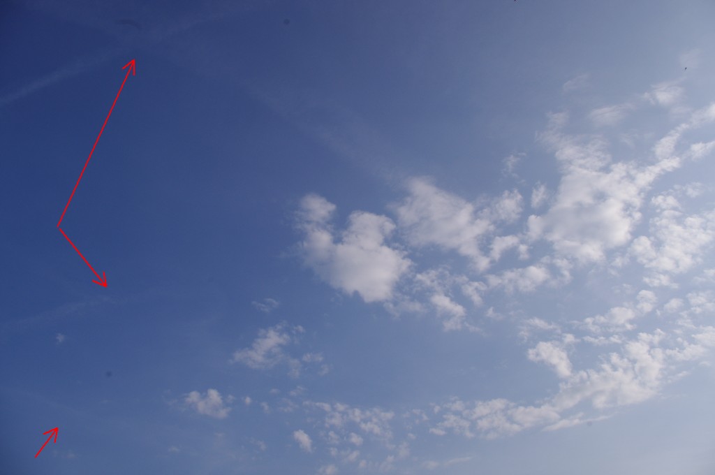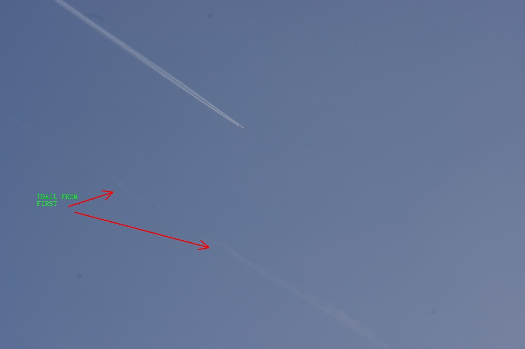 Odmah iza ovoga gore ide i talijanski prašinar. Po bojama mislim da je pripadnik ALITALIA. Fino prati trag ovoga gore. Zadnja slika pokazuje kako im se tragovi i nakon 10 minuta još naziru na horizontu, te kako se fino spajaju u fini kemijski pokrivač.