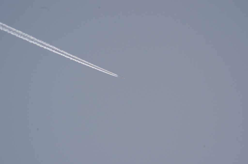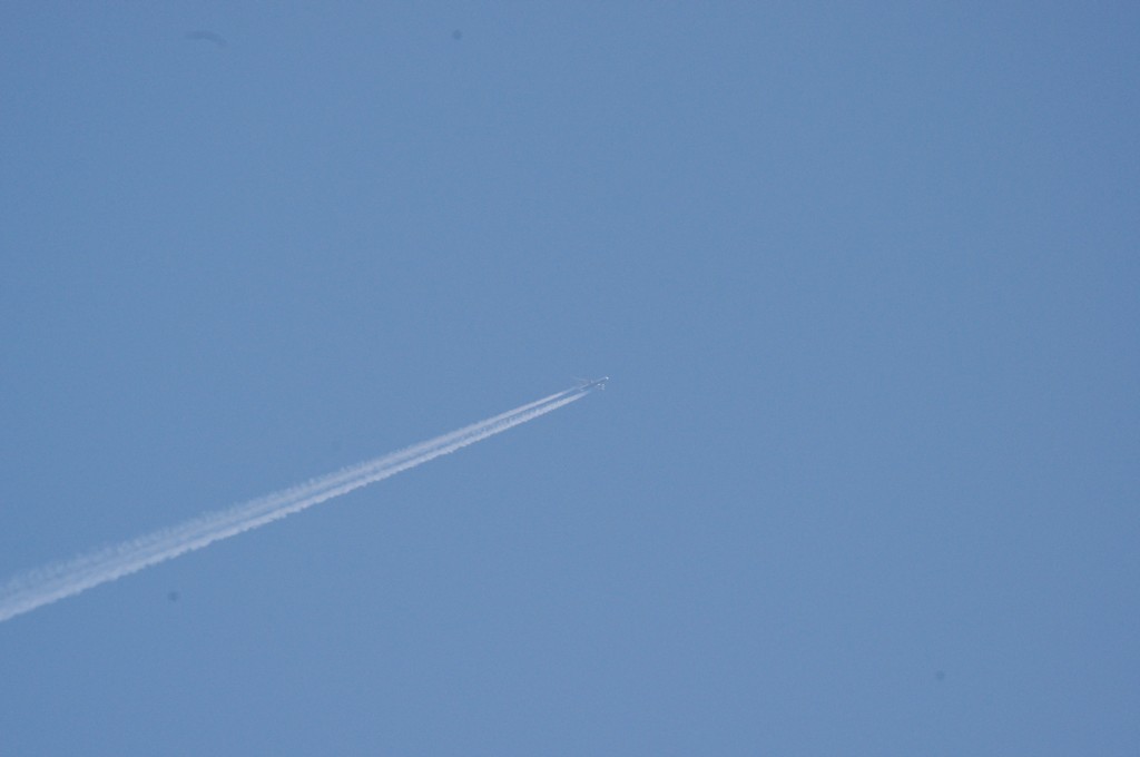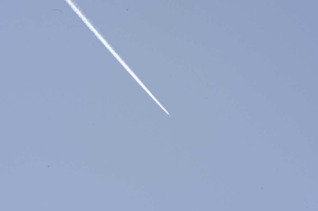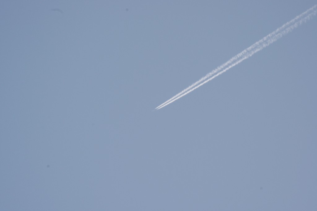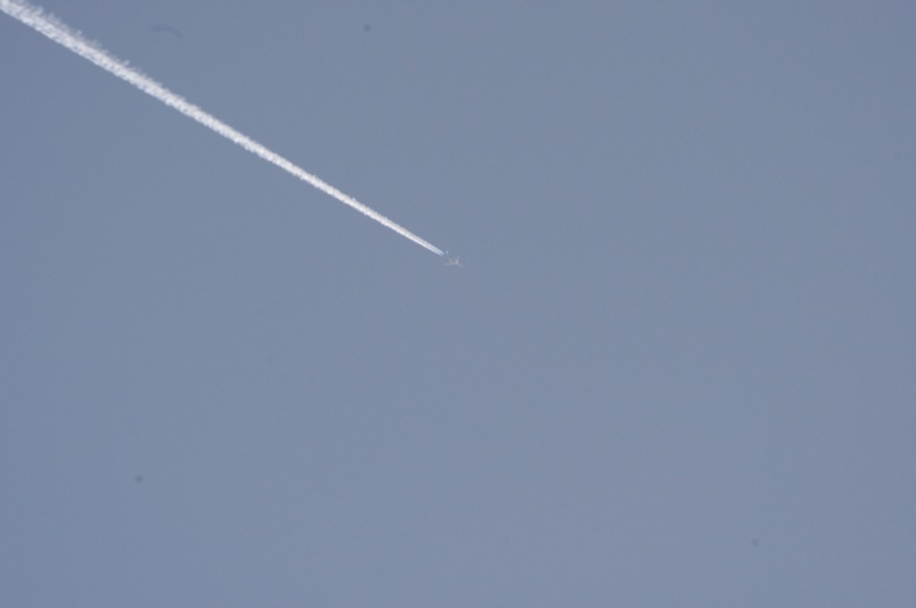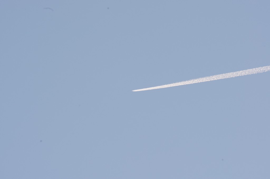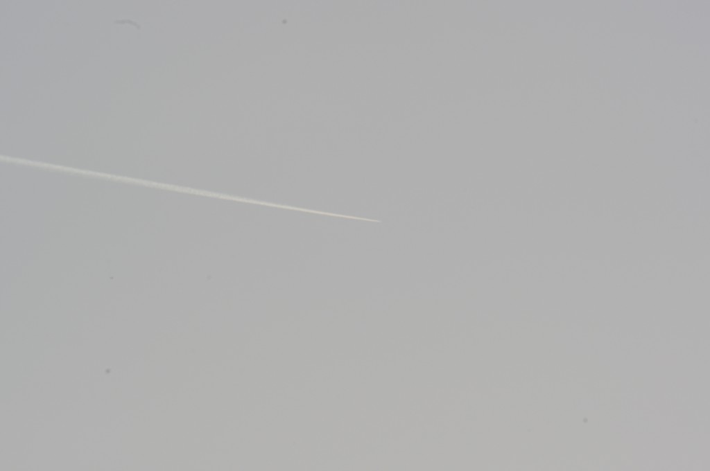 Smjer NW. Vrijeme 18.17h. Praši ga. Predaleko za kvalitetne snimke. Iako ove slike dokazuju da je mutež na nebu samo takav, puno neke izmaglice, kemija, nažalost većina ljudi je navikla na takvo što.