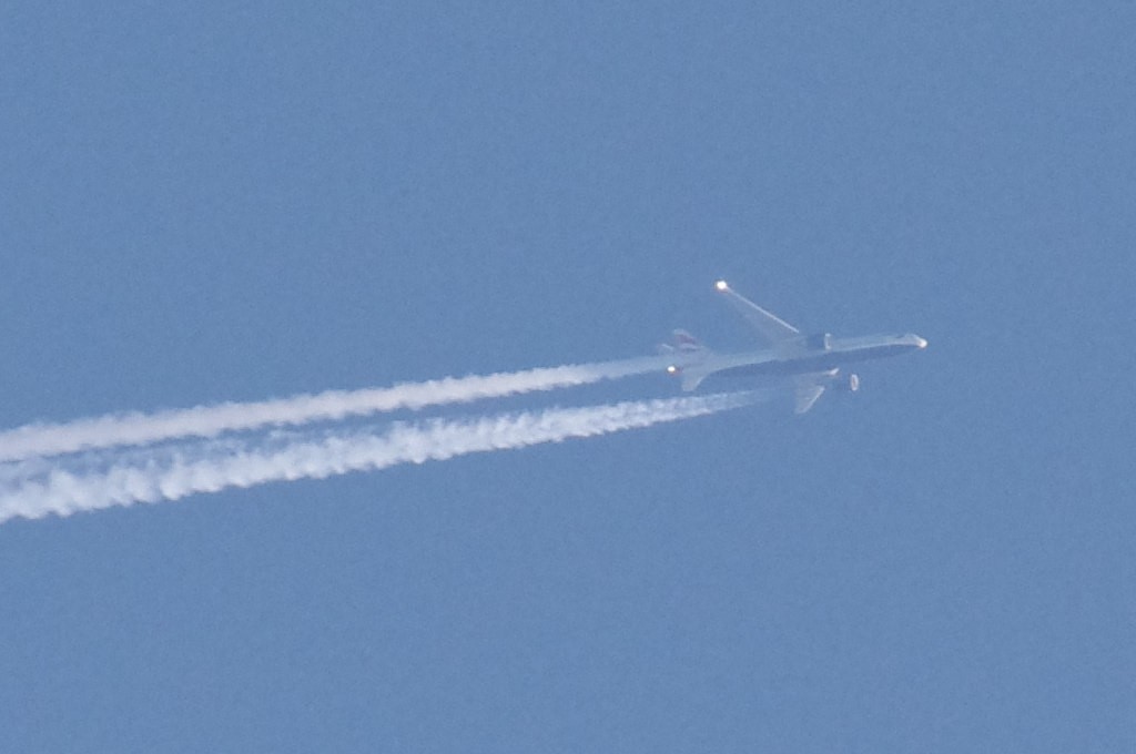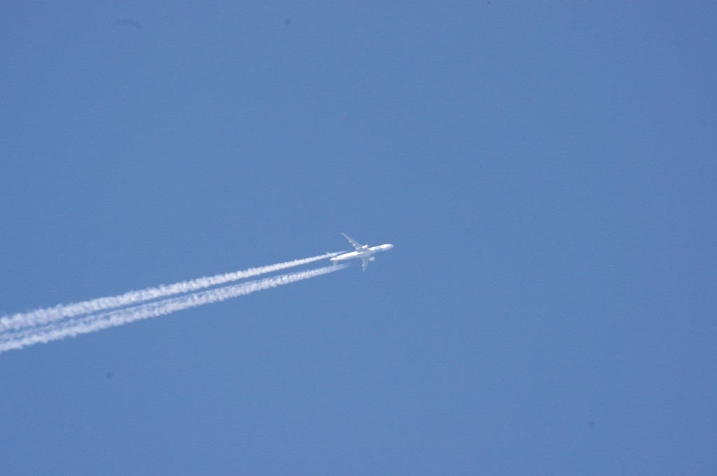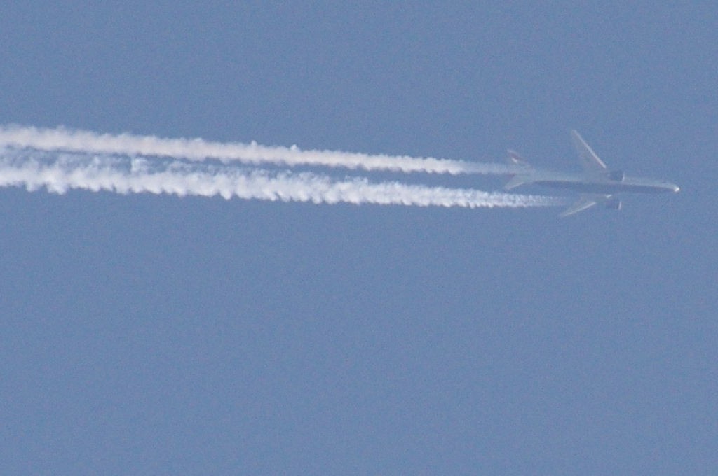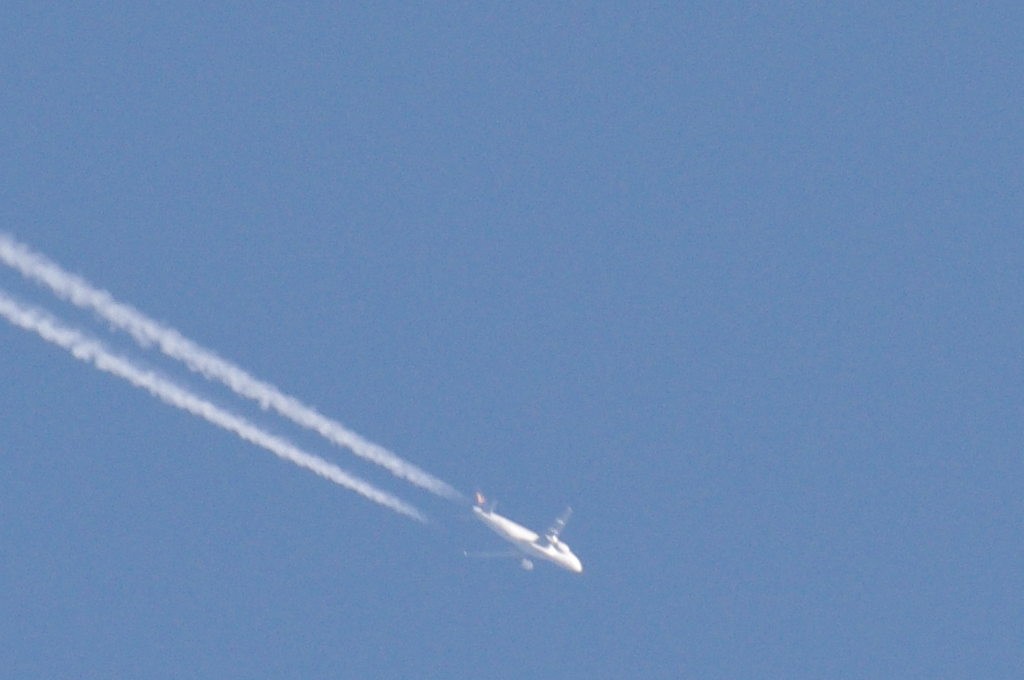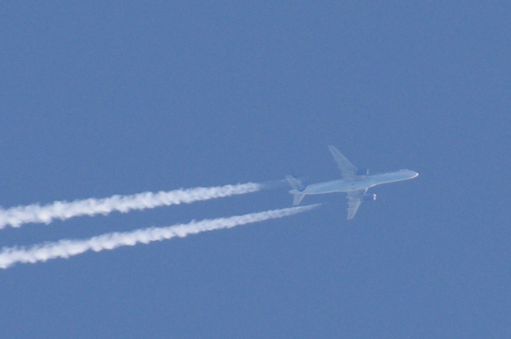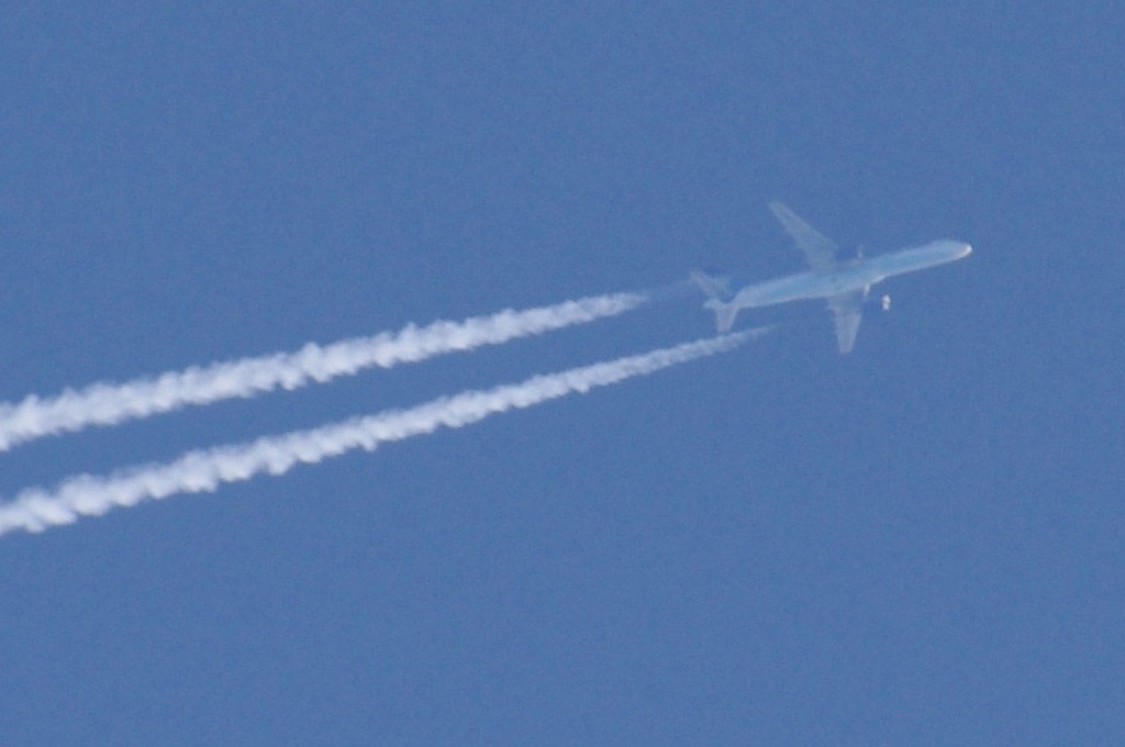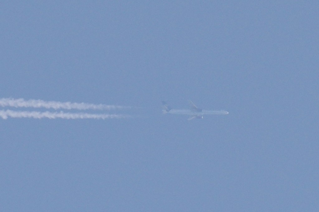 26.06.2010.g. update: ovo je Boeing 777-300ER, jedan od najvećih aviona u klasi, stoga je razumljivo da sam se prevario glede visine jer se učinio ogroman. Po odokativnoj procjeni, ovaj avion leti iznad 10km.