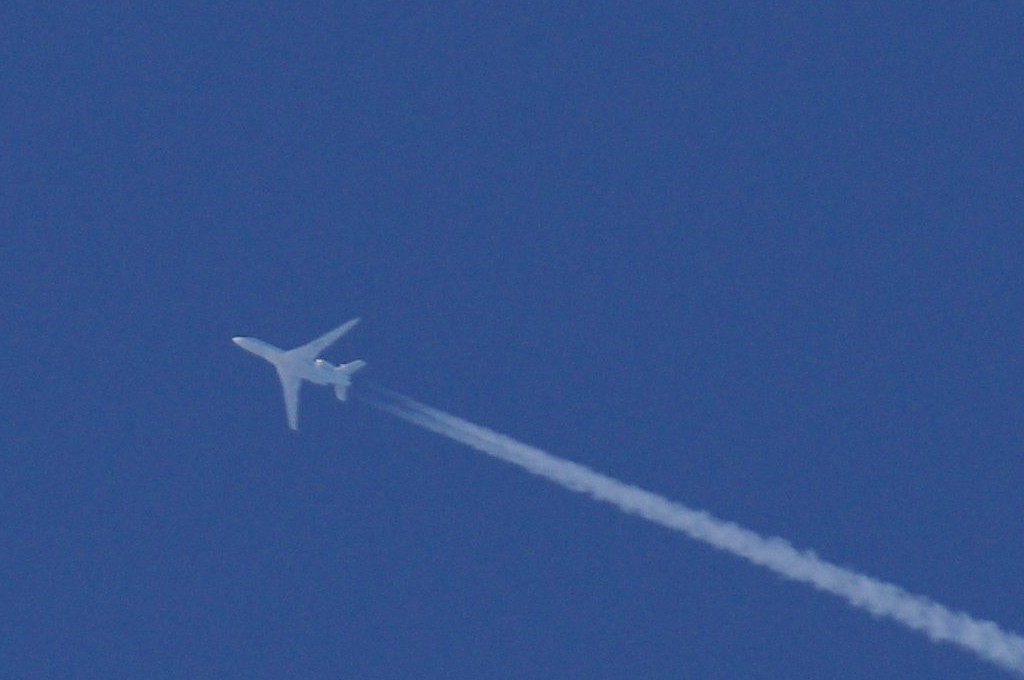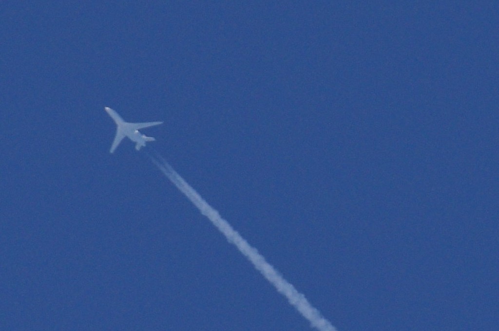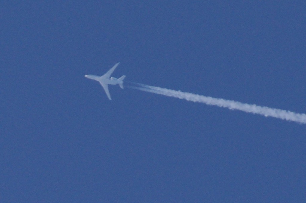 Smjer NW->SE. Vrijeme 18.50h. UNLEADED/BEZOLOVNI = avion ne pušta ama baš nikakav trag iza sebe. Od milja ih zovem bezolovni, iako je ovo u biti NORMALNI ispuh aviona. Jer je vrijeme relativno toplo (na površini Zemlje je oko 20C), a visina na kojoj leti ovaj avion ne može biti veća od 1000-1500m, a po definiciji stvaranja kondenzacijskih tragova, kondenzacija se stvara tek iznad 8km i to na -40C, stoga je i normalno da nema nikakva traga iz aviona. Ovo je tek TREĆI put da 'hvatam' ove tzv. bezolovne avione i moram priznati da ih je VRLO TEŠKO uhvatiti kamerom, iako su to 'normalni' avioni, tj. avioni koji ne ispuštaju kemikalije.