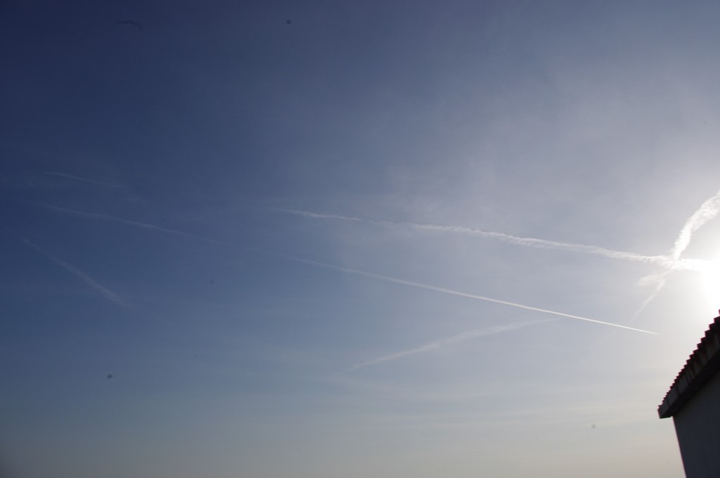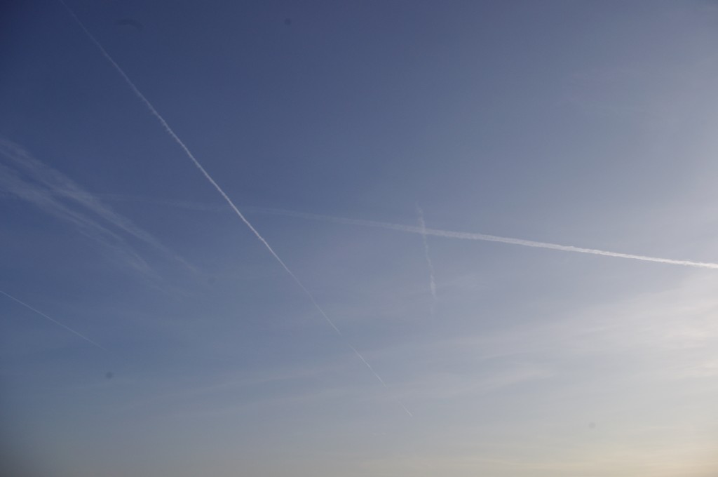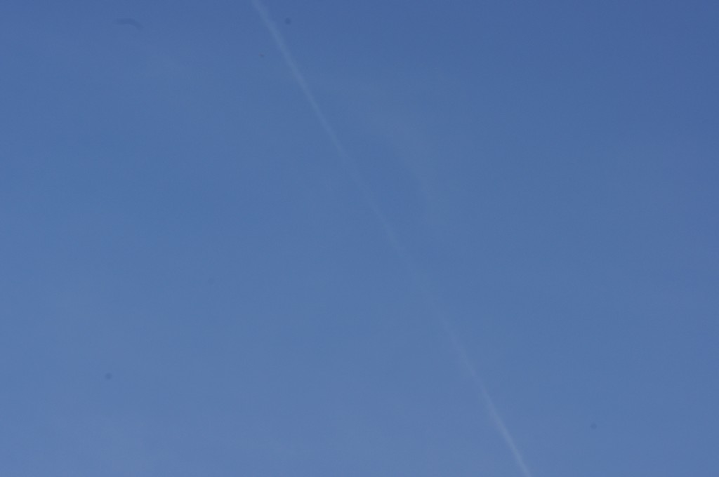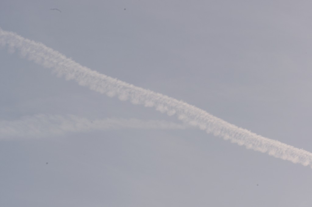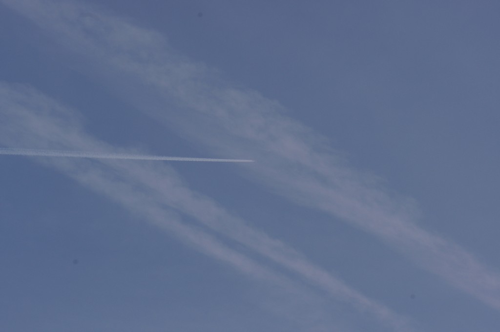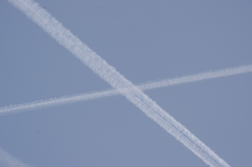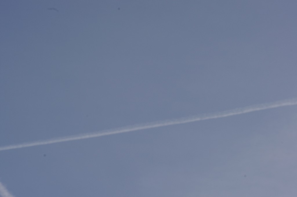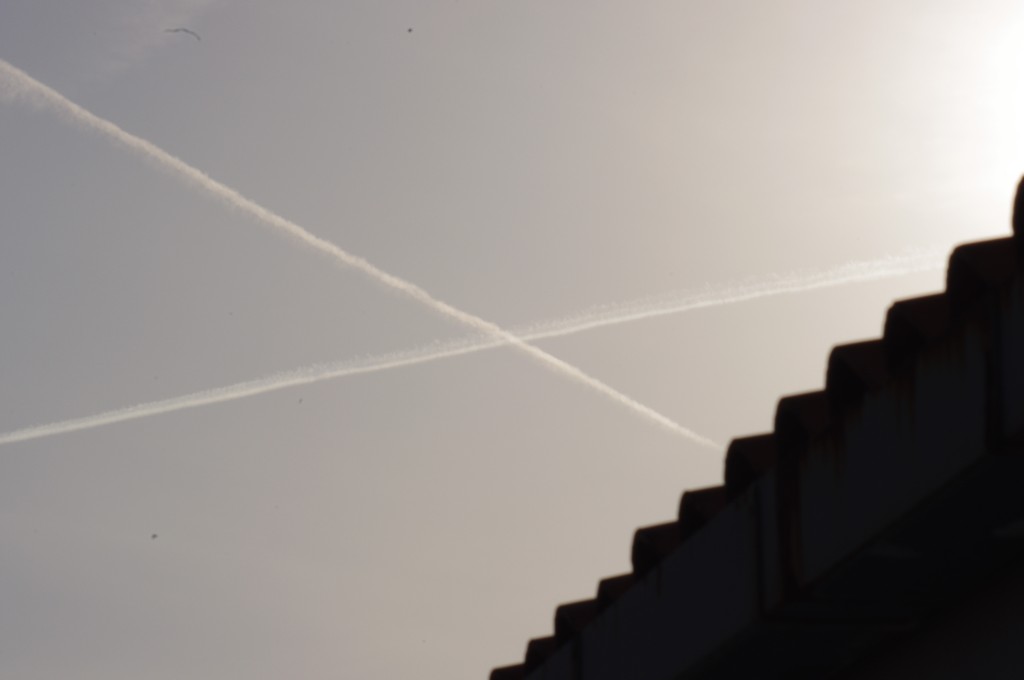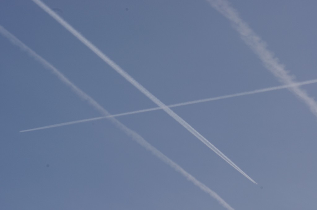 Ovo je moj dosada najbolje snimljeni križ uživo. Svaka im čast, ovi nisu pičkice, prošli su za dlaku jedan od drugoga unutar 1-2sekunde. Ova četiri traga: 3 paralelna od istoka k zapadu i ovaj križni od sjevera prema jugu će ostati do kraja dana i lagano se rasipati i potiho padati po nama, ubijajući nas jednog po jednog. Mamicu vam prašinarsku, sada sam vas uhvatio u nedjelu.