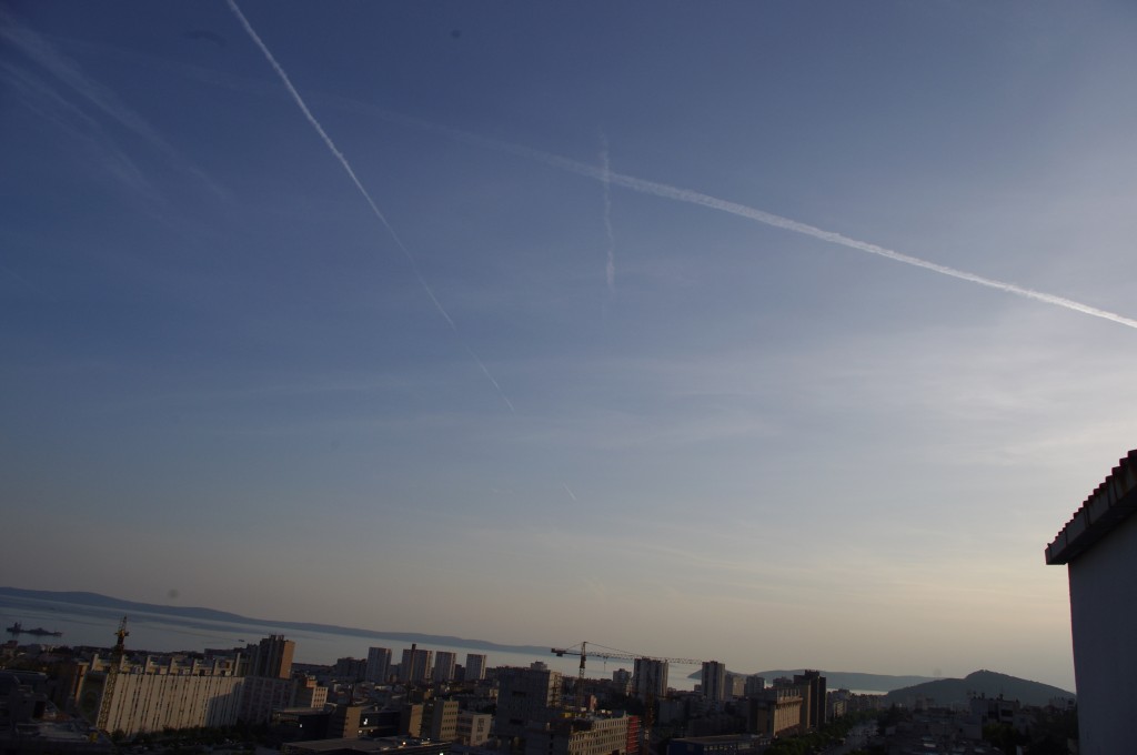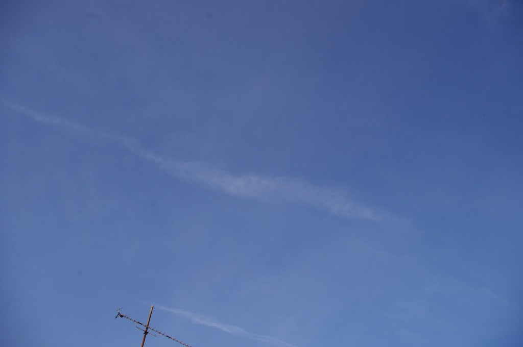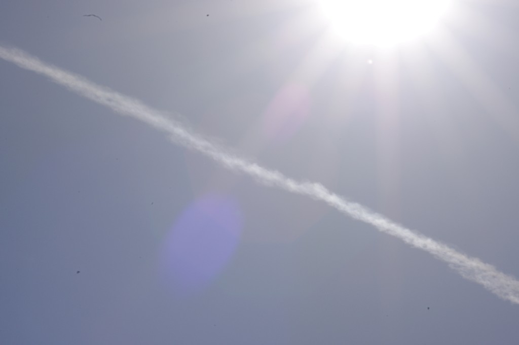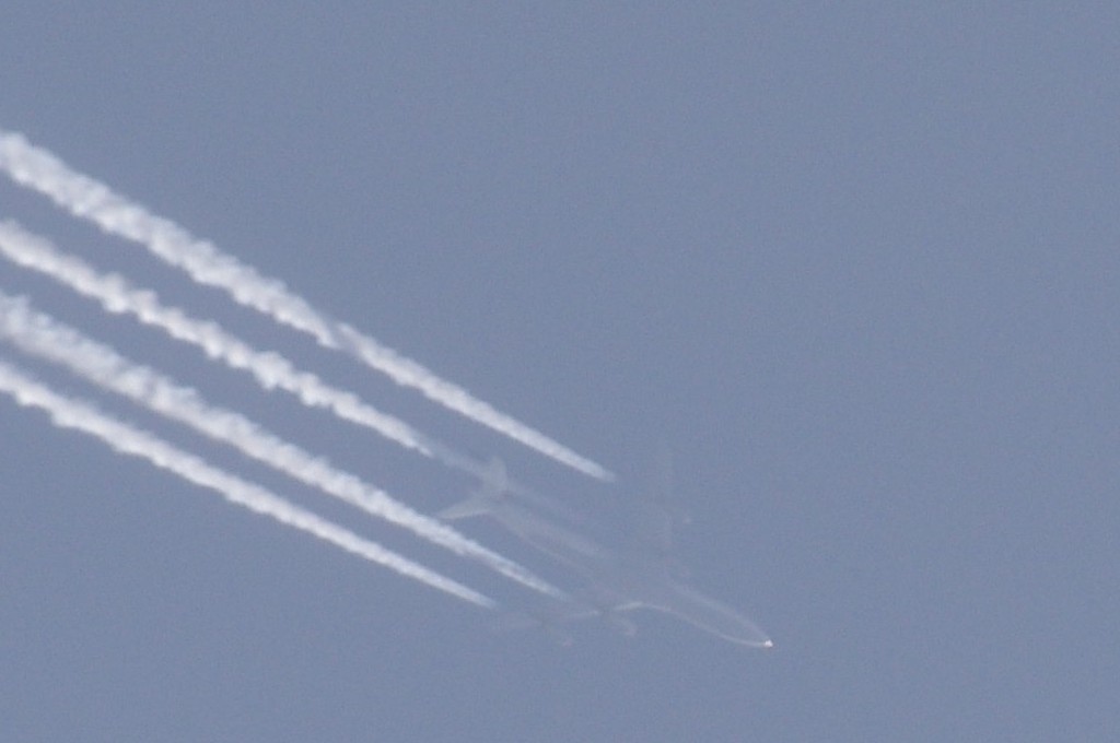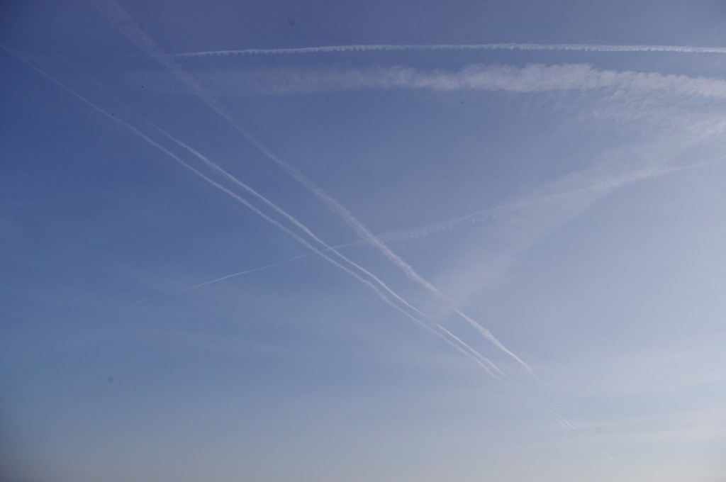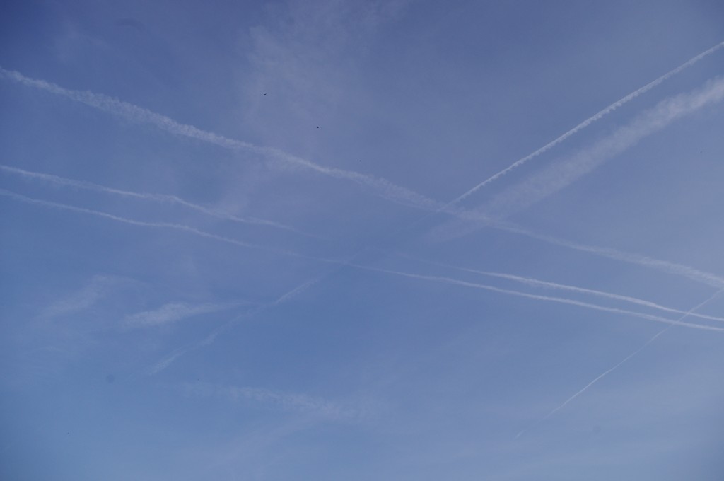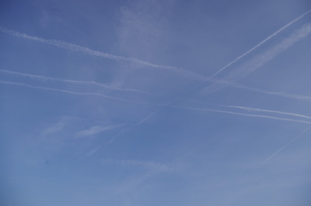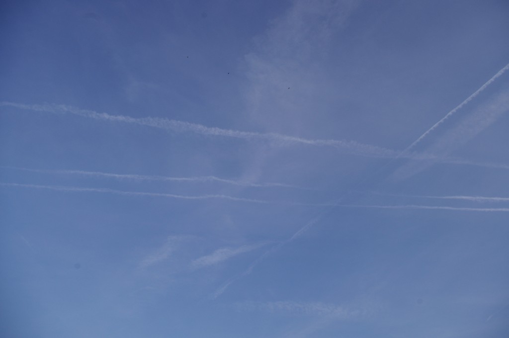 Ovo je moj dosada najbolje snimljeni križ uživo. Svaka im čast, ovi nisu pičkice, prošli su za dlaku jedan od drugoga unutar 1-2sekunde. Ova četiri traga: 3 paralelna od istoka k zapadu i ovaj križni od sjevera prema jugu će ostati do kraja dana i lagano se rasipati i potiho padati po nama, ubijajući nas jednog po jednog. Mamicu vam prašinarsku, sada sam vas uhvatio u nedjelu.
