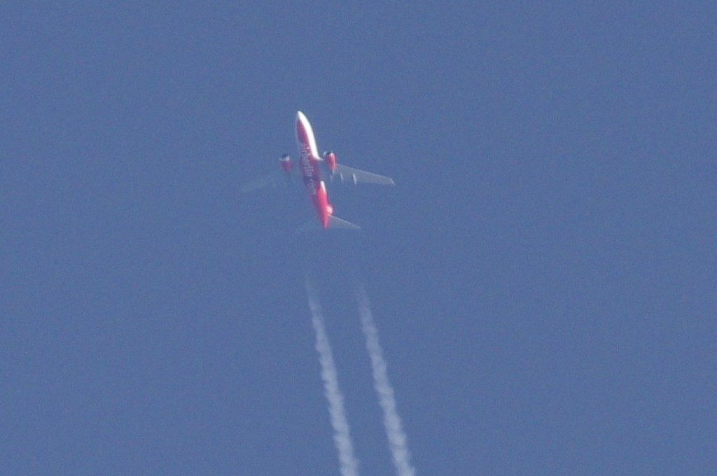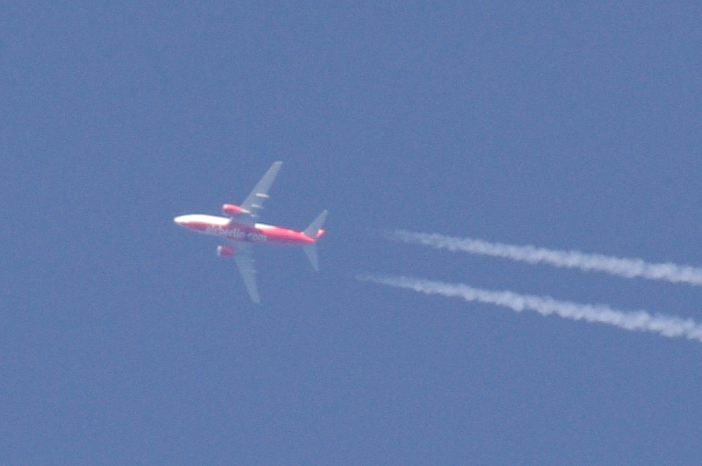 Smjer S->N. Vrijeme 18.26h. Prvi put ga vidim iznad Splita, zahvaljujući natpisu lako sam ga identificirao: pripadnik AirBerlin kompanije. Prašinar, u to nema sumnje.