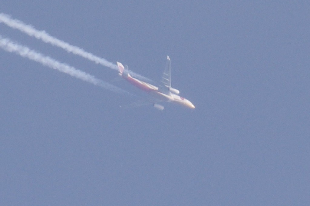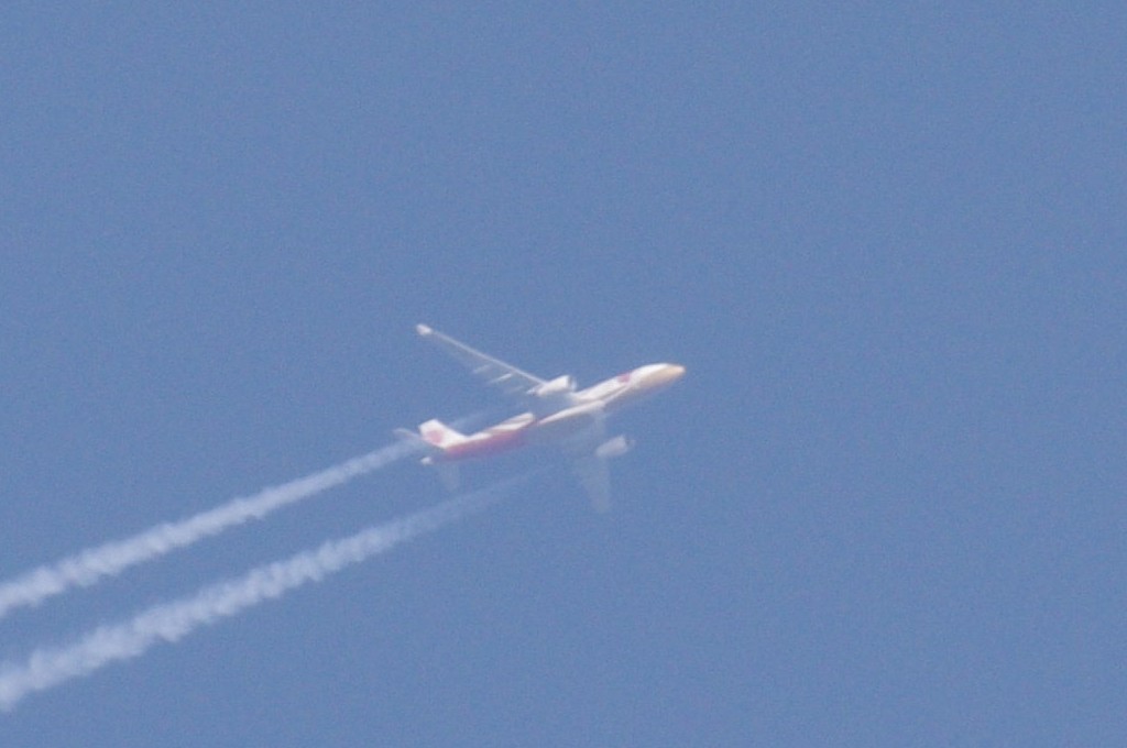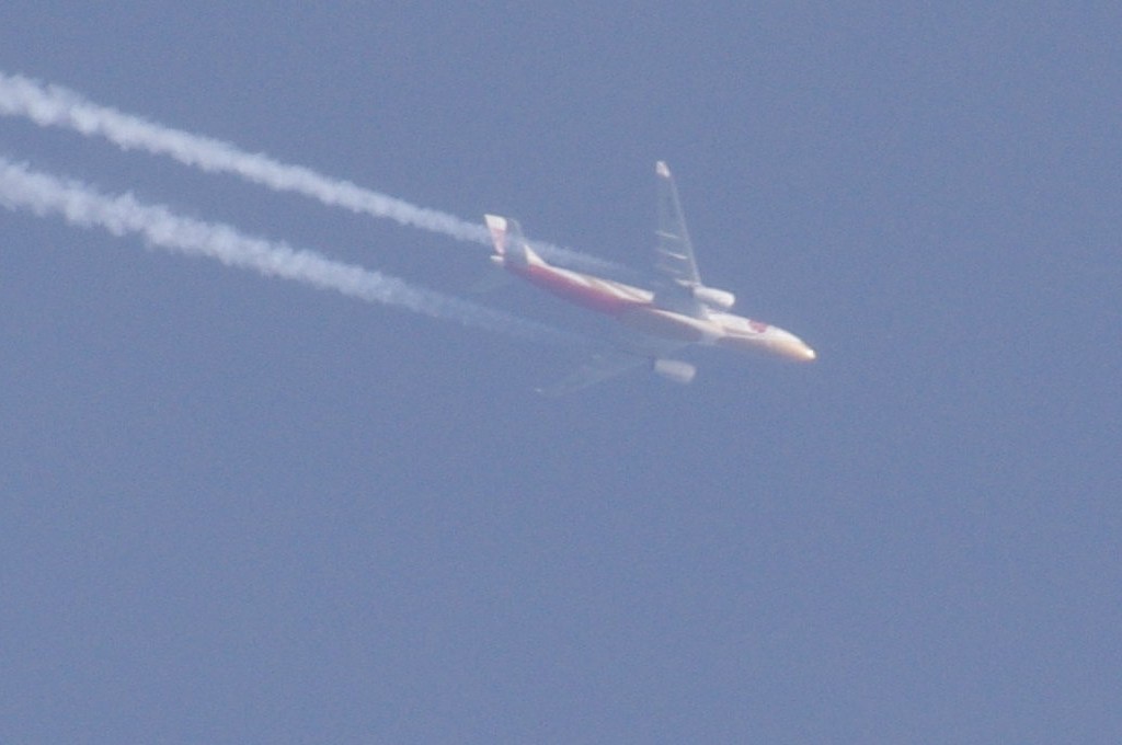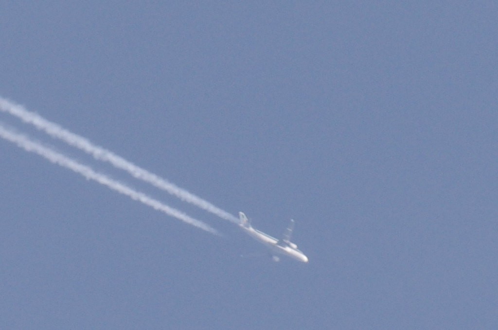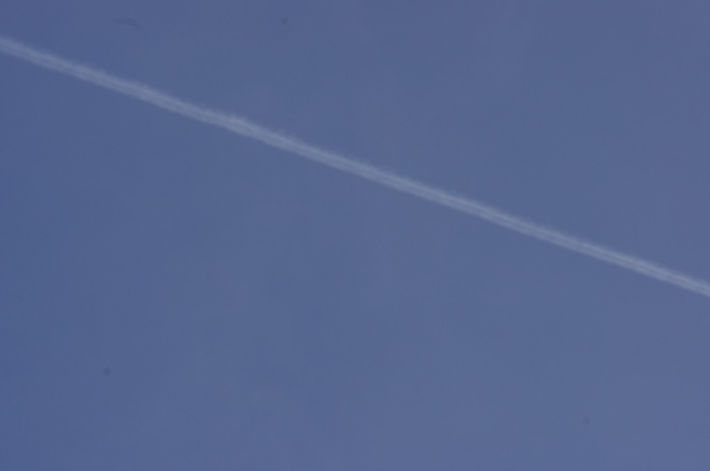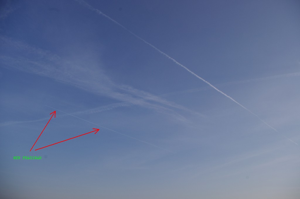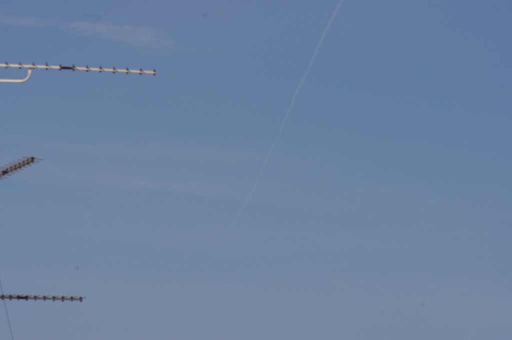 Smjer SE->NW. Vrijeme 18.53h. Odmah iza rusa ide i ovaj govnar. Pretpostavljam da je isto iz AEROFLOTA, ali teško je razlučiti. Snimke su loše jer je nebo jednostavno ZASIĆENO kemikalijama. Na slikama se jasno vidi kako namjerno siječe tragove od prošlih prašinara.