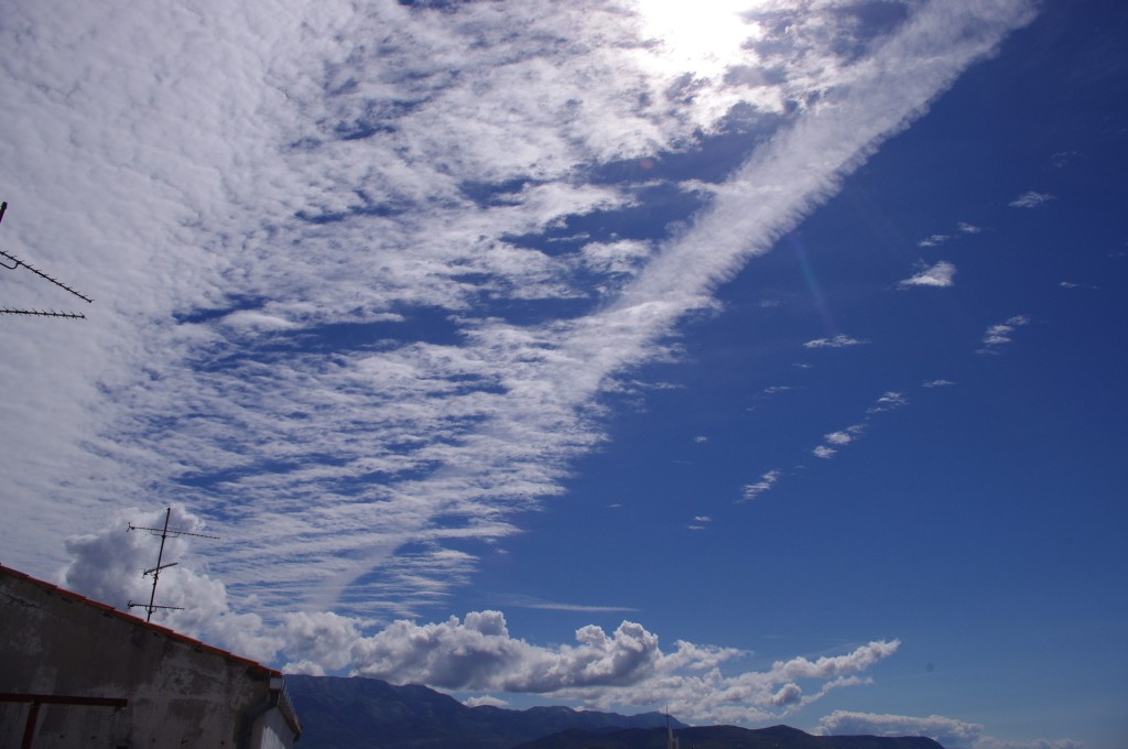 S sjevera se primiče fronta fino struktuiranih kemijskih oblaka i prijeti inače sunčanom danu, a taman na granici oblaka prošao je prašinar i ostavio za sobom debeli trag kemije. Do kraja dana ovi umjetni oblaci su prekrili cijelo nebo. Vruće i sparno vrijeme s ovim bijelim kemijskim oblacima je nešto najgore na svijetu. I otporniji na vremenske prilike se osjećaju loše, a kamoli ne stari i bolesni ljudi. Inače primjetio sam da je unazad zadnjih par mjeseci dosta ljudi koji su inače bili kronični bolesnici iz moje 'šire' okoline umrlo, a moje mišljenje je da je glavni uzrok zaprašivanje chemtrailovima.