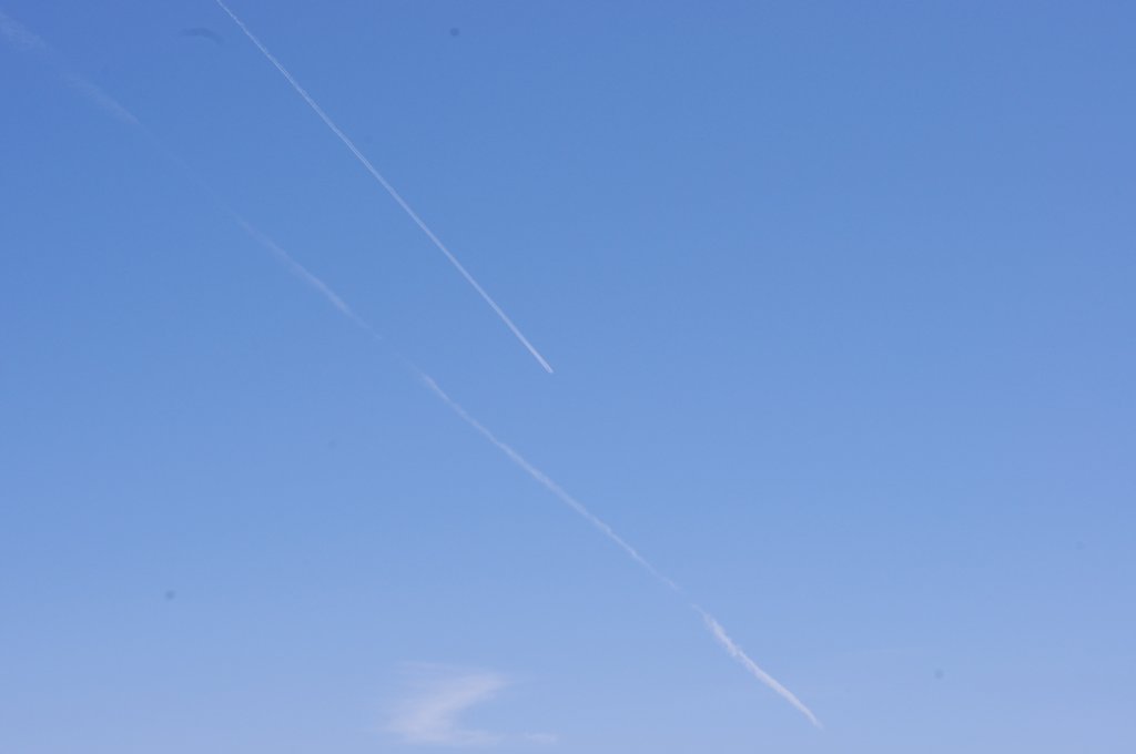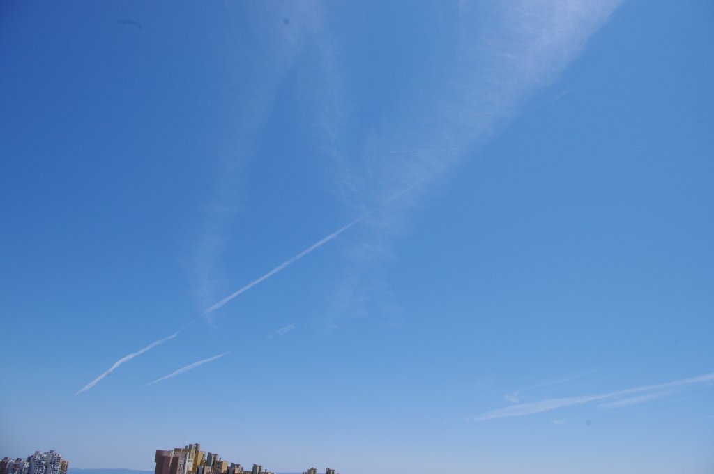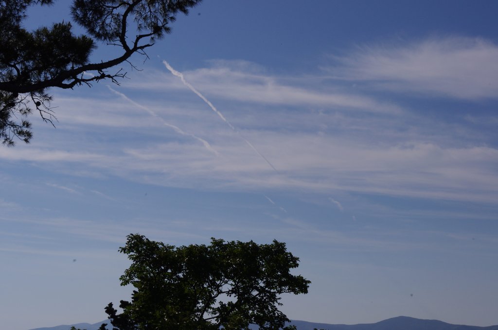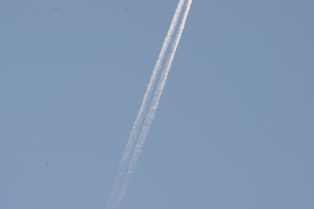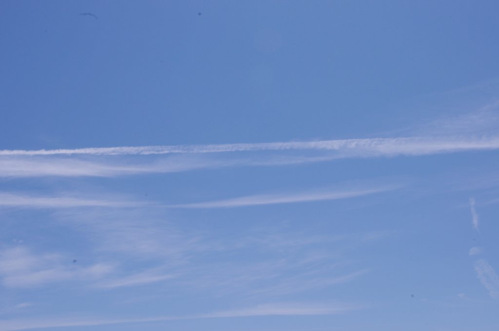 Ovo je na prvi pogled bio rutinski dan, ali kasnijom analizom slika uočio sam kako DVA aviona iza sebe ostavljaju tanki trag iz repa. Dok se za trag iz motora još može diskutirati jeli contrail (kondenzacijski trag) ili chemtrail (kemijski trag), za trag iz repa aviona NEMA sumnje da se radi o chemtrail-u. Dapače ja zastupam tezu da je trag iz repa aviona odnosno iz tzv. APU jedinice uglavnom biološkog podrijetla usmjeren protiv ljudi i bio-svijeta (paraziti, bakterije i ostala gamad) jer je ispuh APU jedinice relativno daleko od motora pa ispušteni materijal ne mora biti toliko otporan na temperature.