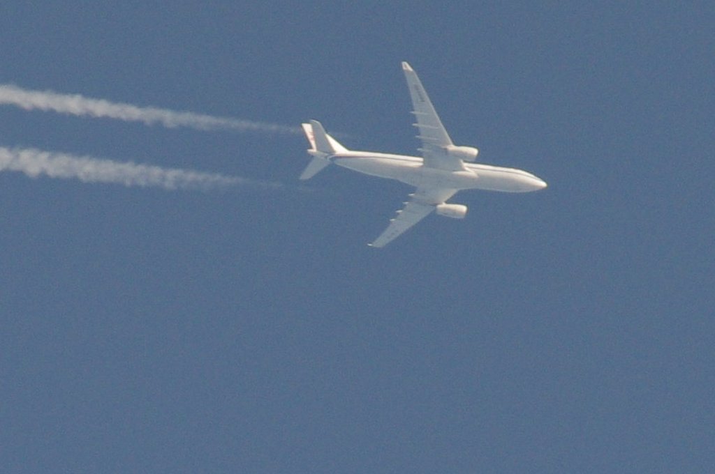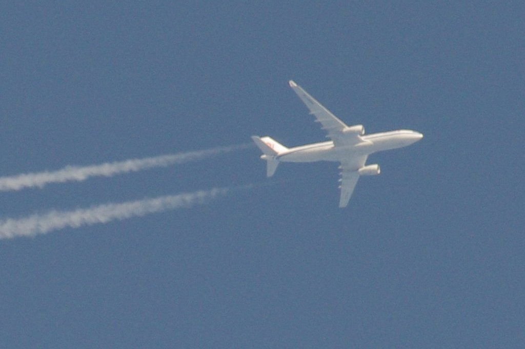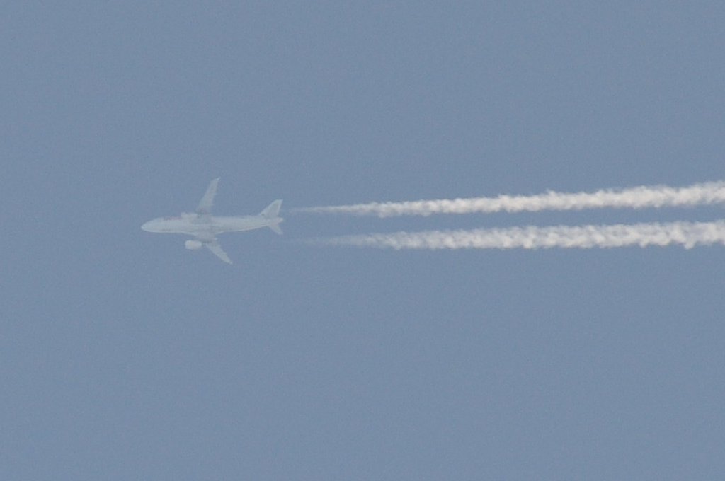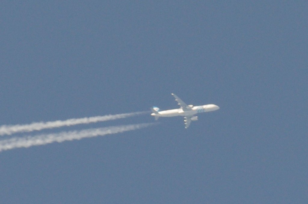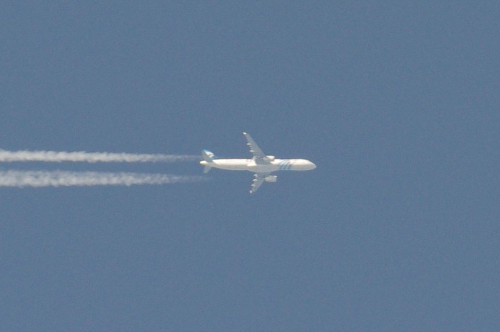 Smjer: N->S. Vrijeme: 17.50h. Airbus A330 Egypat Air kompanije. Najvjerovatnije se radi o avionu s call-signom: SU-GCE. Prvo je napravio križ s još jednim avionom negdje iznad Kozjaka. Kad se približio Splitu počeo je ispuštati trag iz repa odnosno iz APU jedinice. Kad mi je bio točno iznad glave ovaj trag se nije vidio. Moguće je da je trag uočljiv samo pod određenim kutom, ili je palio/gasio bio-chem mlaznice. Interesantno kako je uočavanje traga iz repa vrlo rijetko, a ja sam evo u jedan dan, jedno popodne, tj. unutar jednog sata uočio DVA takva aviona. Očigledno da su danas htjeli isprobati neke nove biološke otrove nad svekolikim pučanstvom.