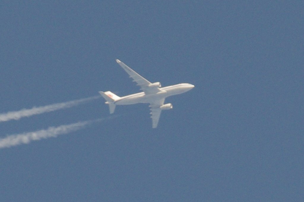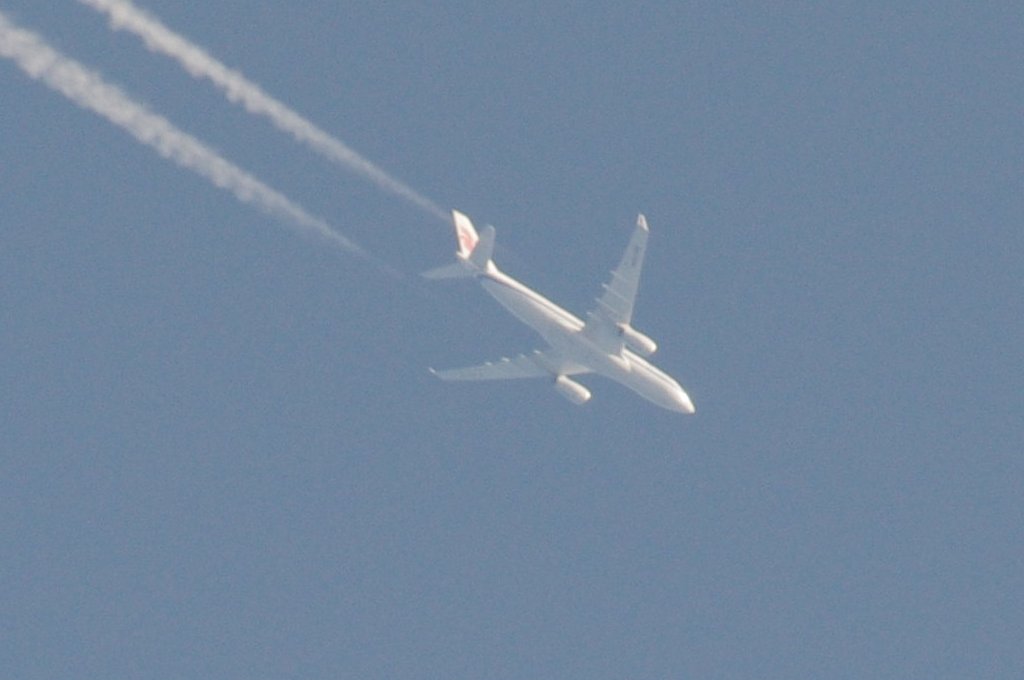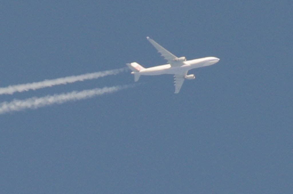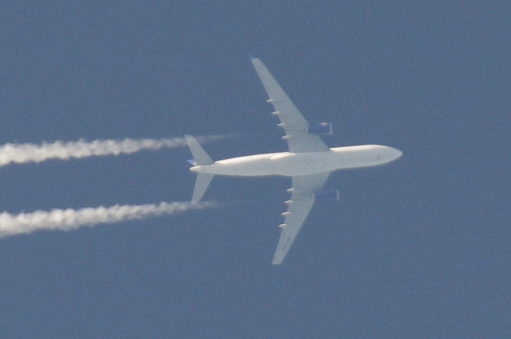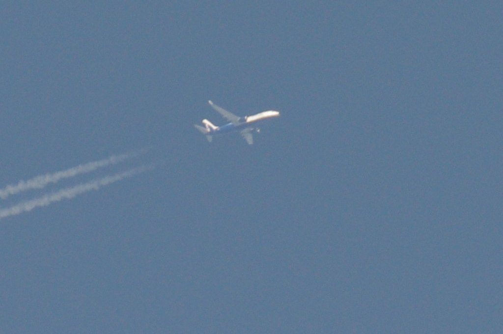 Smjer: N->S. Vrijeme: 17.50h. Airbus A330 Egypat Air kompanije. Najvjerovatnije se radi o avionu s call-signom: SU-GCE. Prvo je napravio križ s još jednim avionom negdje iznad Kozjaka. Kad se približio Splitu počeo je ispuštati trag iz repa odnosno iz APU jedinice. Kad mi je bio točno iznad glave ovaj trag se nije vidio. Moguće je da je trag uočljiv samo pod određenim kutom, ili je palio/gasio bio-chem mlaznice. Interesantno kako je uočavanje traga iz repa vrlo rijetko, a ja sam evo u jedan dan, jedno popodne, tj. unutar jednog sata uočio DVA takva aviona. Očigledno da su danas htjeli isprobati neke nove biološke otrove nad svekolikim pučanstvom.