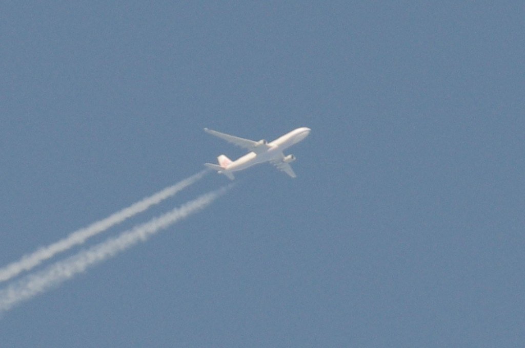 Smjer: NE->W. Vrijeme: 17.35h. AIRBUS A330 kompanije Air China. Kad je zamakao na zapad iza Čiova, onda odjednom skreće malo jače prema jugu i ostavlja perzistentni trag među oblacima: cloud-seeding!
