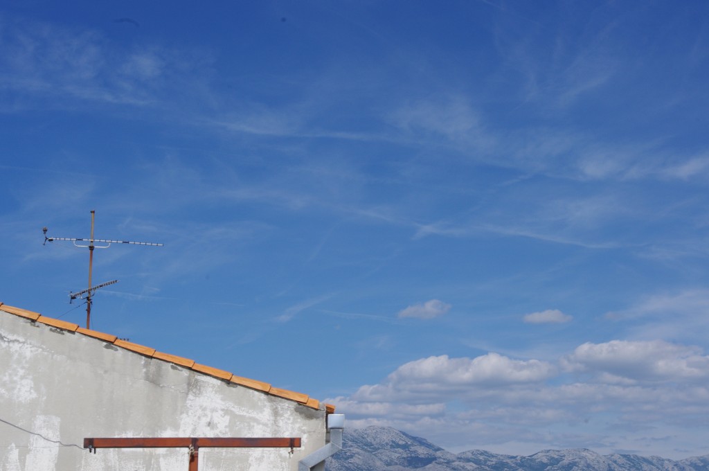 Uglavnom moj dojam je da su četvrtak, subota i nedjelja najprometniji dani što se tiće zračnog prometa iznad Splita. Sukladno tome na kraju dana nebo se pretvorilo u mliječnu maglicu, nezdravu i odurnu.