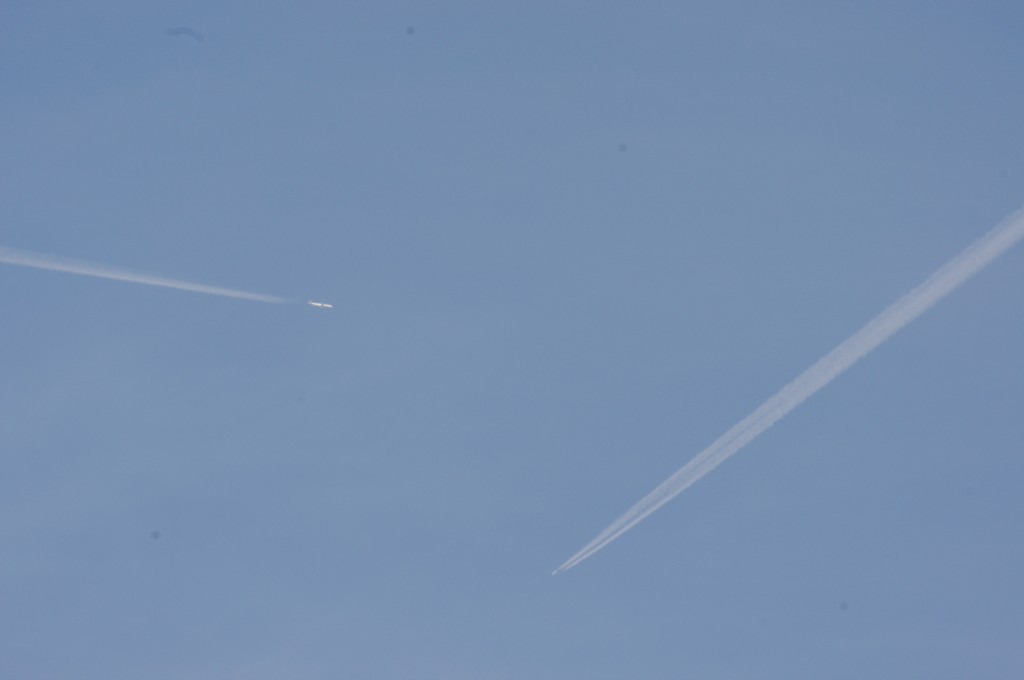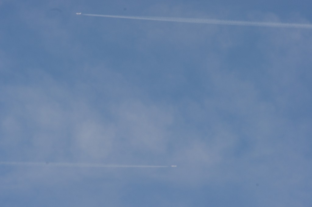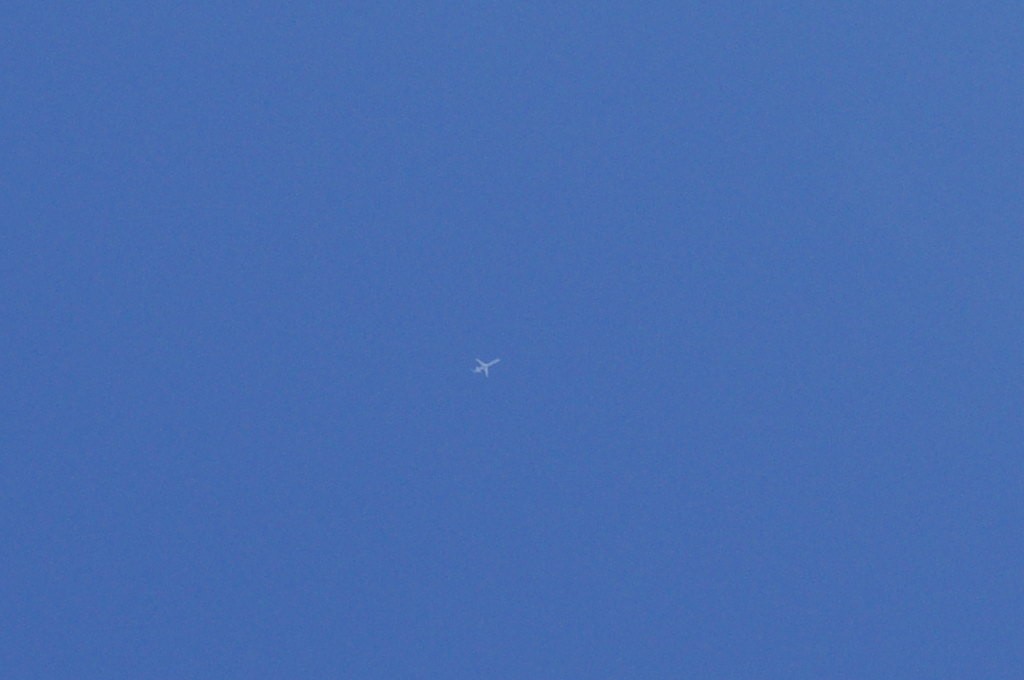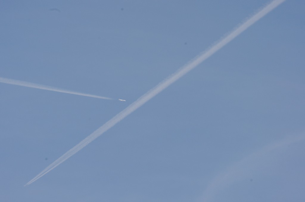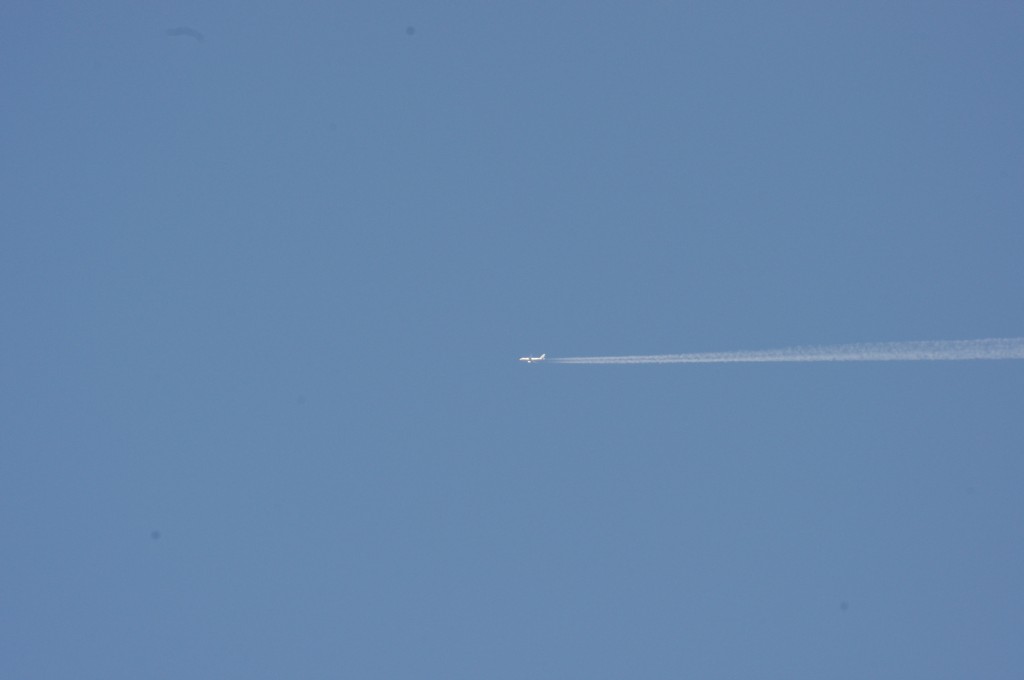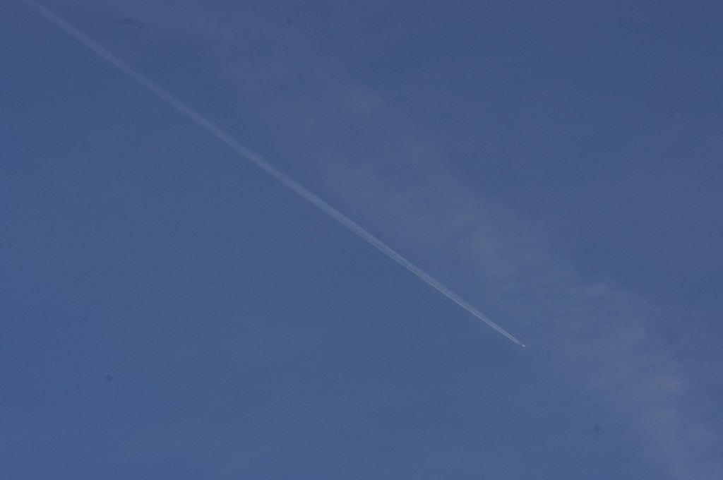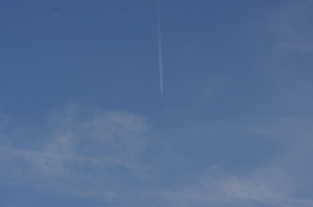 Smjer: N->S. Vrijeme: 10.34h. Opet neidentificiran, šteta jer mi je prošao iznad glave. Opet dugi i perzistentan trag kojega sam uslikao izbliza. Interesantan je model raspršivanja traga, vrlo neobičan, po mom skromnom i nestručnom mišljenju, teško da odgovara kondenzacijskom tragu.