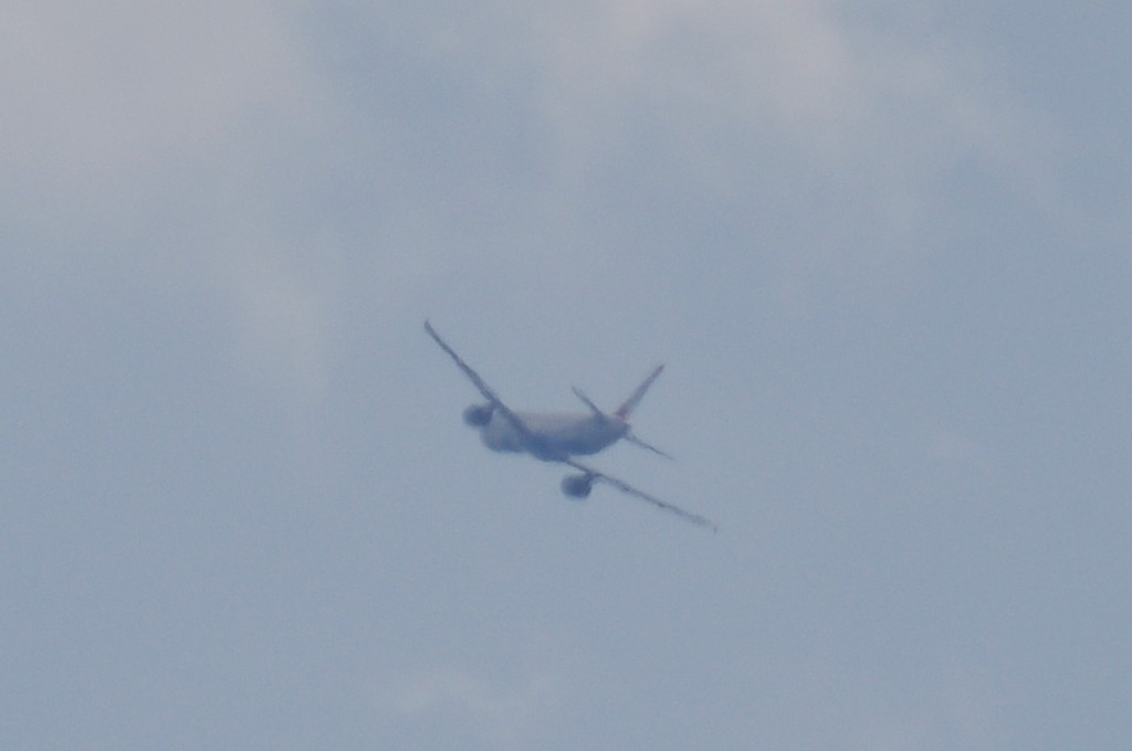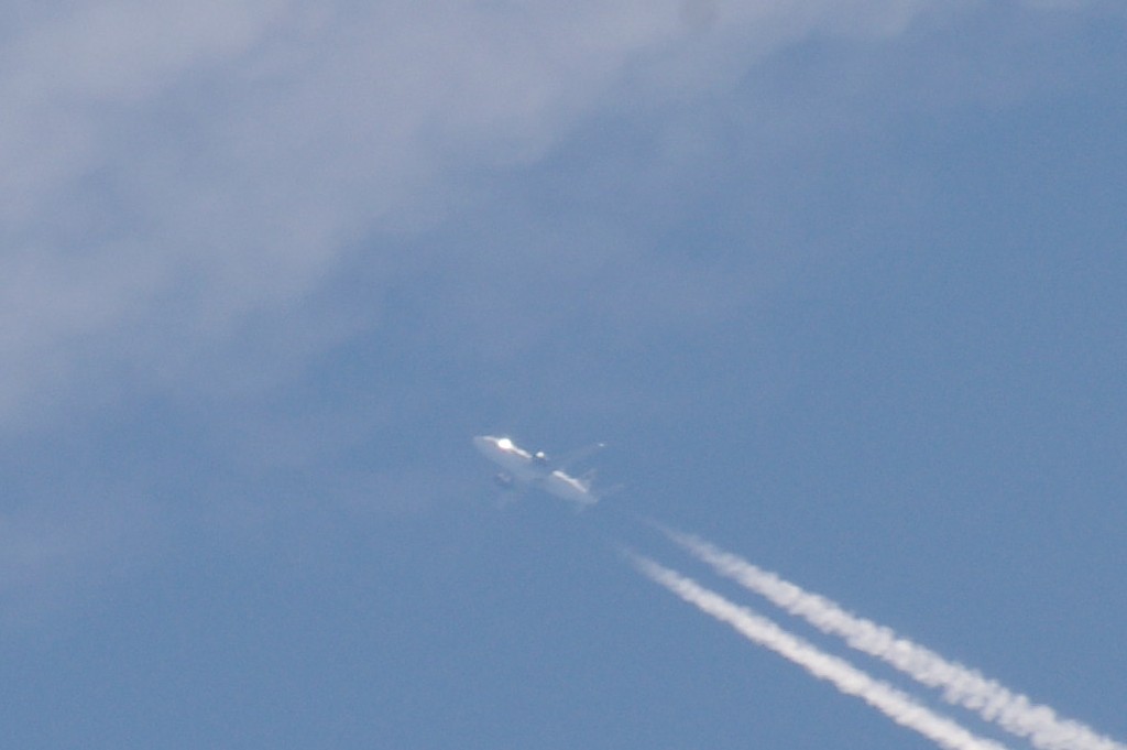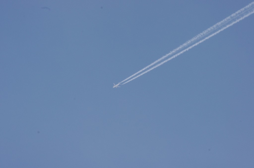Smjer: NE->SW. Vrijeme: 14.23h. Pripadnik British Airwaysa. Dugi trag i križanje s starim tragom. Eh ovdje sam uslikao famozne sive kuglice poznate kao tzv. 'orbovi'. Ostaje pitanje jeli to zamućena slika galeba koju je aparat zabilježio kao sivu kuglicu, mrlja na optici ili nešto treće. Zasad to ostavljam otvorenim.