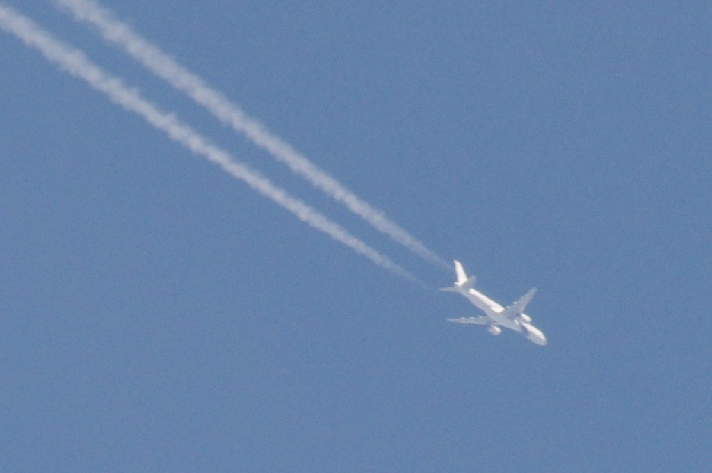 Smjer: E->W. Vrijeme: 14.29h. Nepoznati avion. Ostavlja duuugi i perzistentan trag. Skoro svake minute doleti jedan avion, krkljanac je gore na nebu..