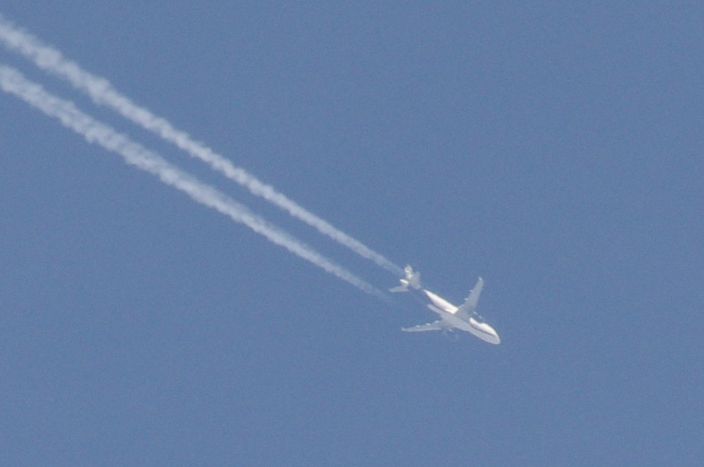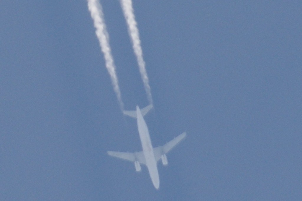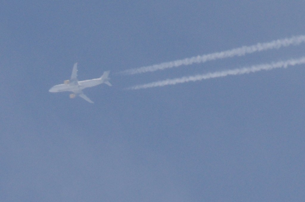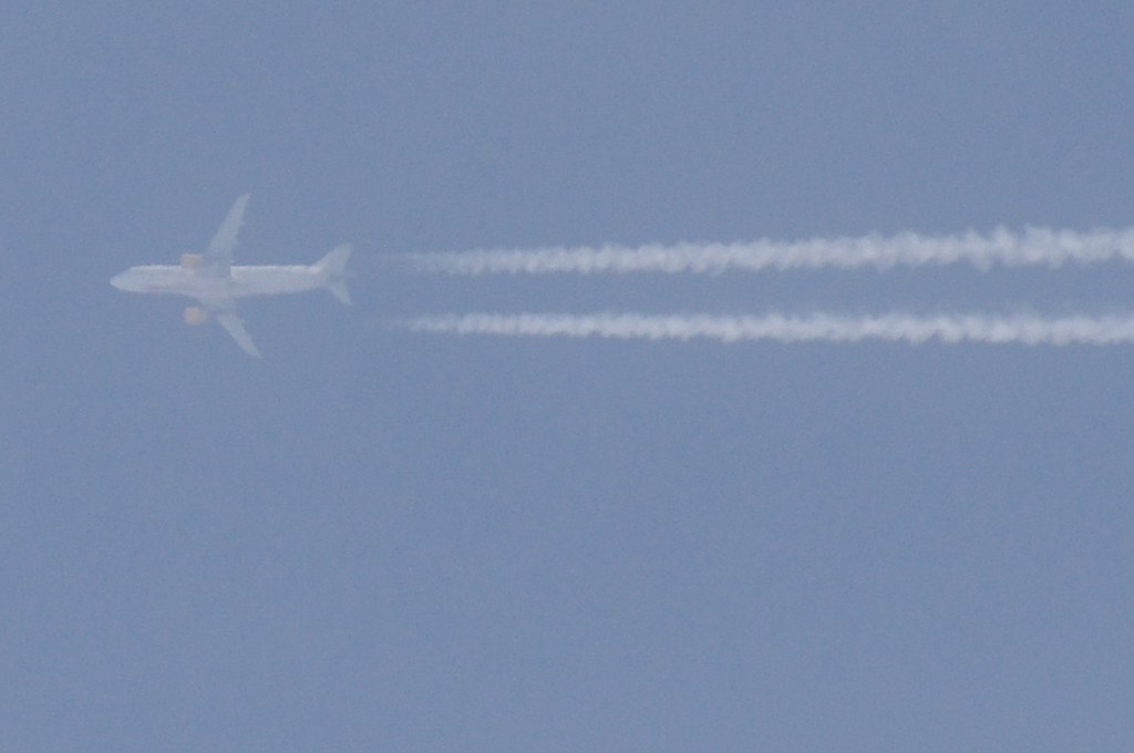 Smjer: NW->SE. Vrijeme: 14.37h. Airbus A320-232 Olympic Air. Ostavlja dugi trag relativno kratke perzistencije. Ne pojedinim slikama mi se učinilo da sam zamjetio i treći trag iz repa, ali priznajem da je moguća optička varka. Inače bi bilo vrlo interesantno slušati objašnjenja 'stručnjaka' otkud treći trag s repa aviona..