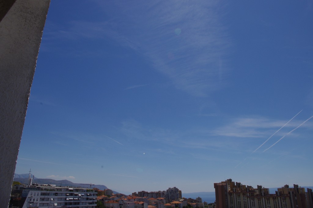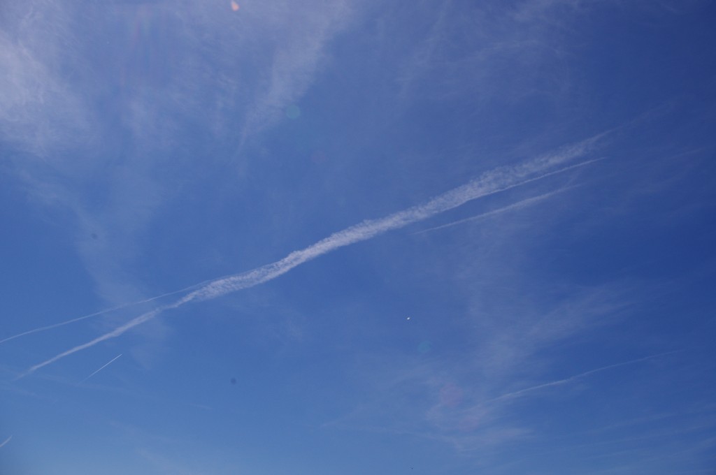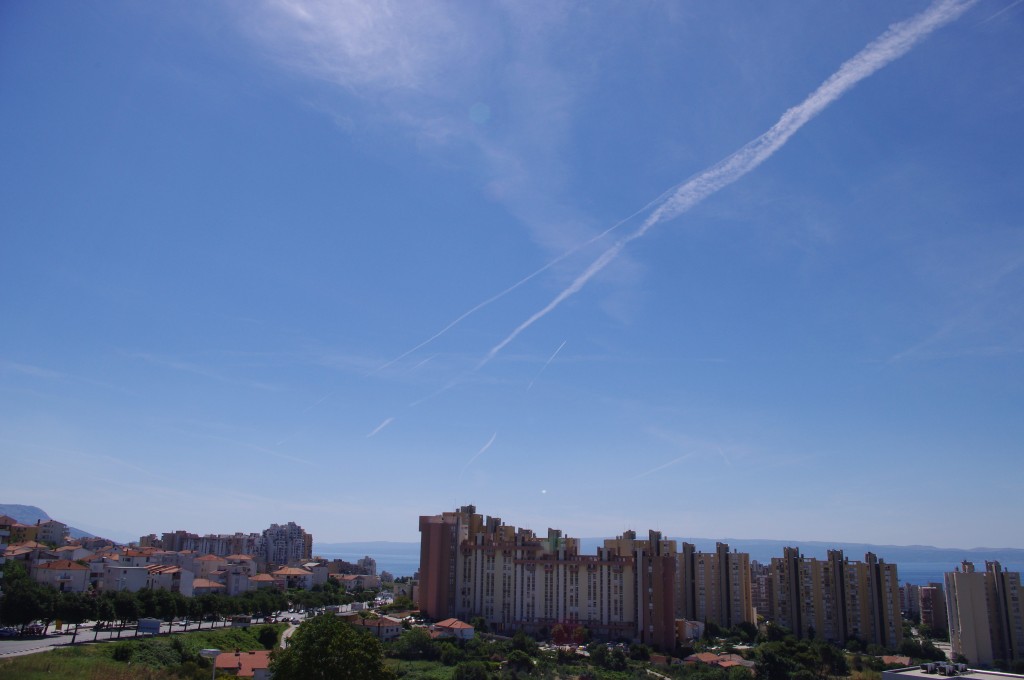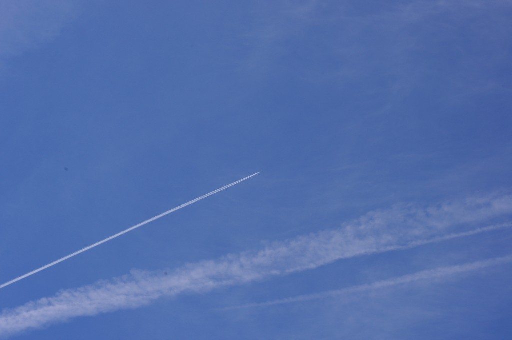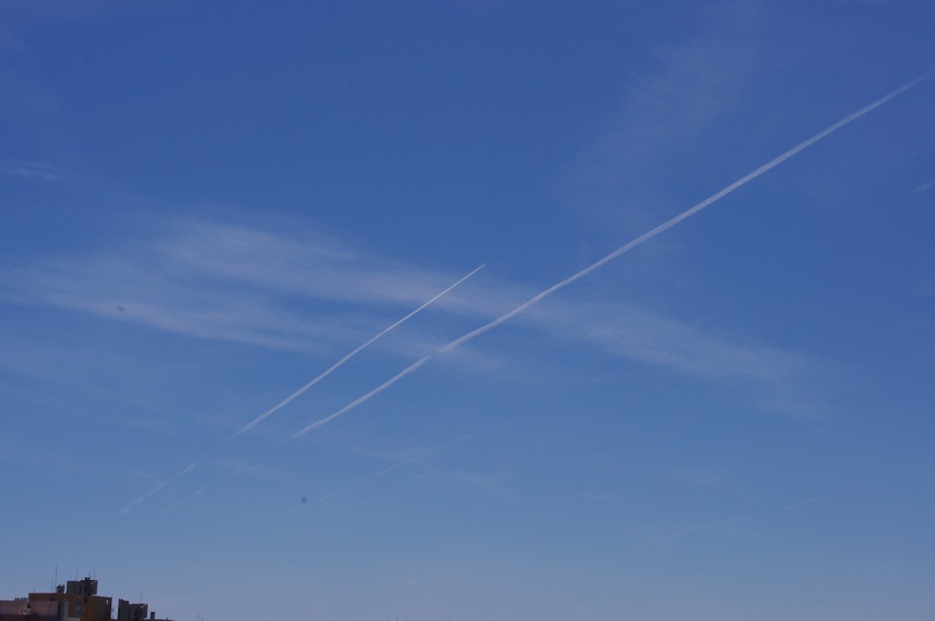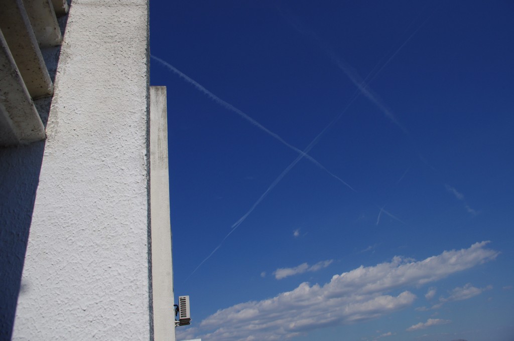 Slike ljetnog neba. Nema više čistog plavog neba. Samo tragovi, tragovi koji idu tko zna gdje. Na slikama sam uhvatio tri i više paralelna traga. Jedan stariji i dva novo stvarajuća. Kao što bi Ilija Čvorović rekao: osnovna udarna diverzantska postrojba je udarna trojka!